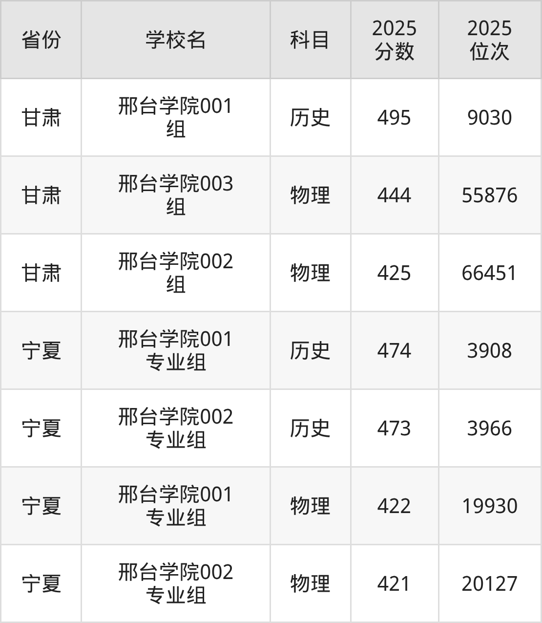 2025年邢台学院在省内分历史物理科目类录取,其中历史类最低分是512分、对应位次是42421名;物理类最低分是499分,对应位次是162246名。