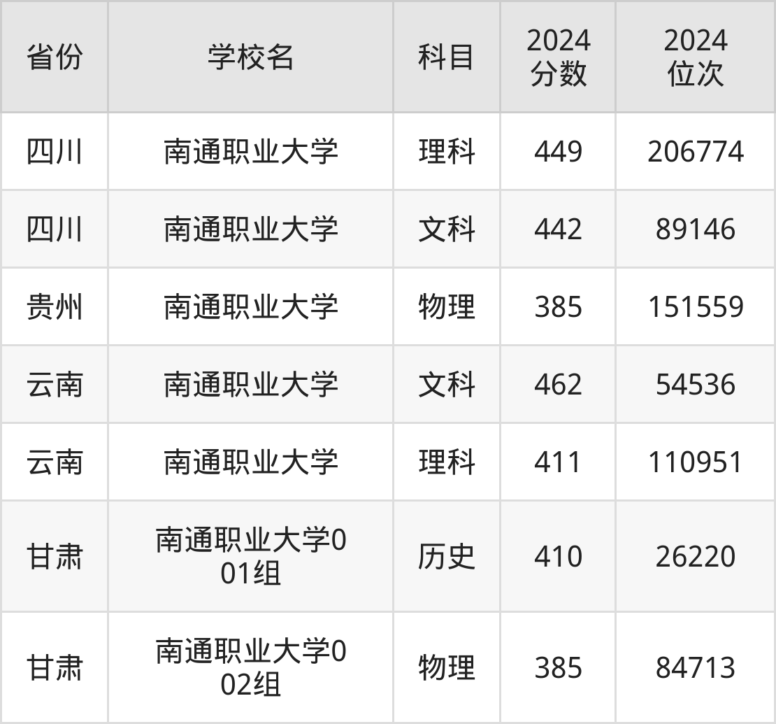 下面是南通职业大学2024年录取分数线各省汇总,一起来了解下吧。