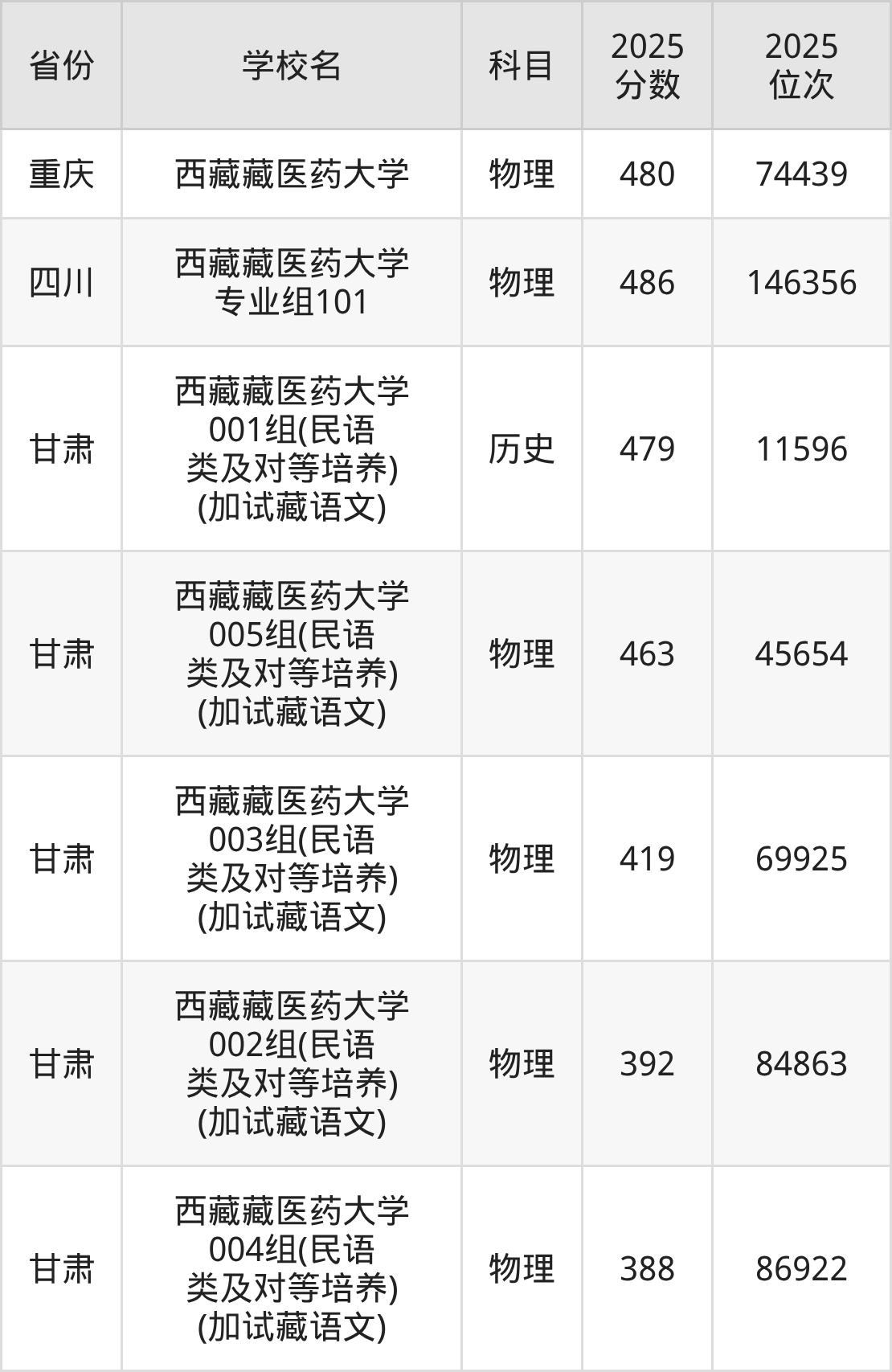 下面是西藏藏医药大学2025年录取分数线各省汇总,一起来了解下吧。