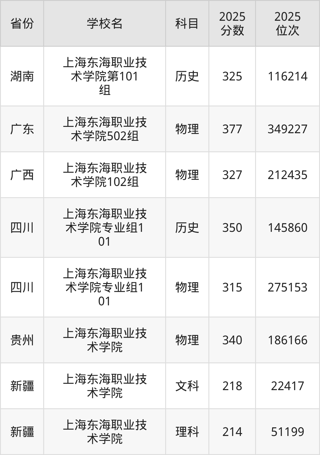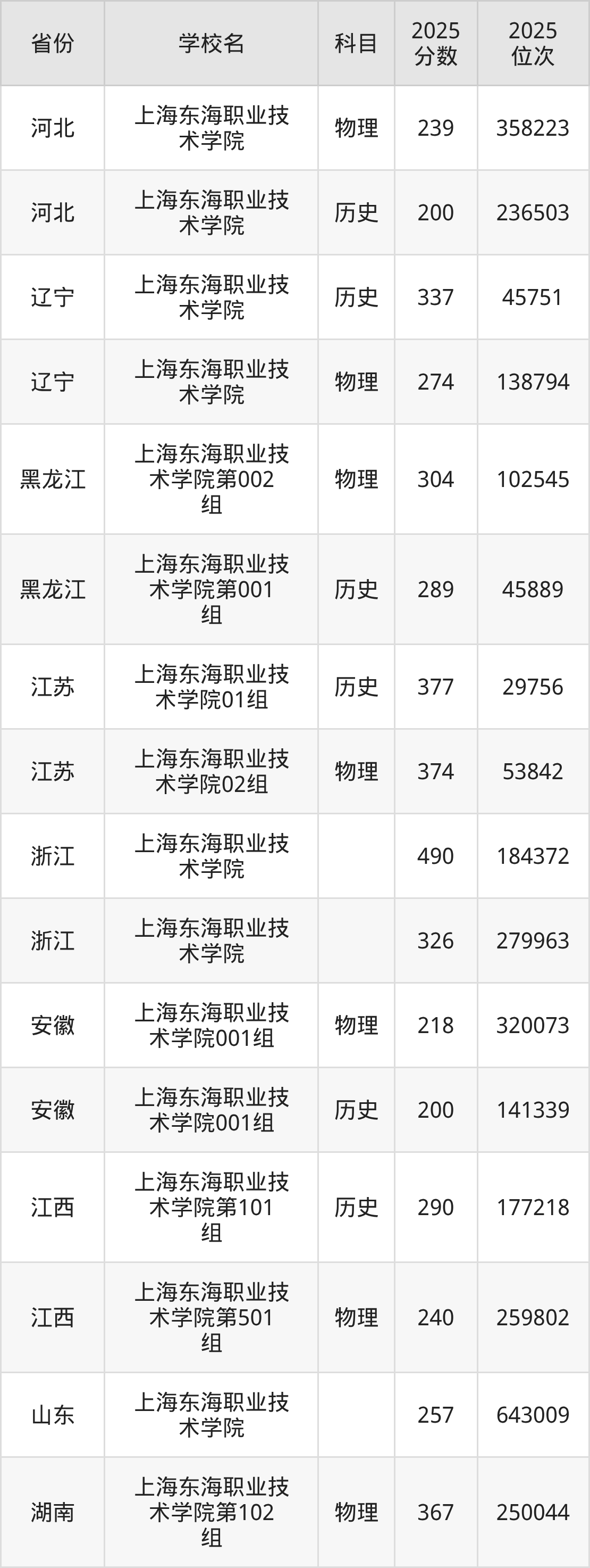 下面是上海东海职业技术学院2025年录取分数线各省汇总,一起来了解下吧。