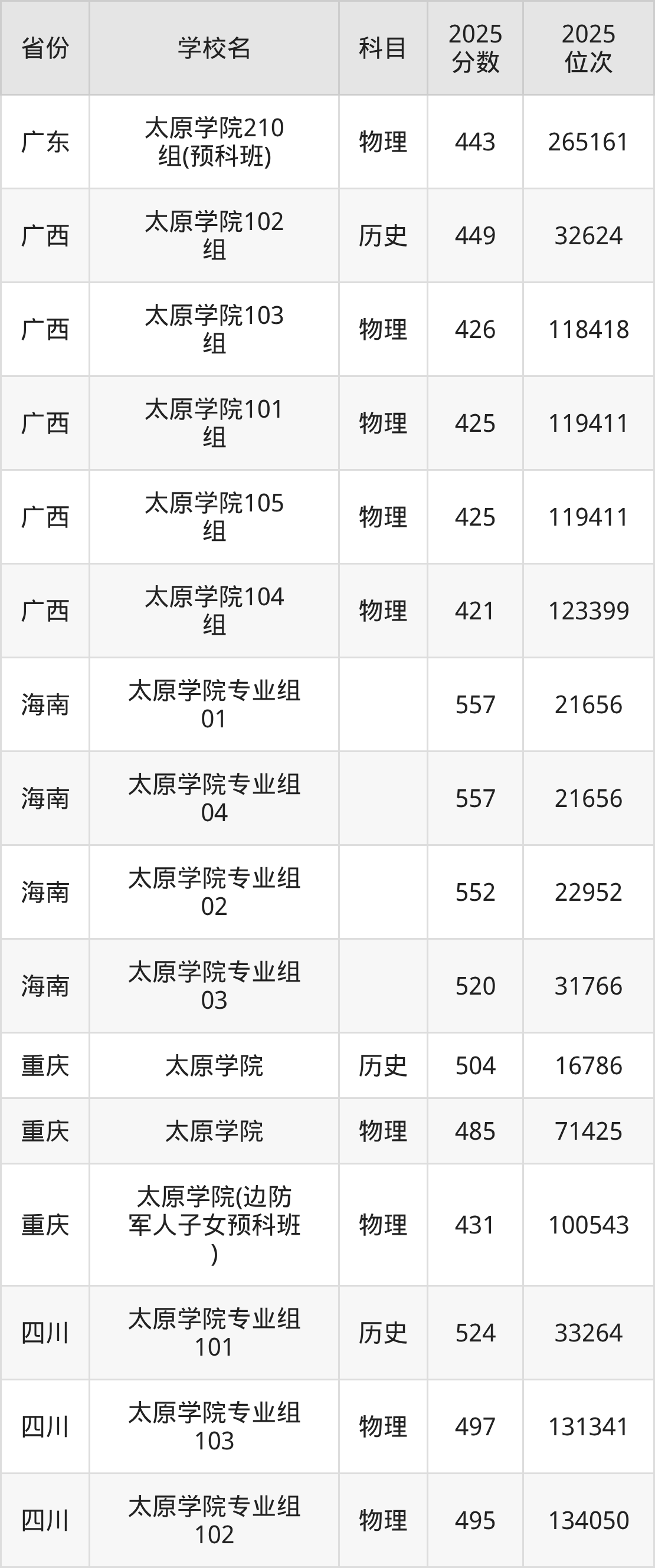 下面是太原学院2025年录取分数线各省汇总,一起来了解下吧。