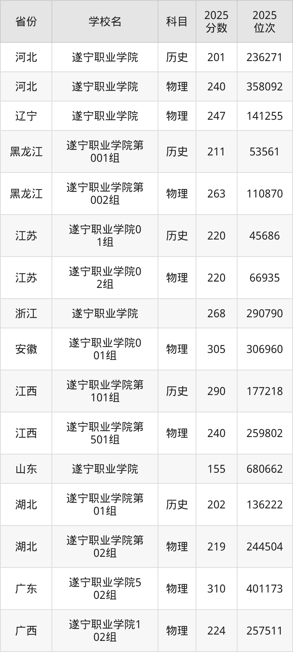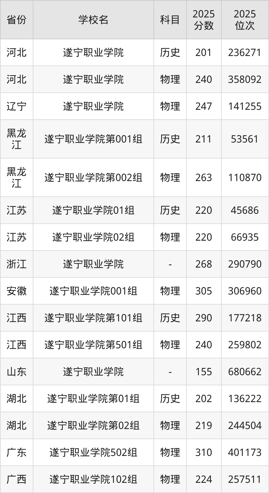 下面是遂宁职业学院2025年录取分数线各省汇总,一起来了解下吧。