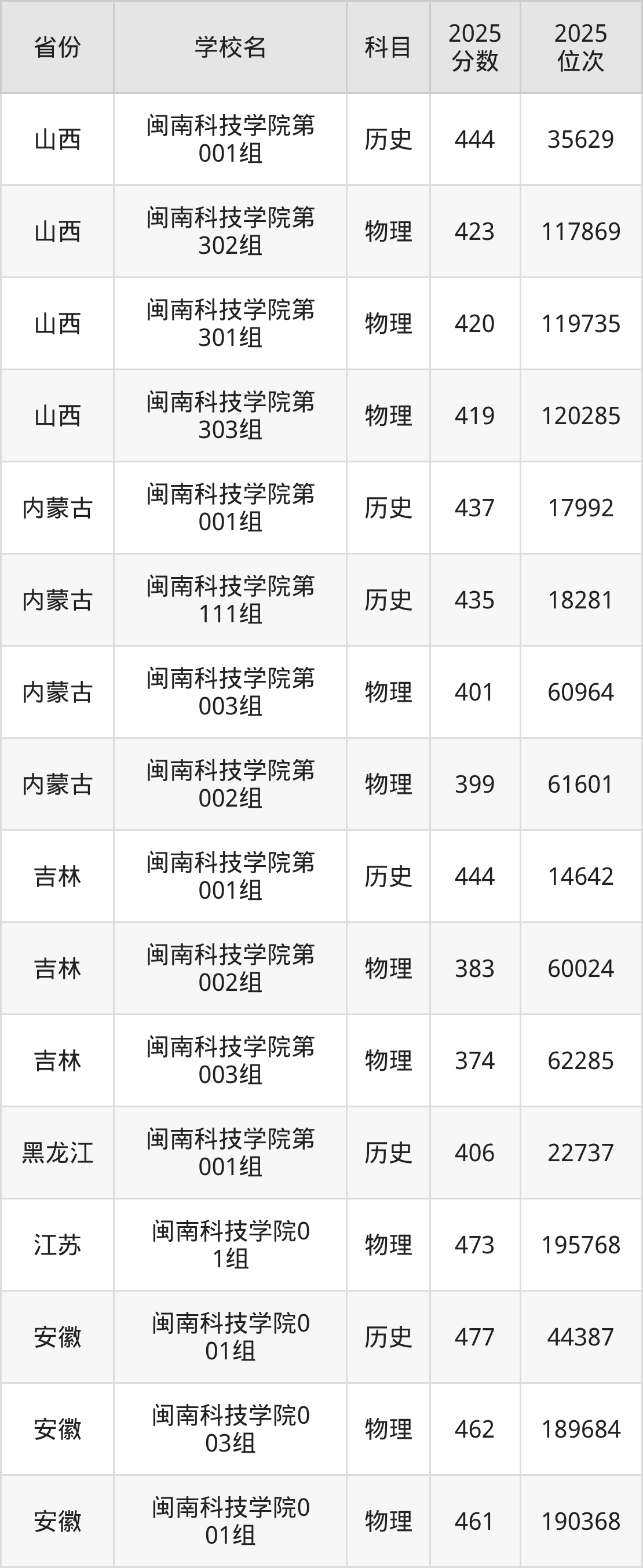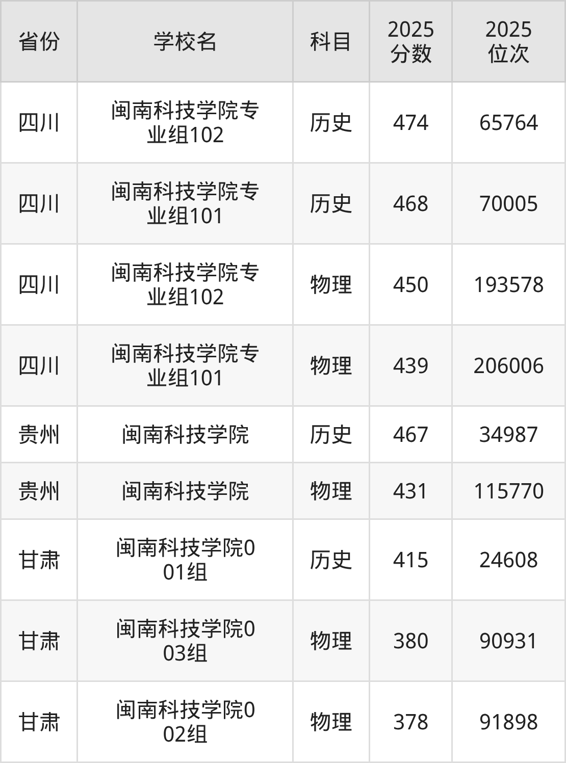 | 学校名 | 科目 | 2025 分数 | 2025 位次 |