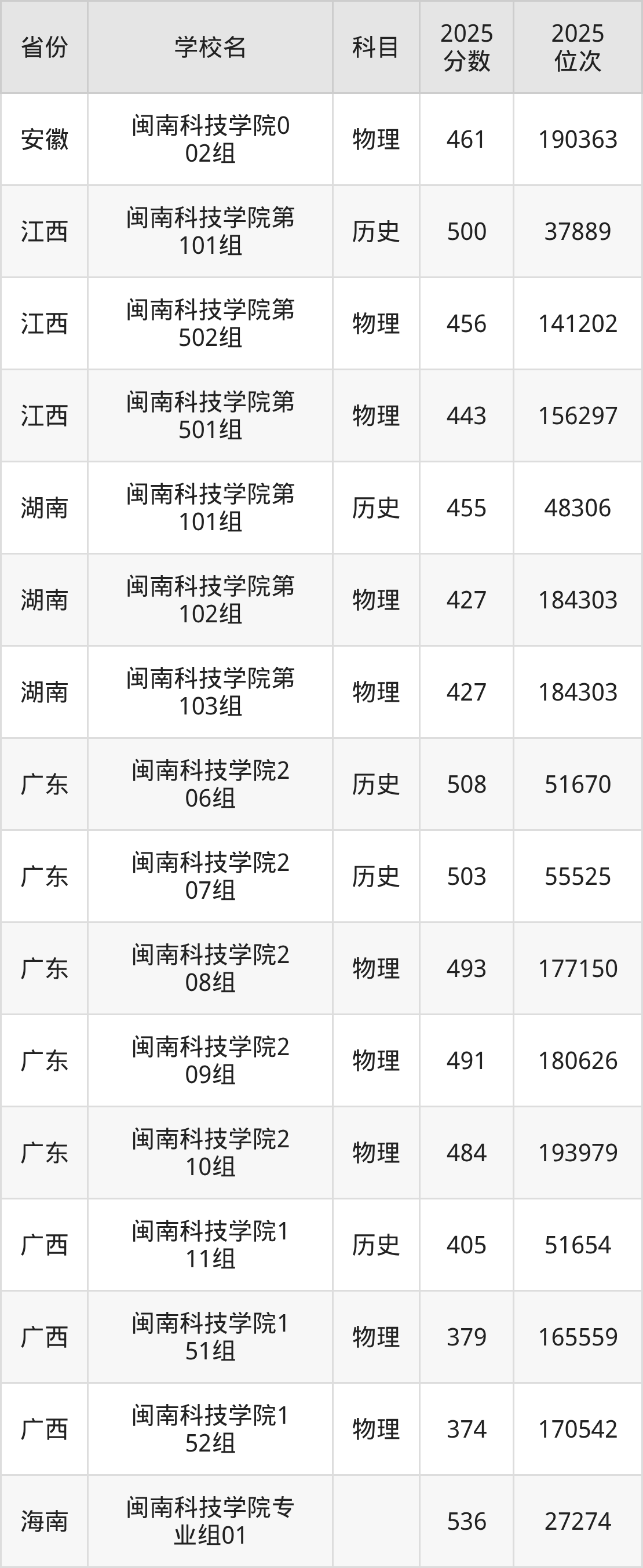 | 闽南科技学院专 业组:999 | 历史 | 453 | 24878 |