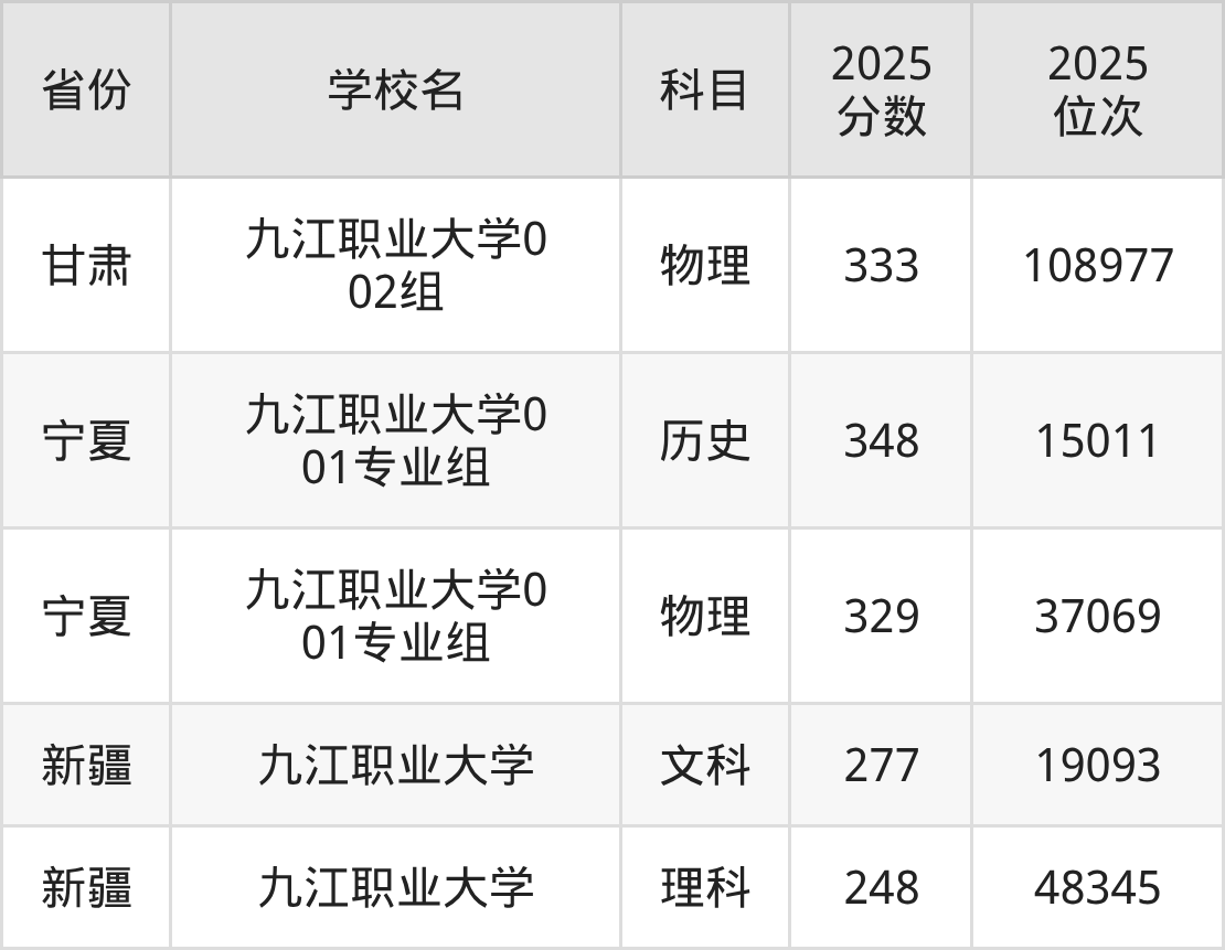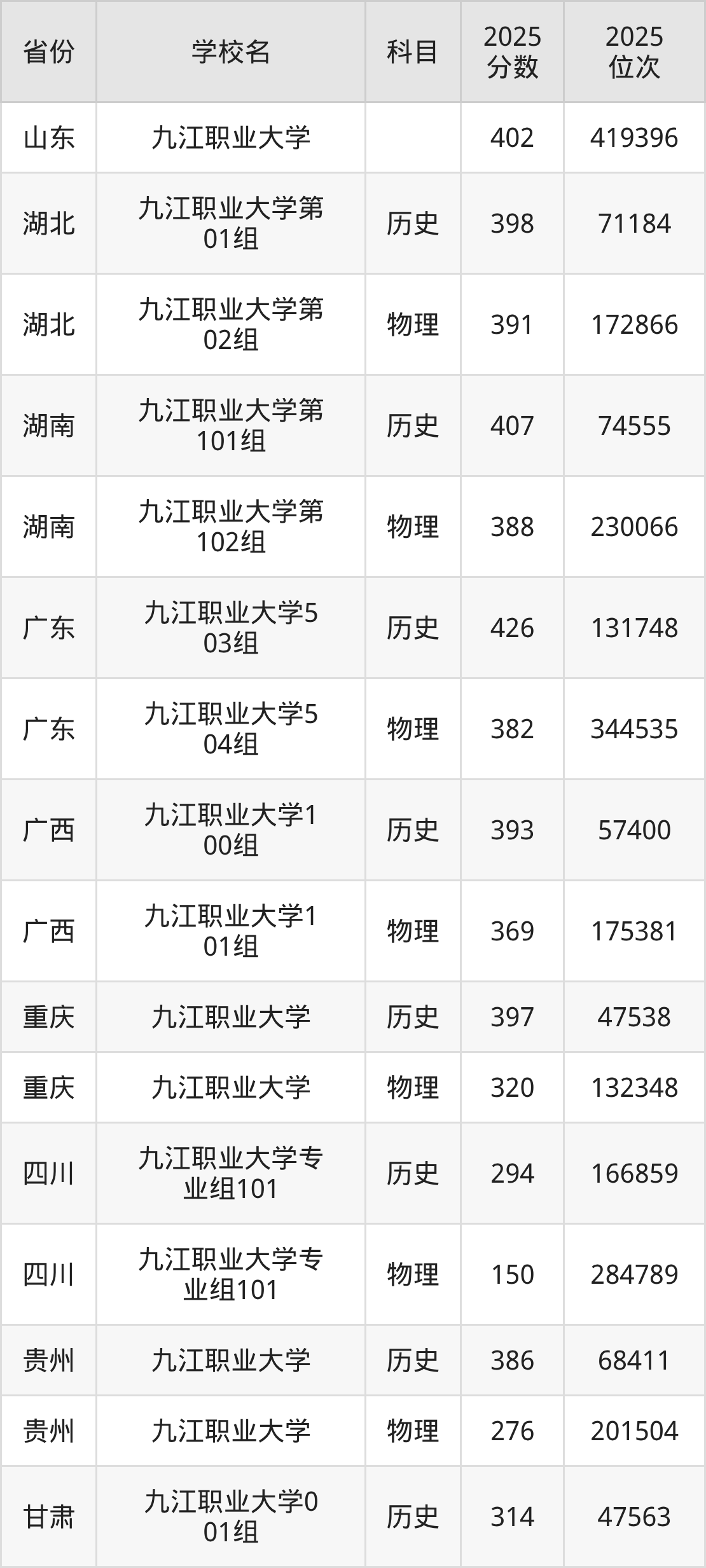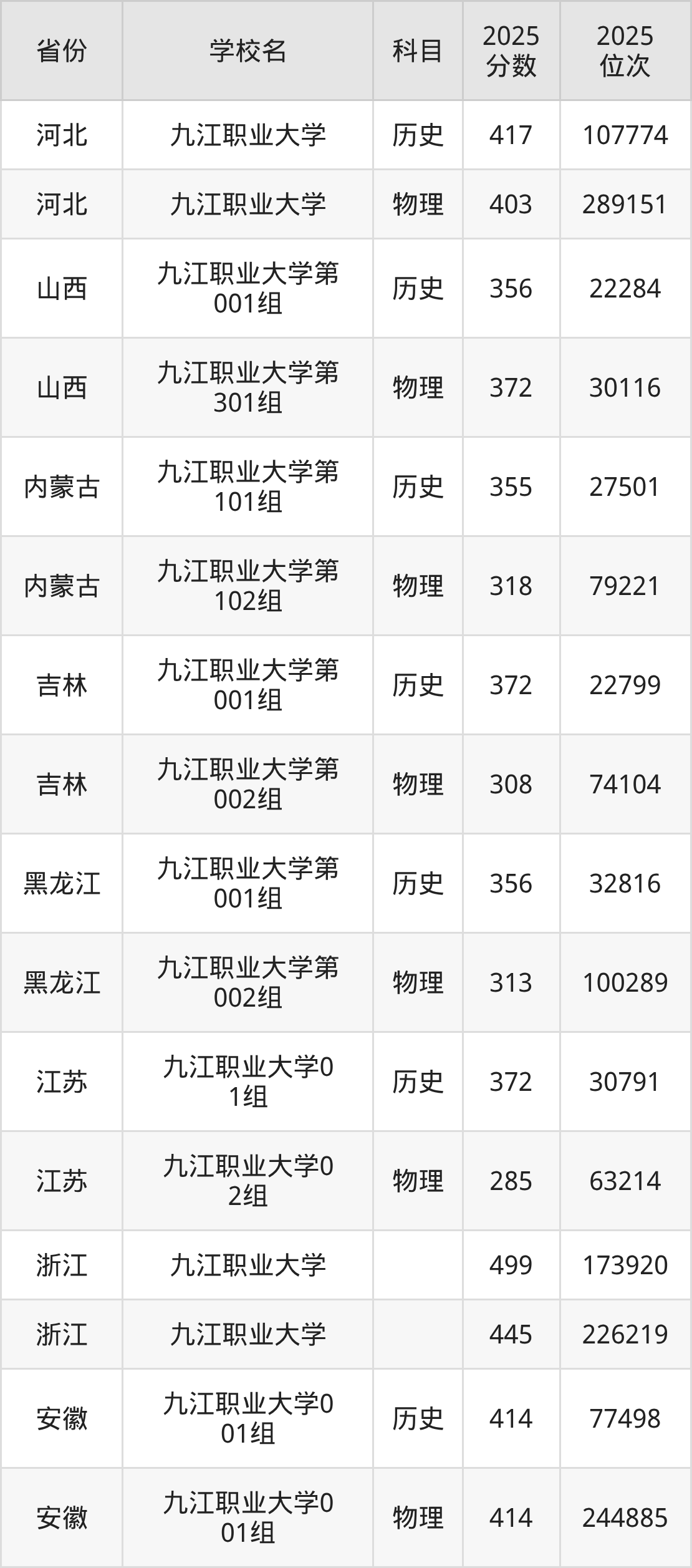 2025年九江职业大学历史类最低分467分(59891名)、物理类最低分409分(189931名)。