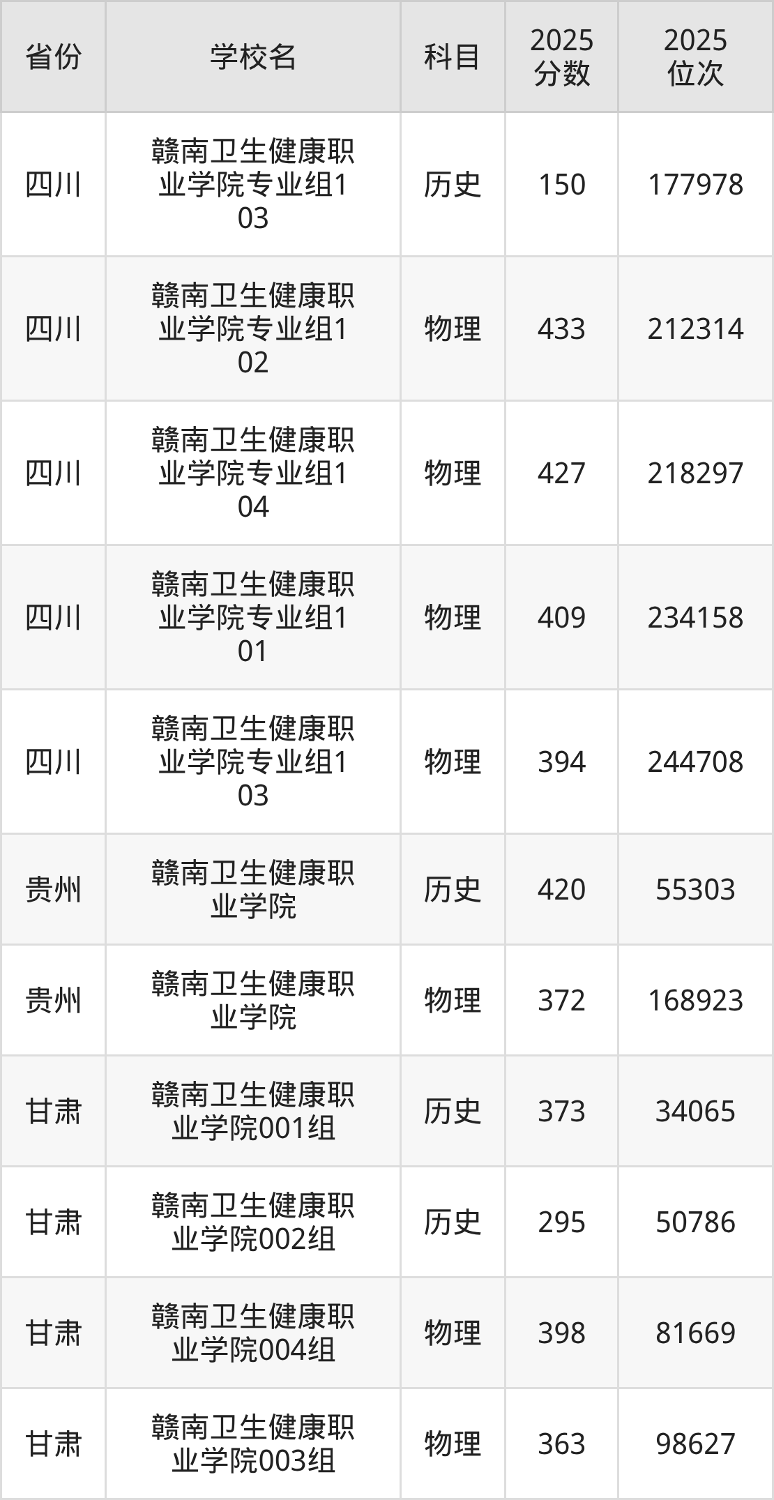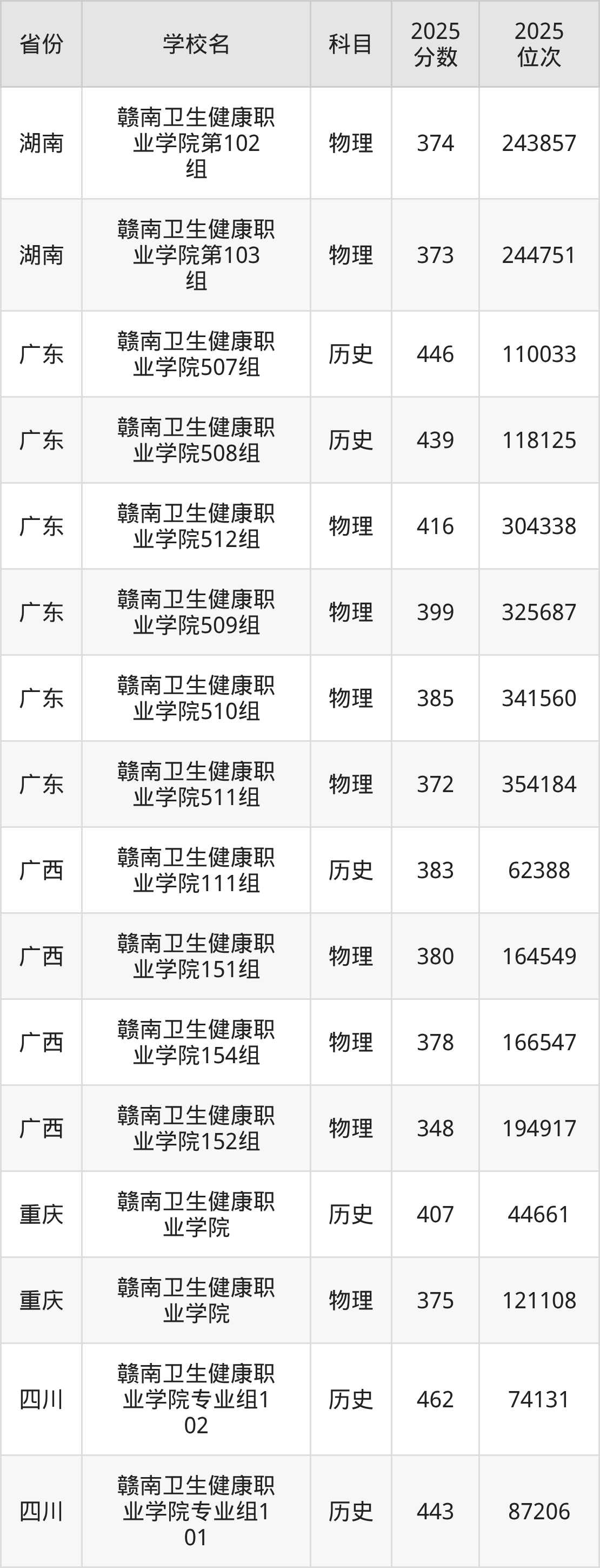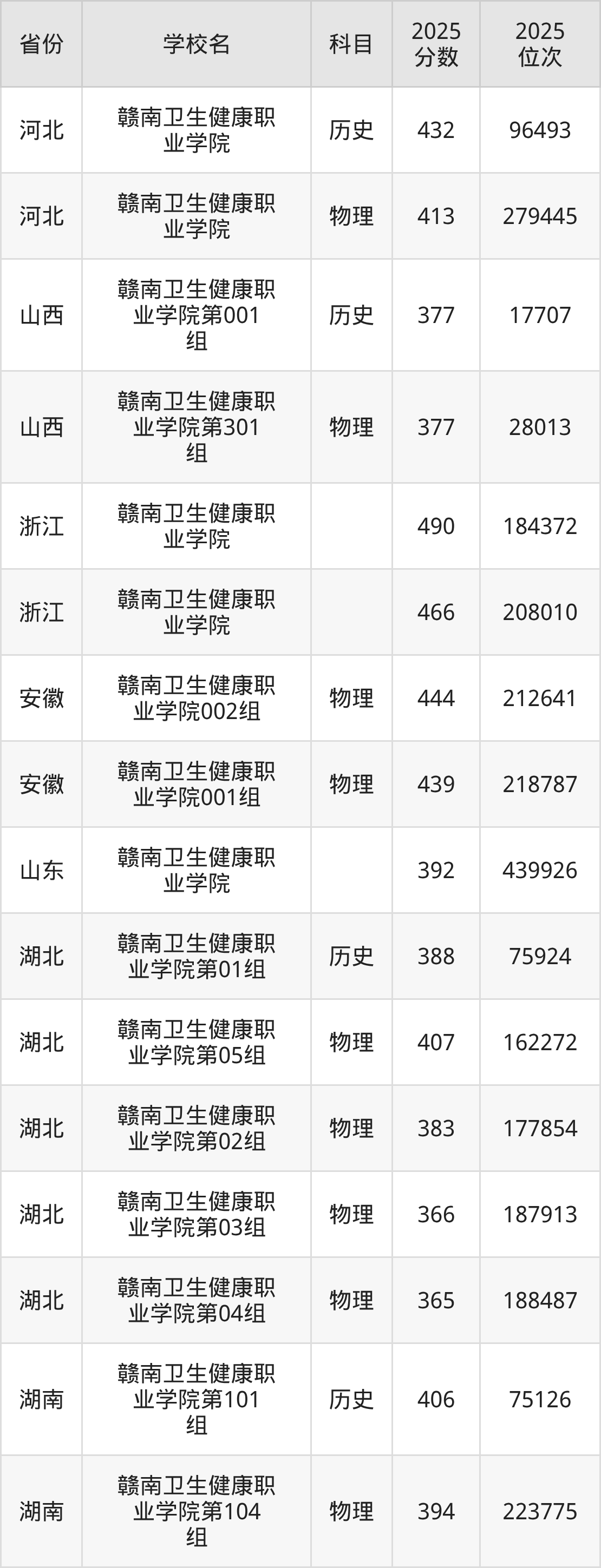 下面是赣南卫生健康职业学院2025年录取分数线各省汇总,一起来了解下吧。