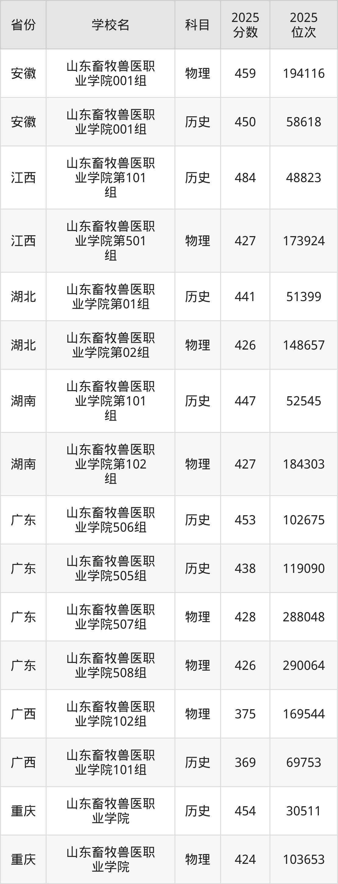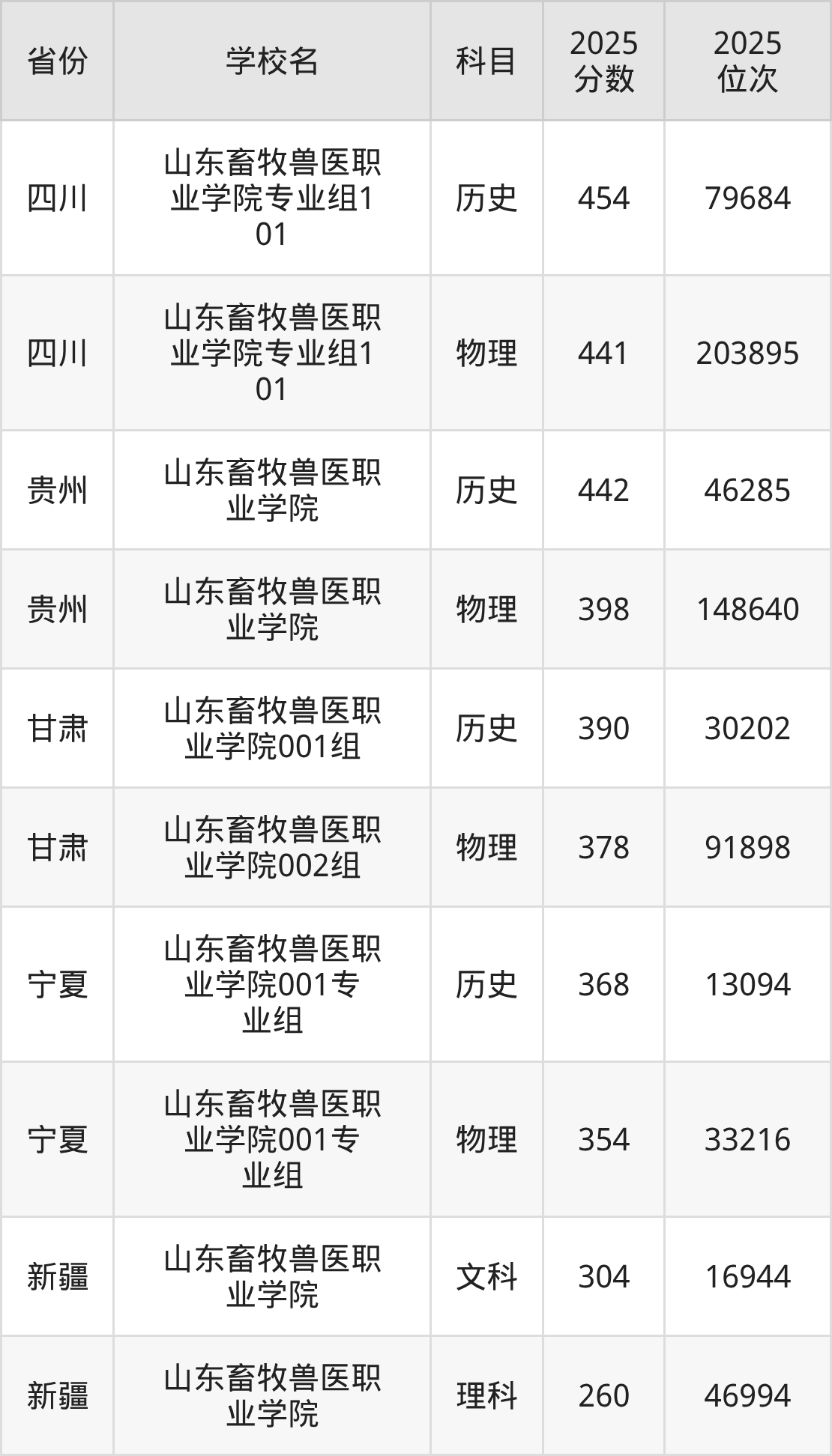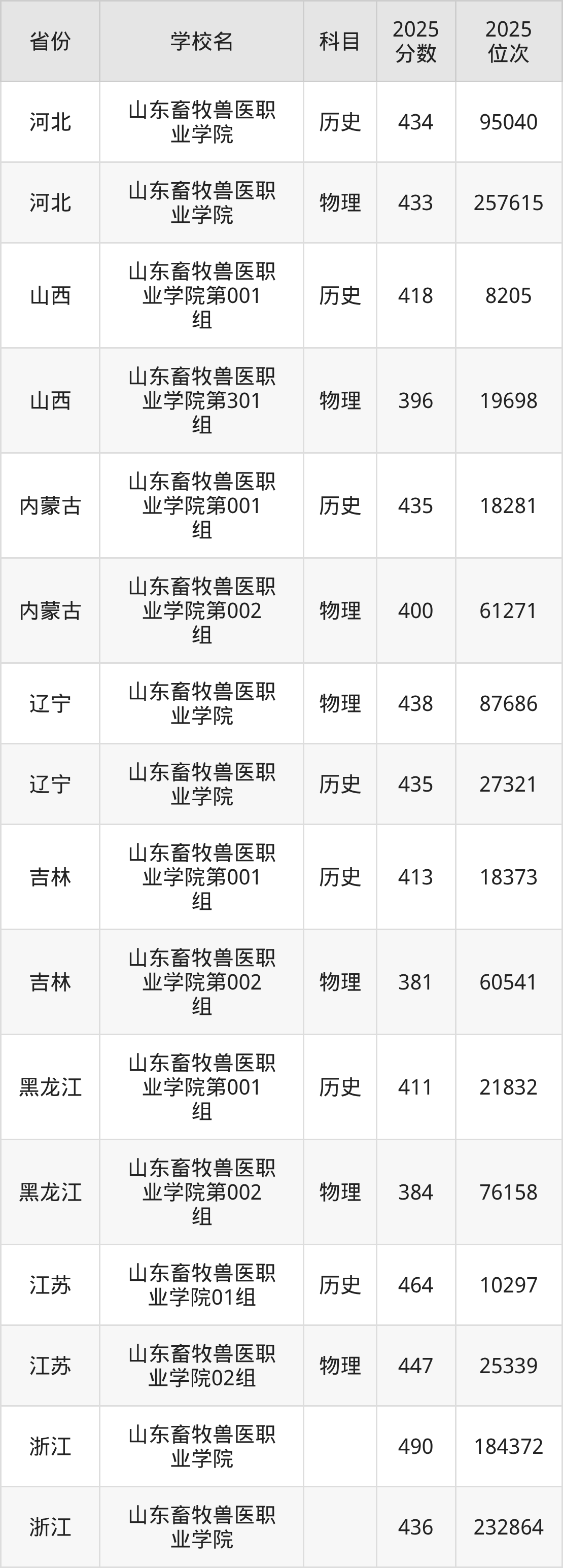 下面是山东畜牧兽医职业学院2025年录取分数线各省汇总,一起来了解下吧。