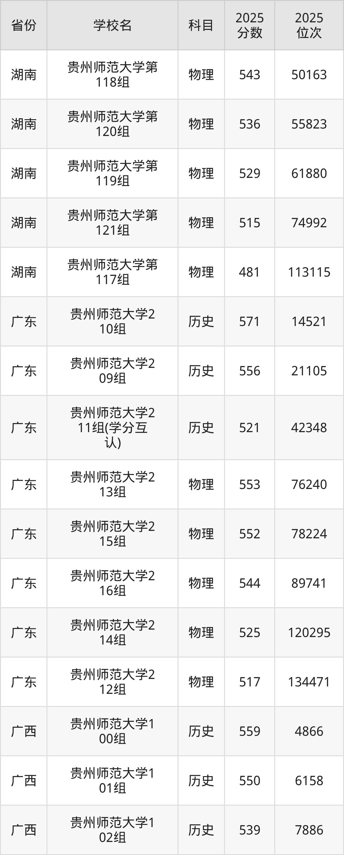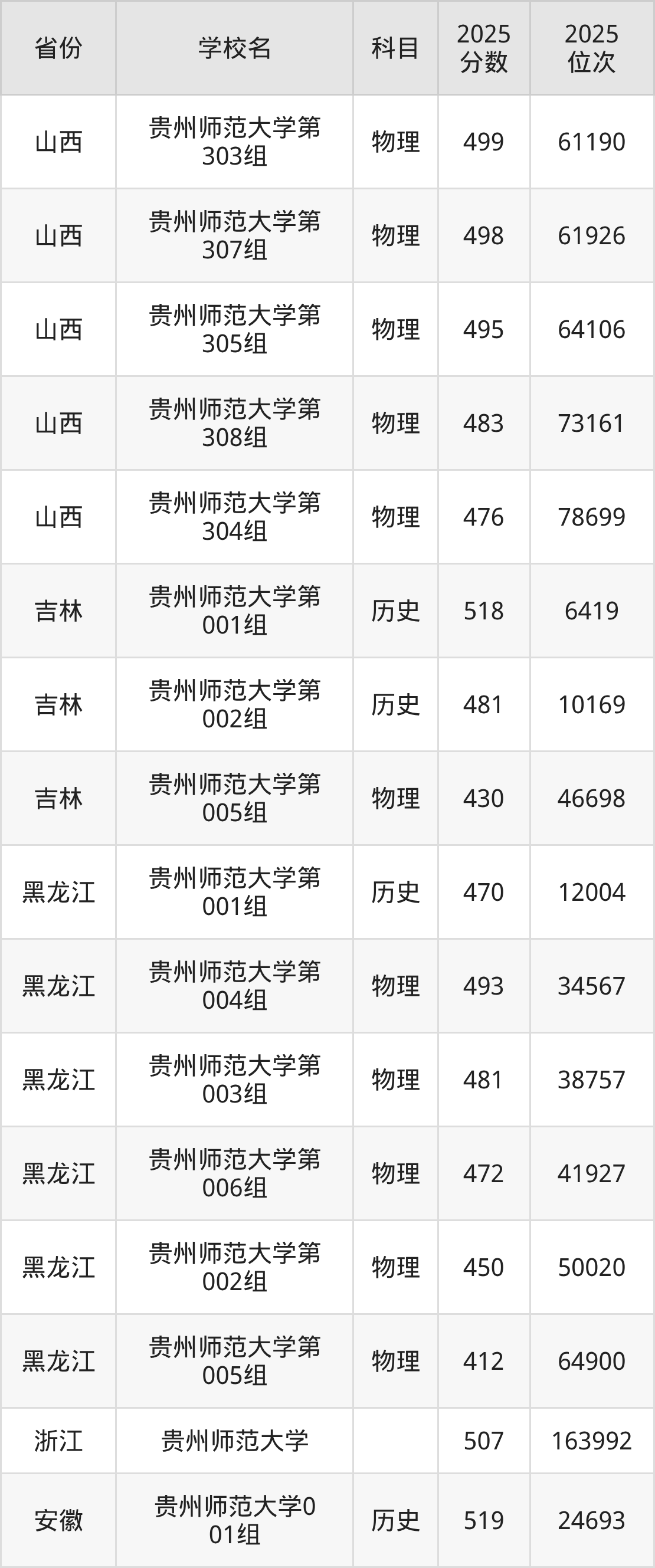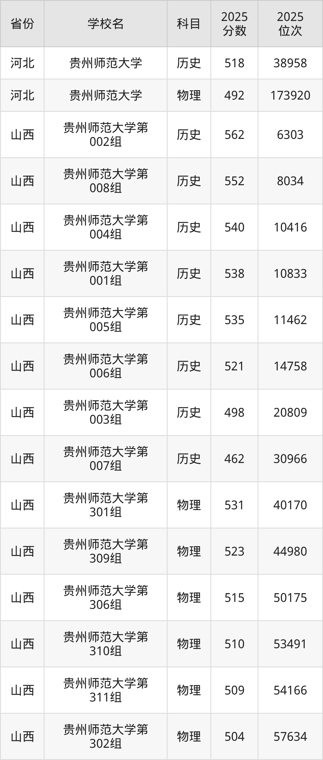 | 贵州师范大学( 地方专项计划) | 历史 | 509 | 18678 |
