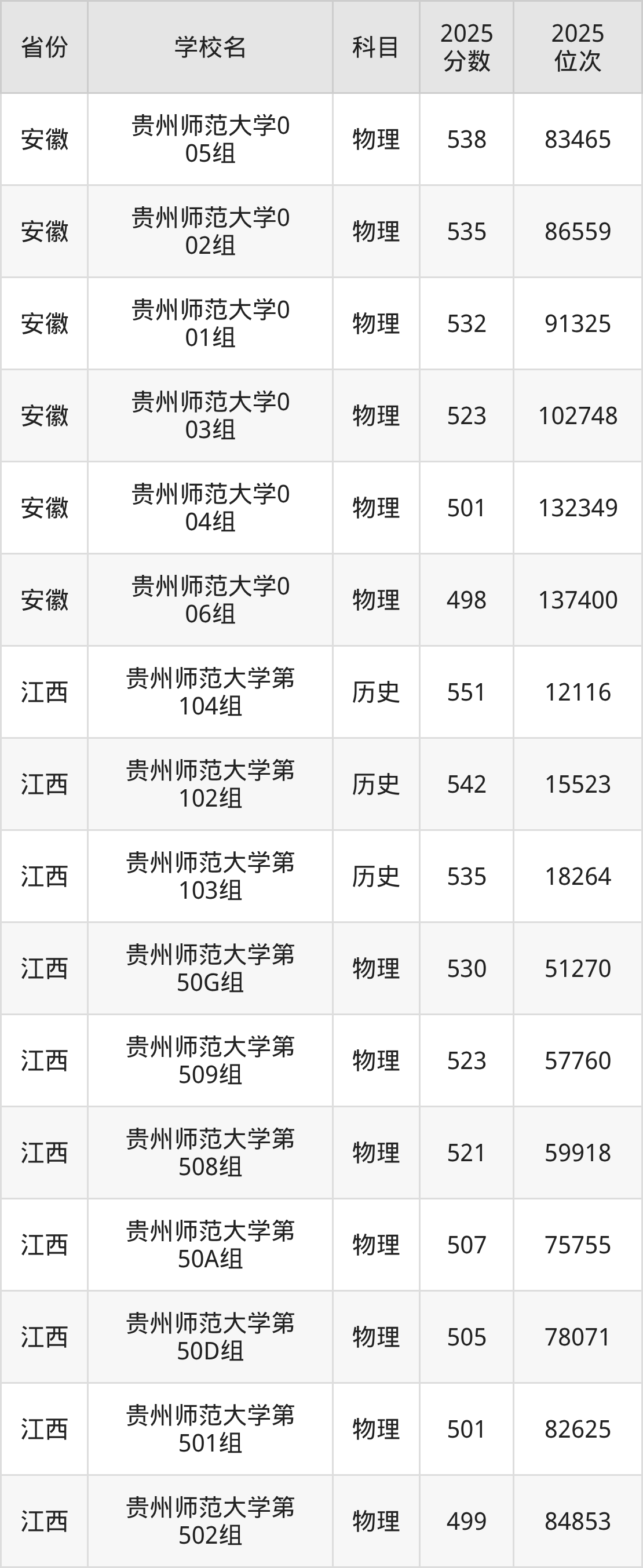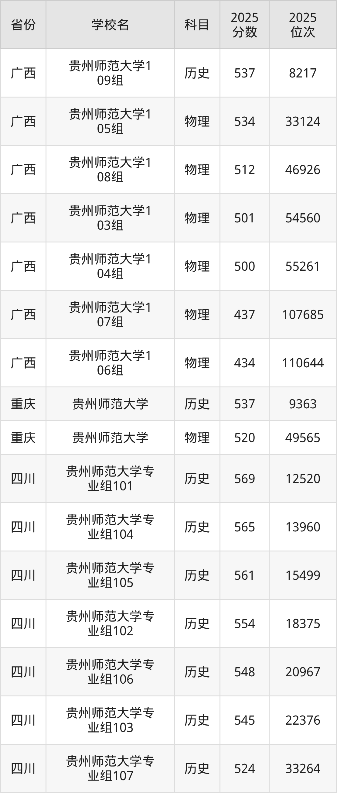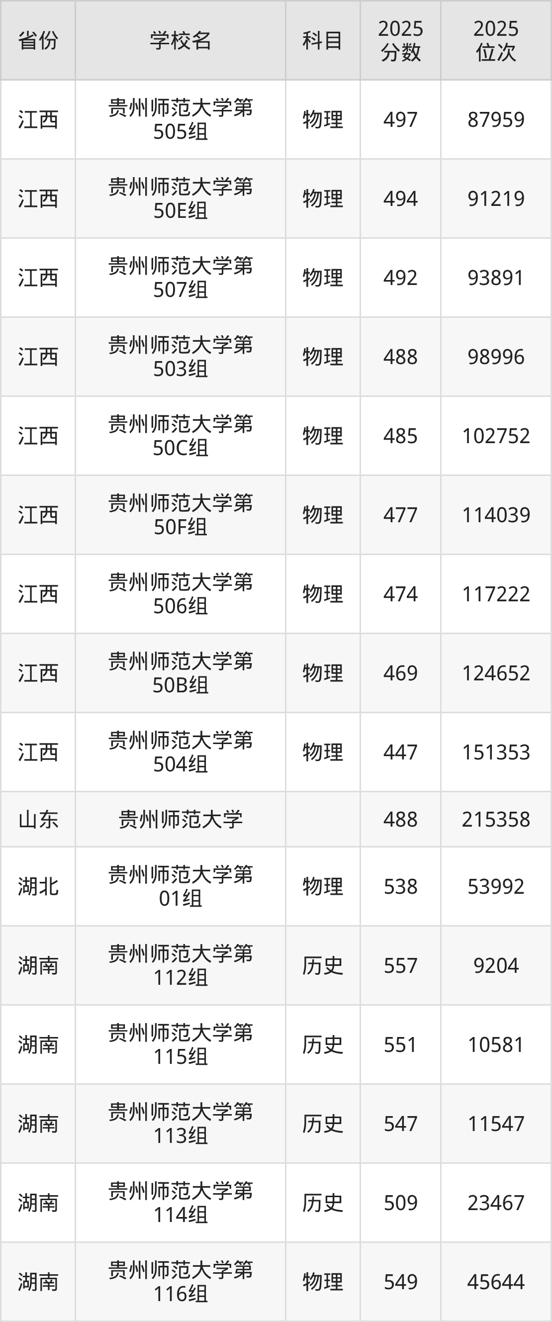 | 贵州师范大学( 地方专项计划) | 历史 | 509 | 18678 |