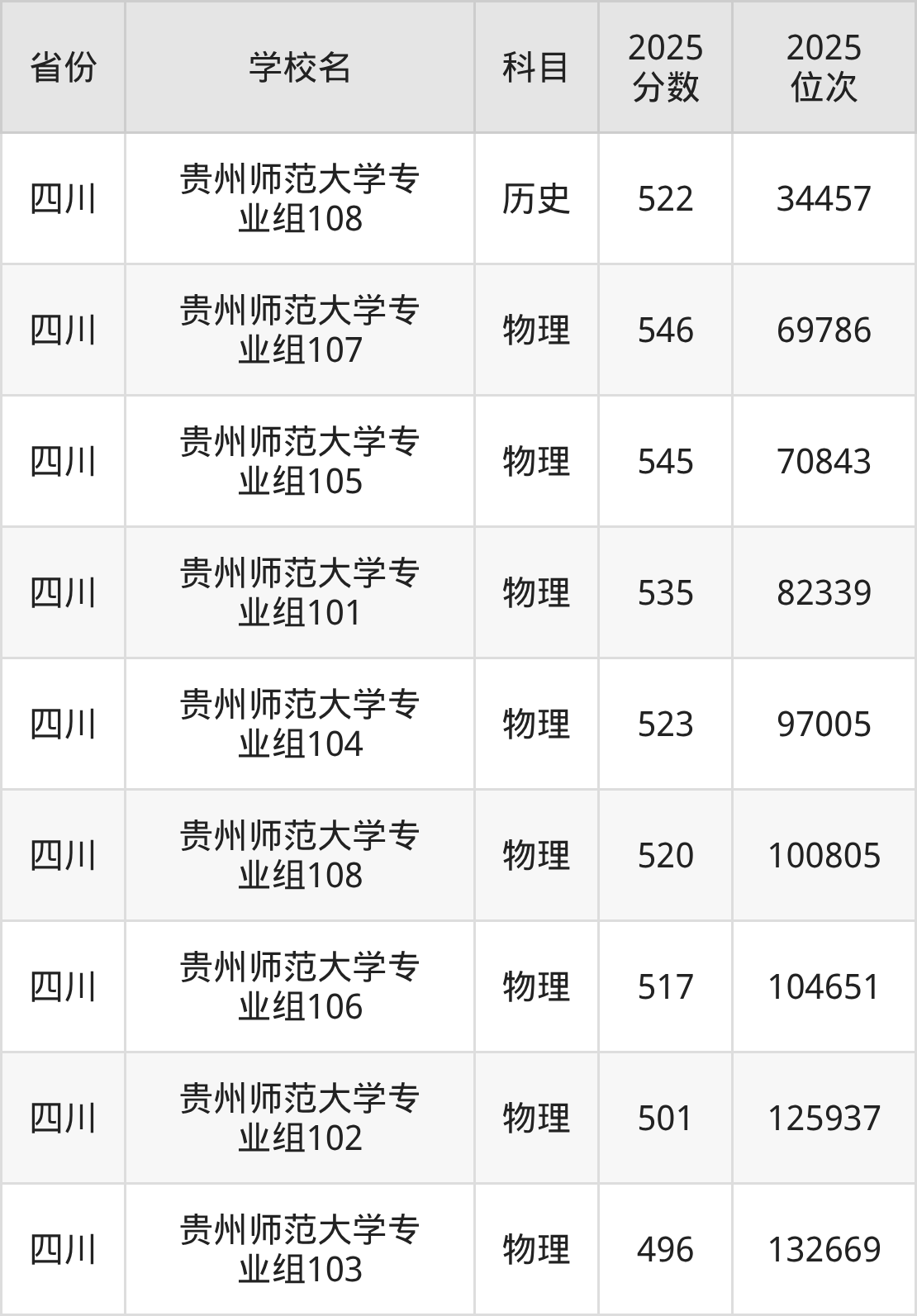 | 贵州师范大学( 地方专项计划) | 物理 | 446 | 100300 |