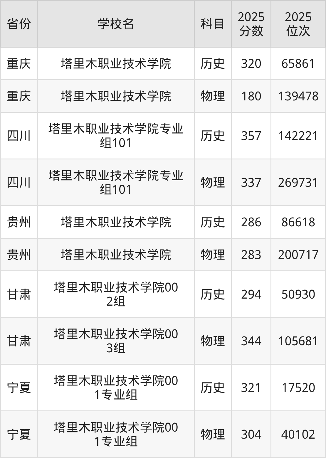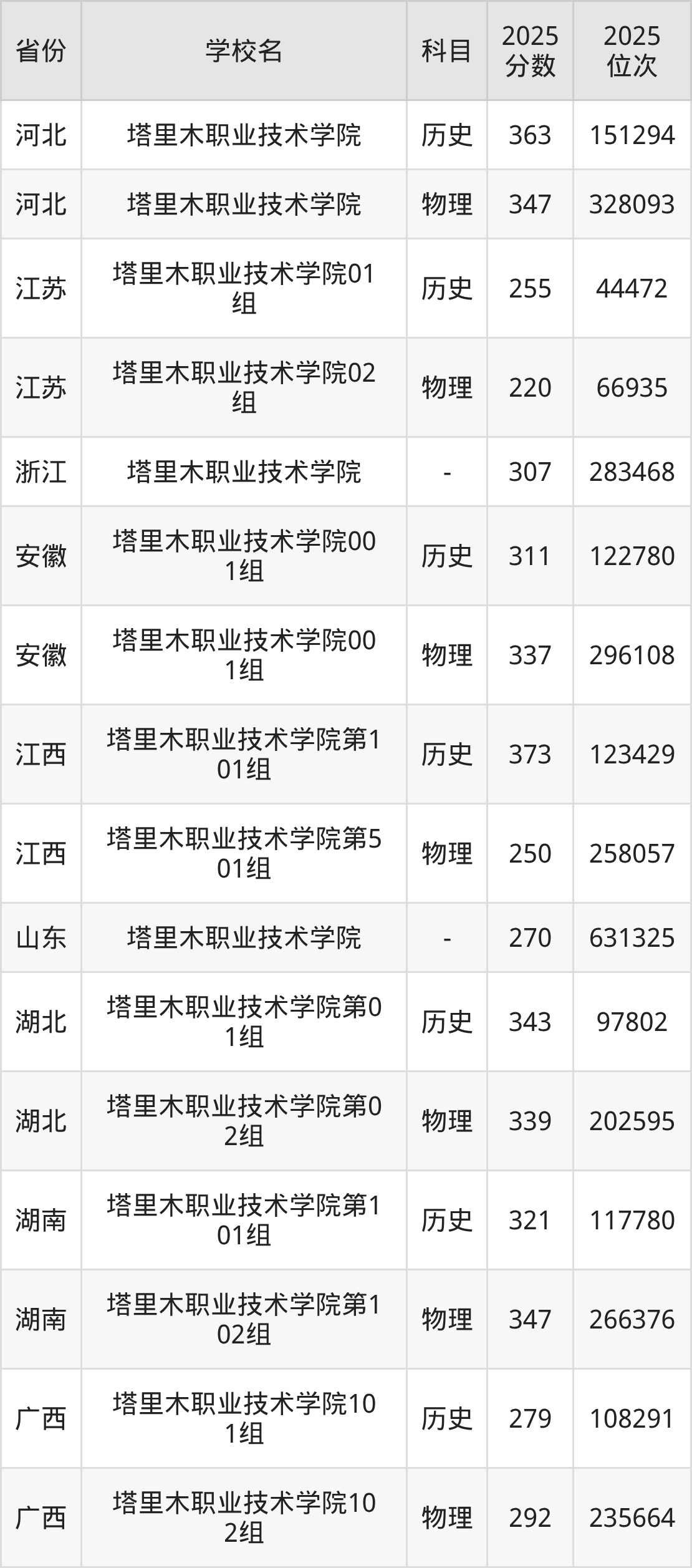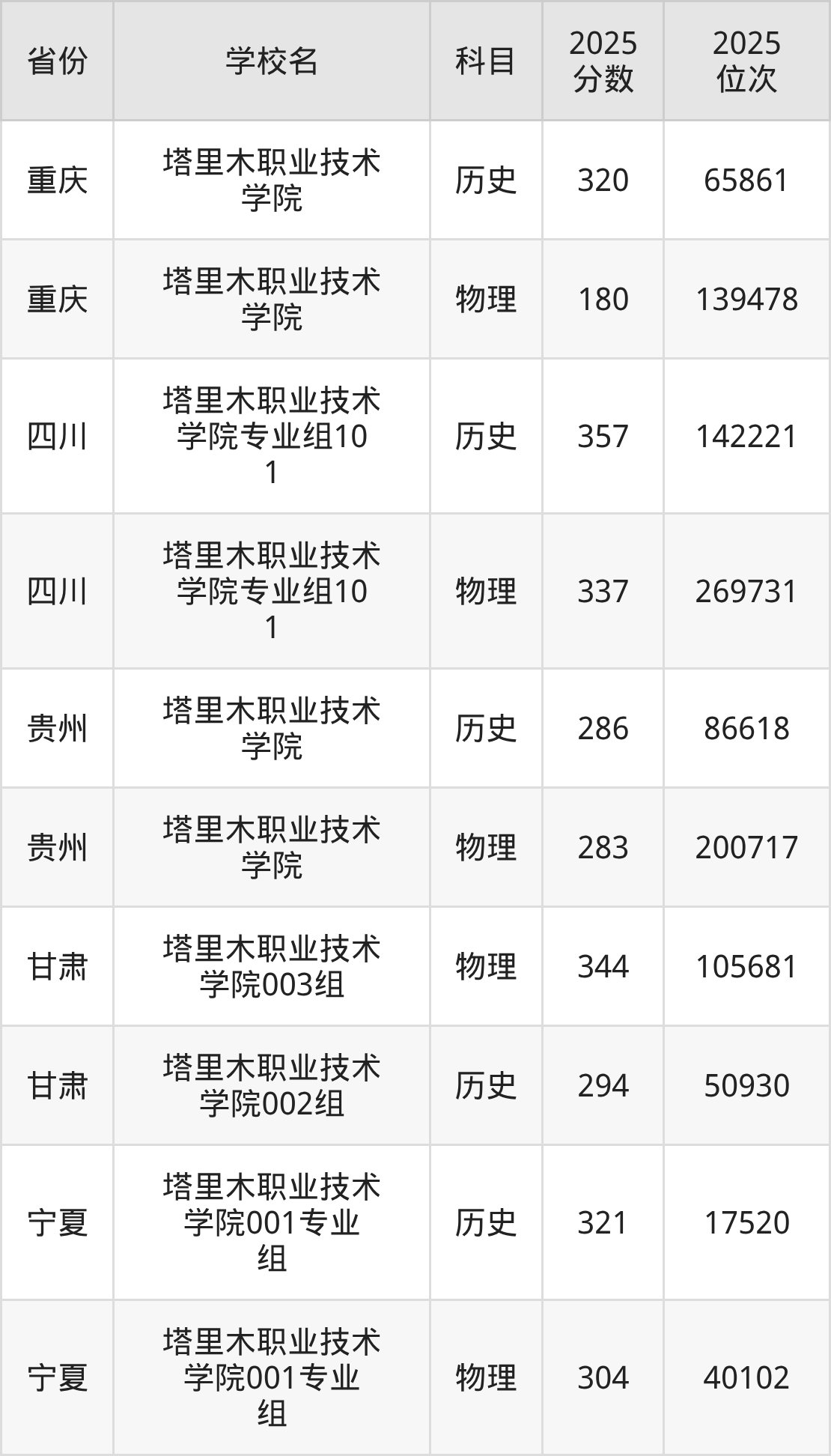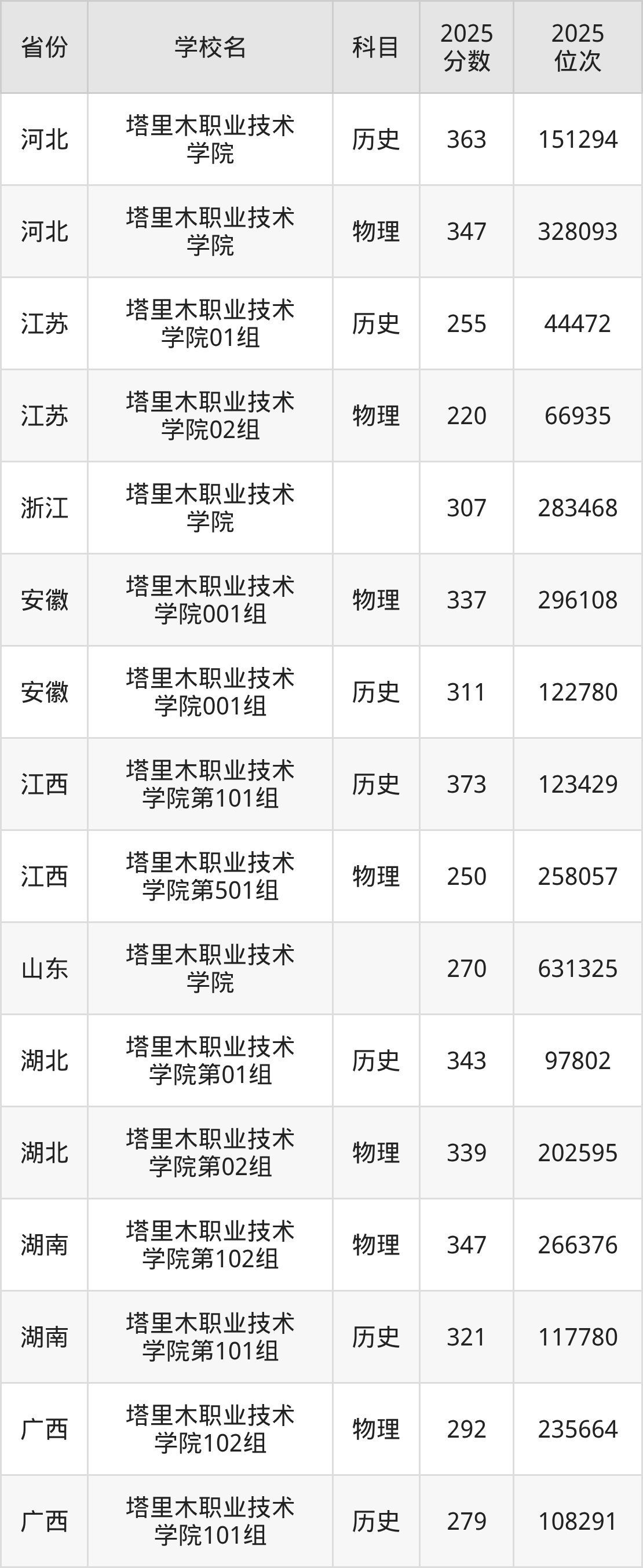 下面是塔里木职业技术学院2025年录取分数线各省汇总,一起来了解下吧。