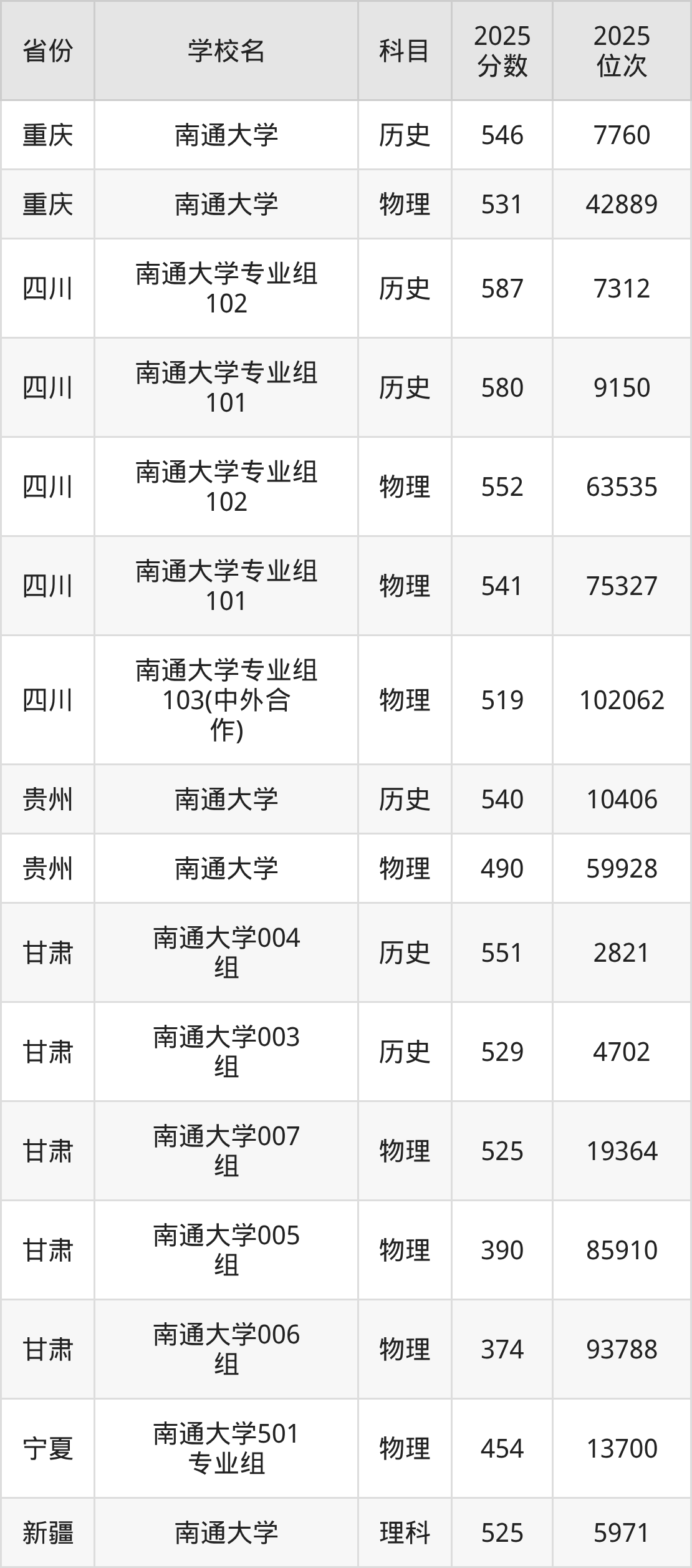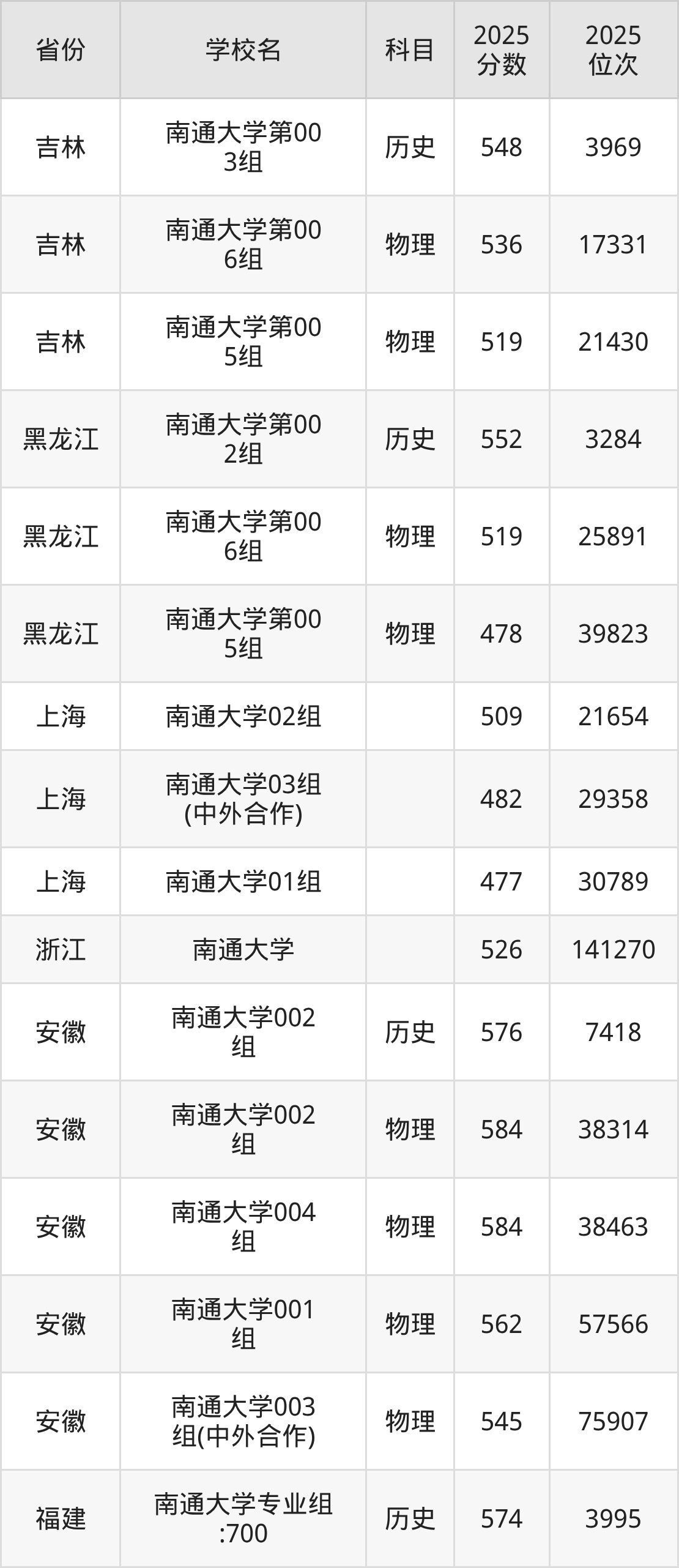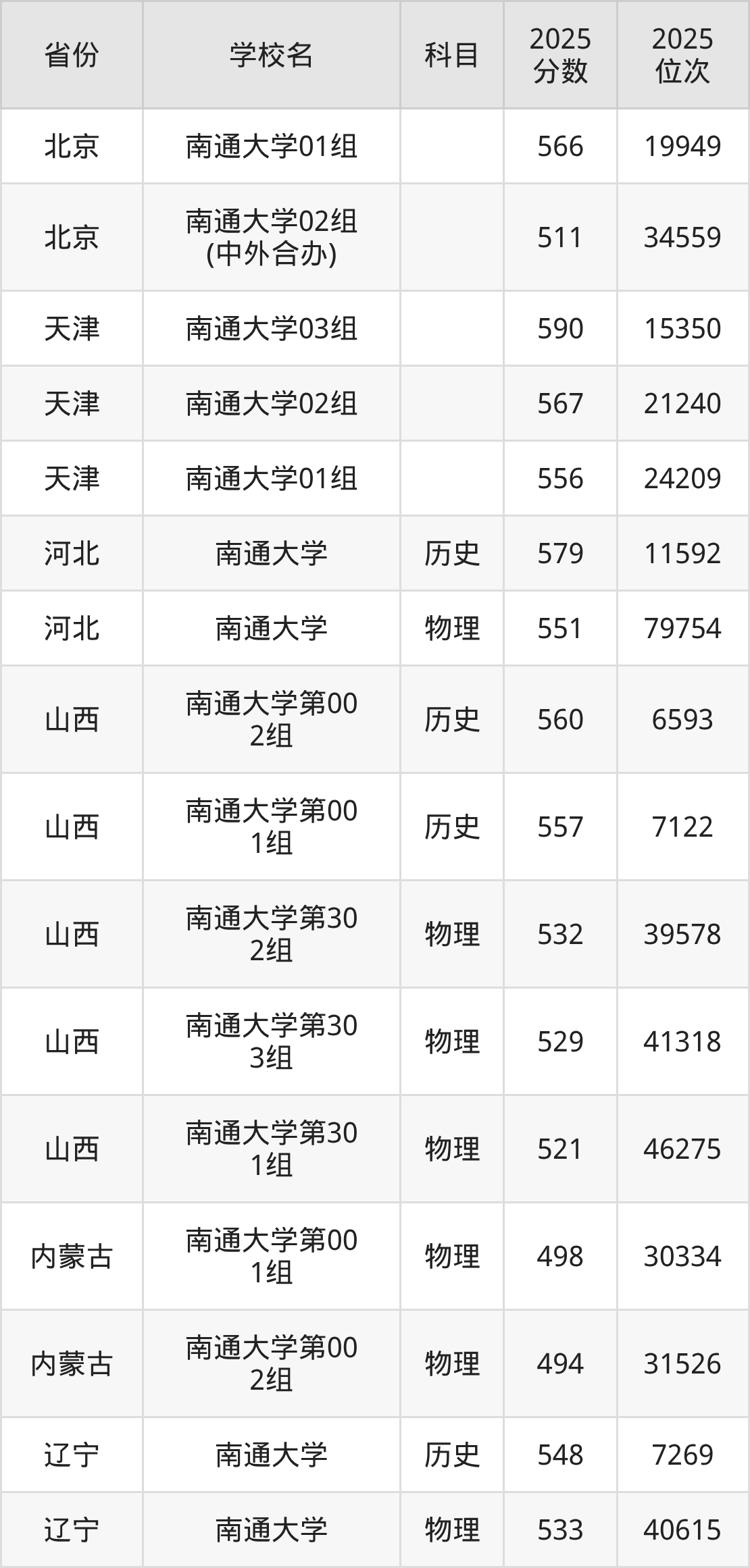 下面是南通大学2025年录取分数线各省汇总,一起来了解下吧。