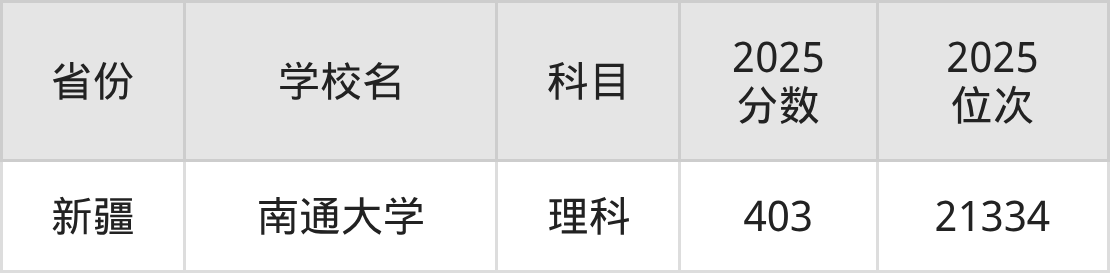 | 学校名 | 科目 | 2025 分数 | 2025 位次 |