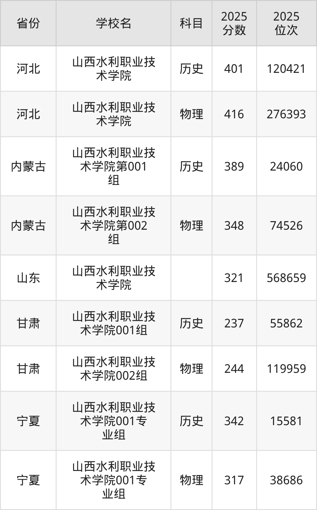 下面是山西水利职业技术学院2025年录取分数线各省汇总,一起来了解下吧。