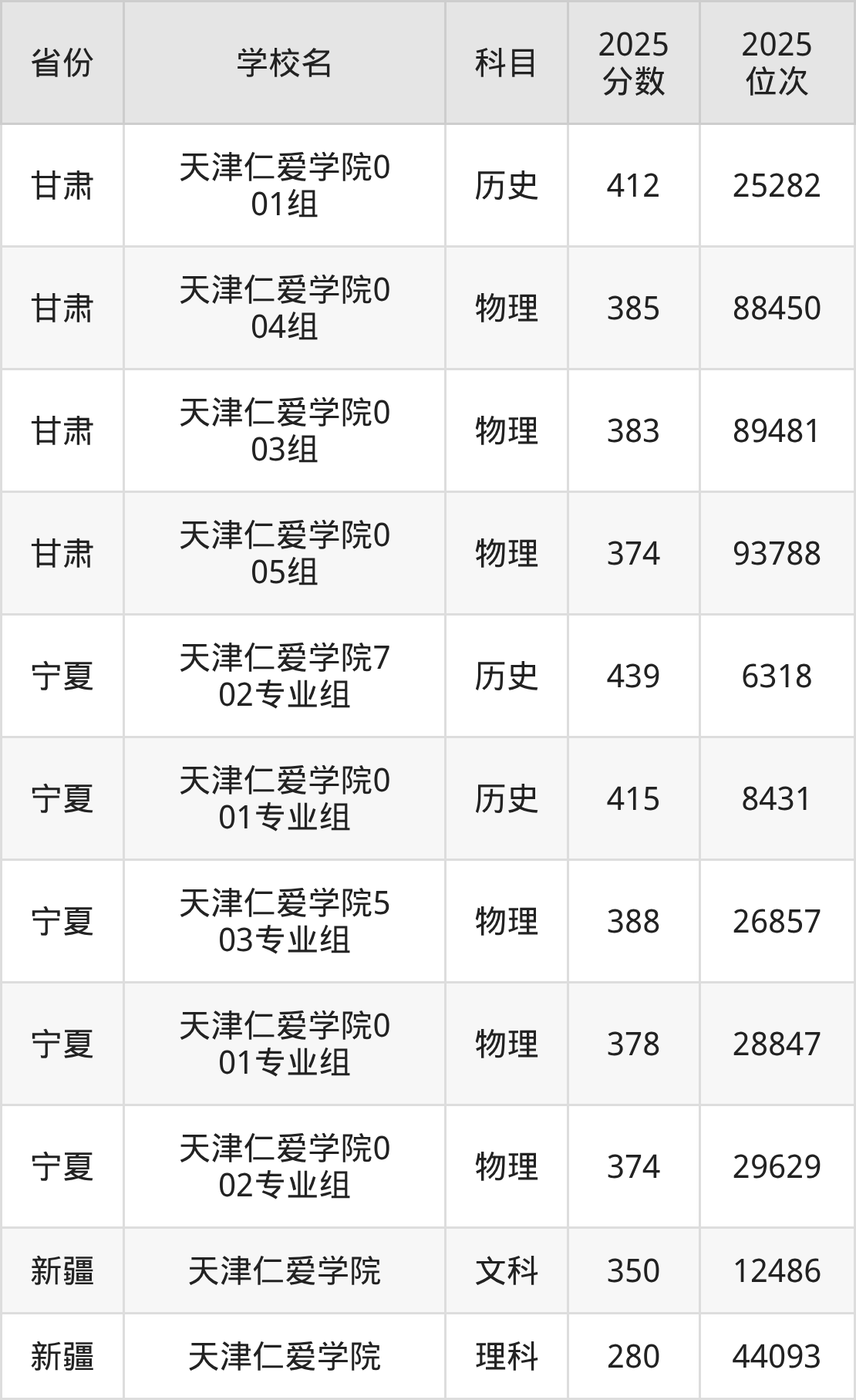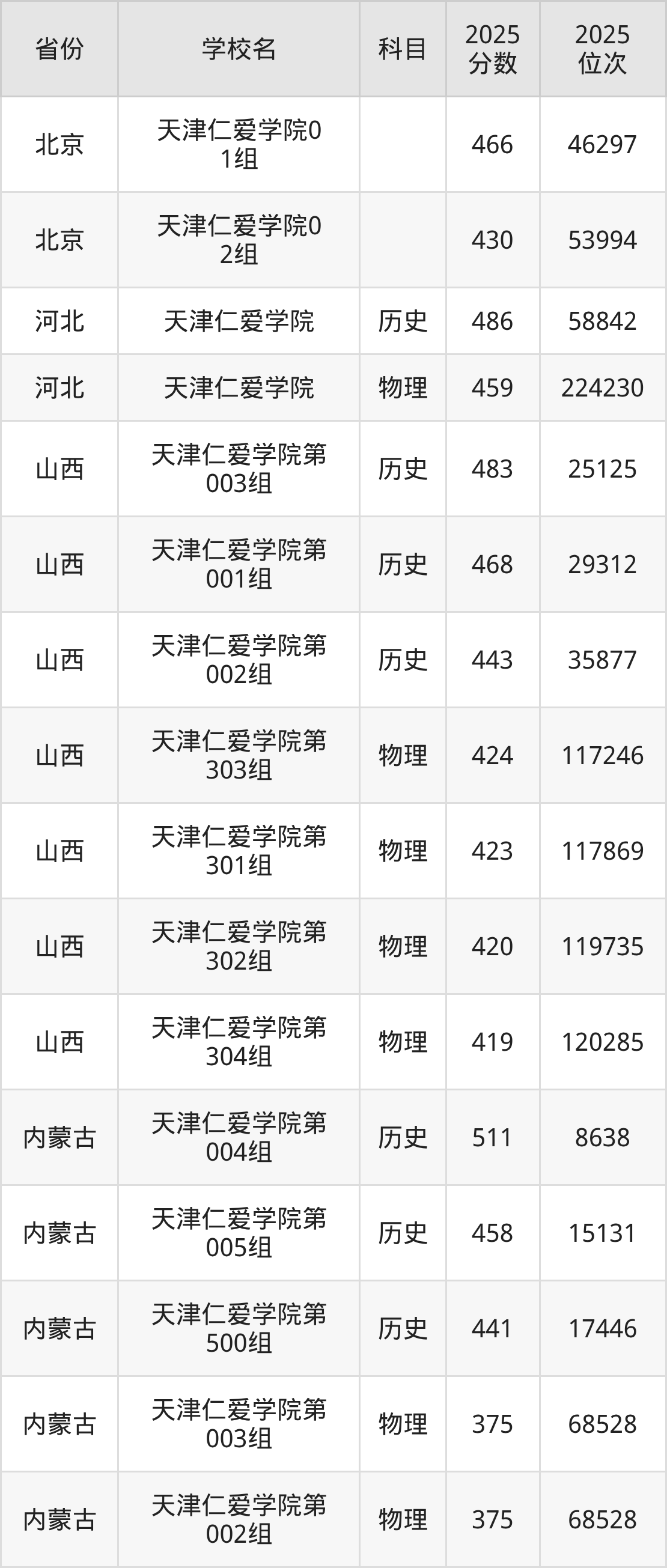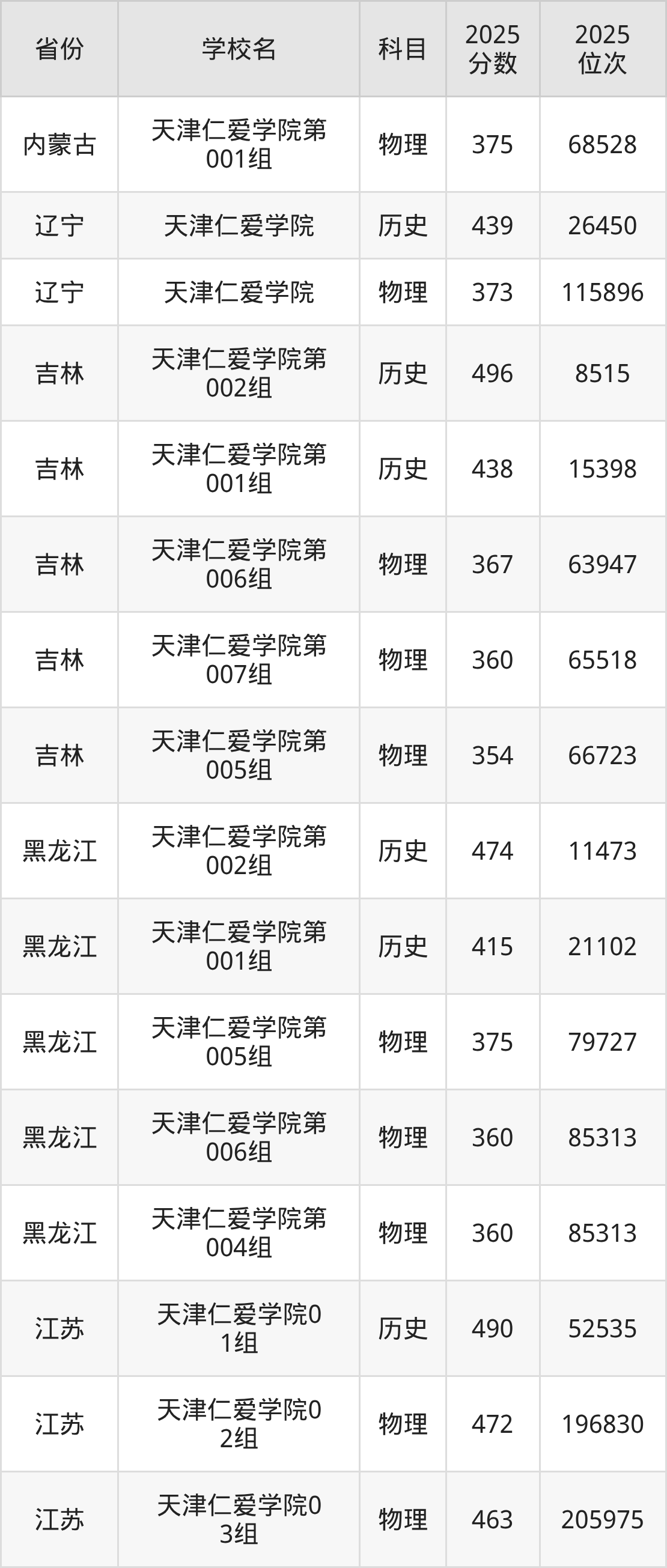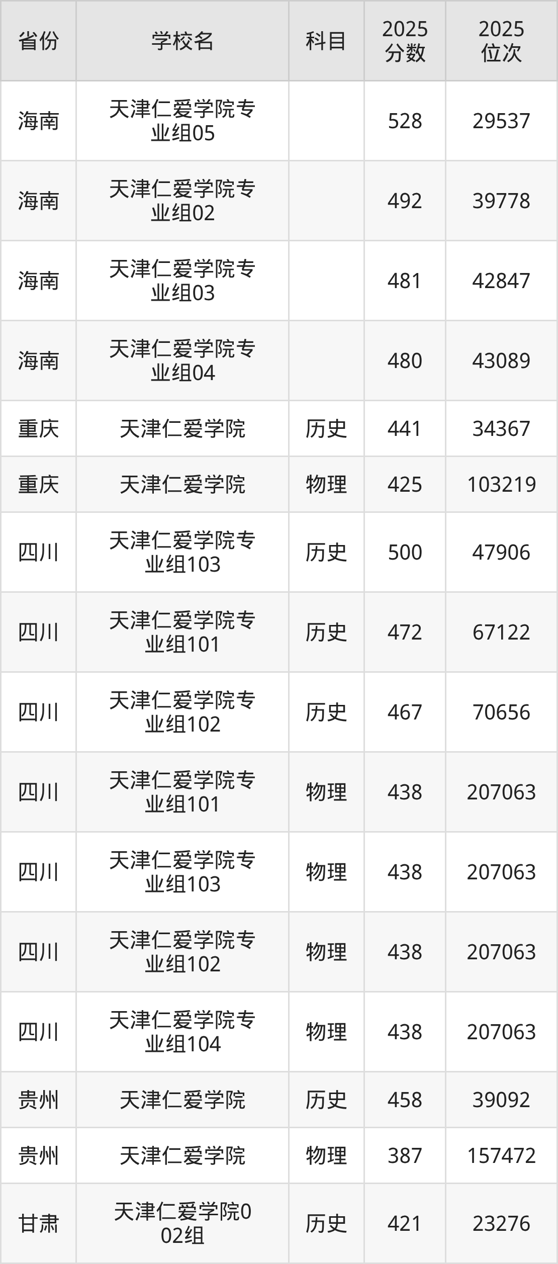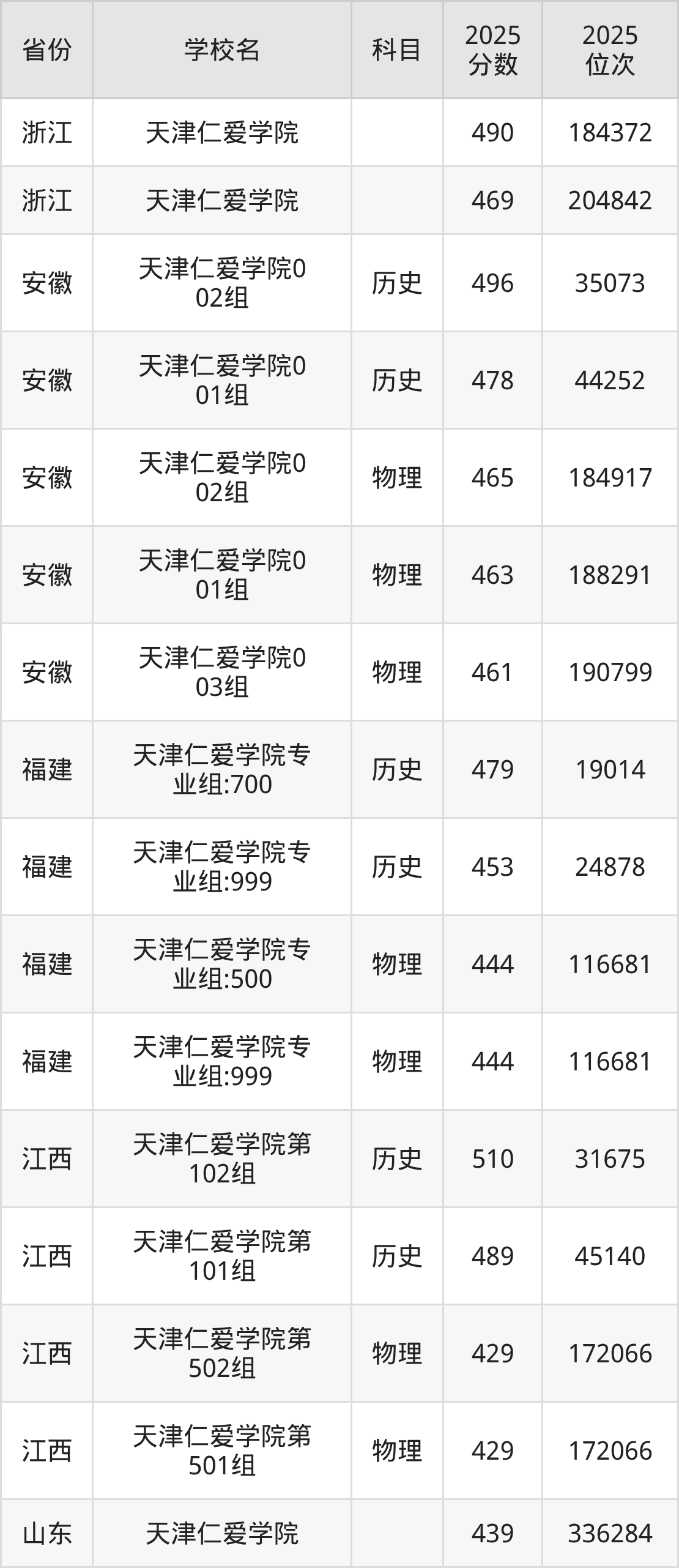 下面是天津仁爱学院2025年录取分数线各省汇总,一起来了解下吧。