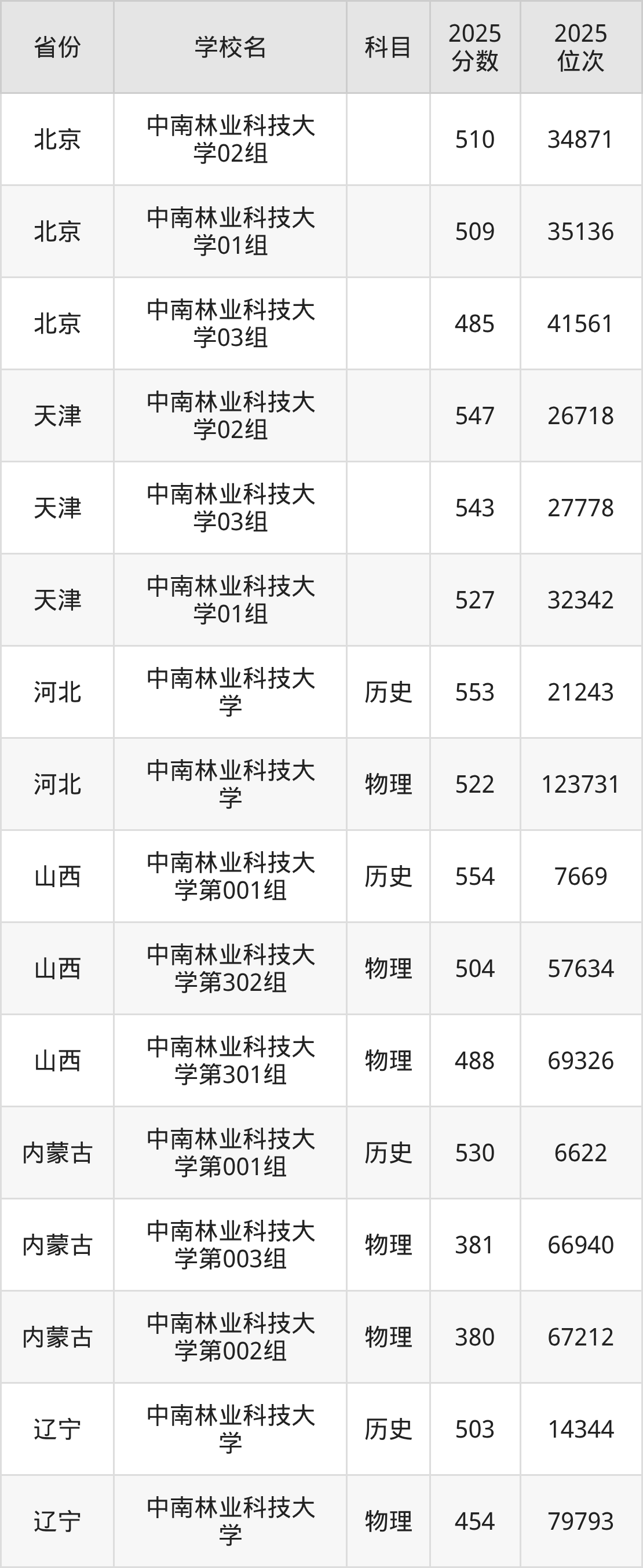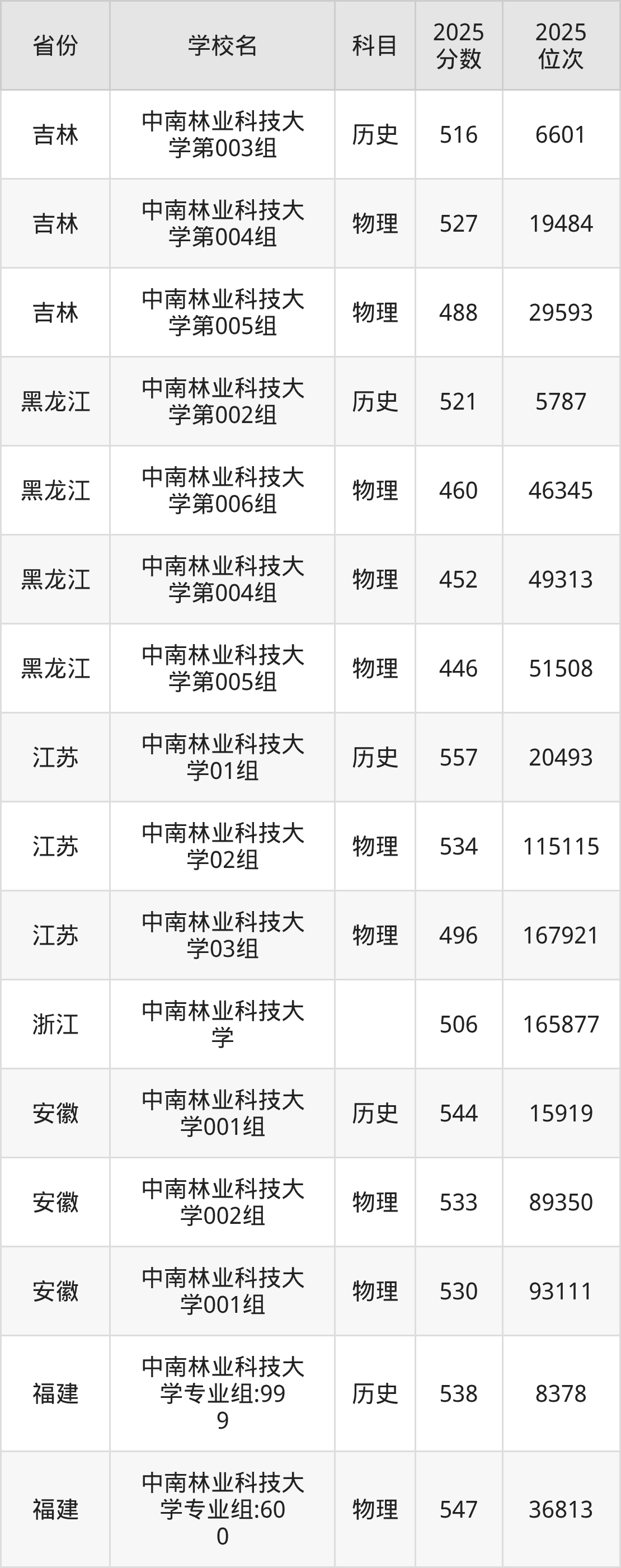 | 中南林业科技大 学第424组( 地方专项) | 物理 | 507 | 83152 |
