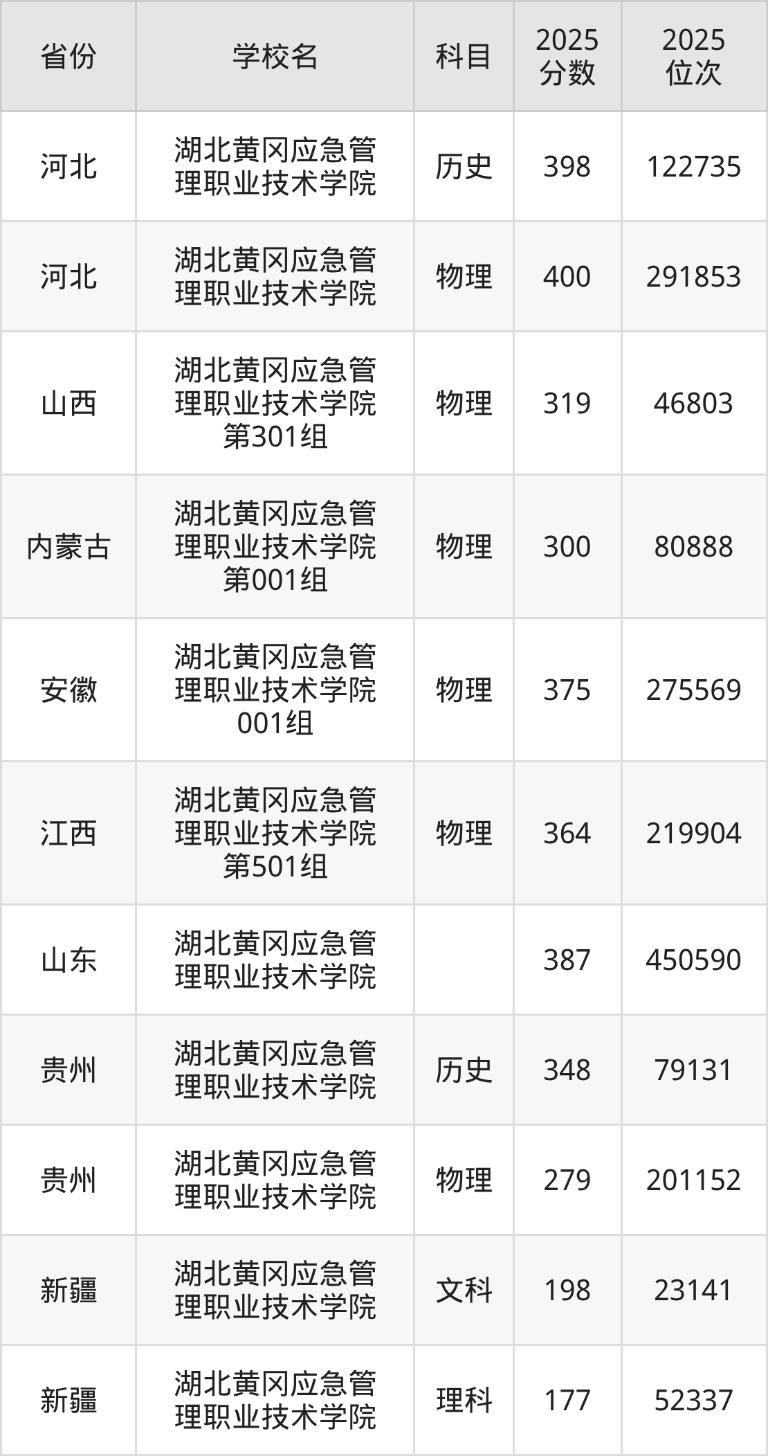 下面是湖北黄冈应急管理职业技术学院2025年录取分数线各省汇总,一起来了解下吧。