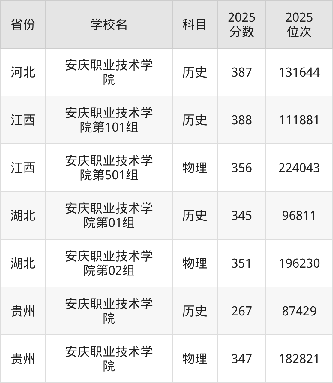 下面是安庆职业技术学院2025年录取分数线各省汇总,一起来了解下吧。