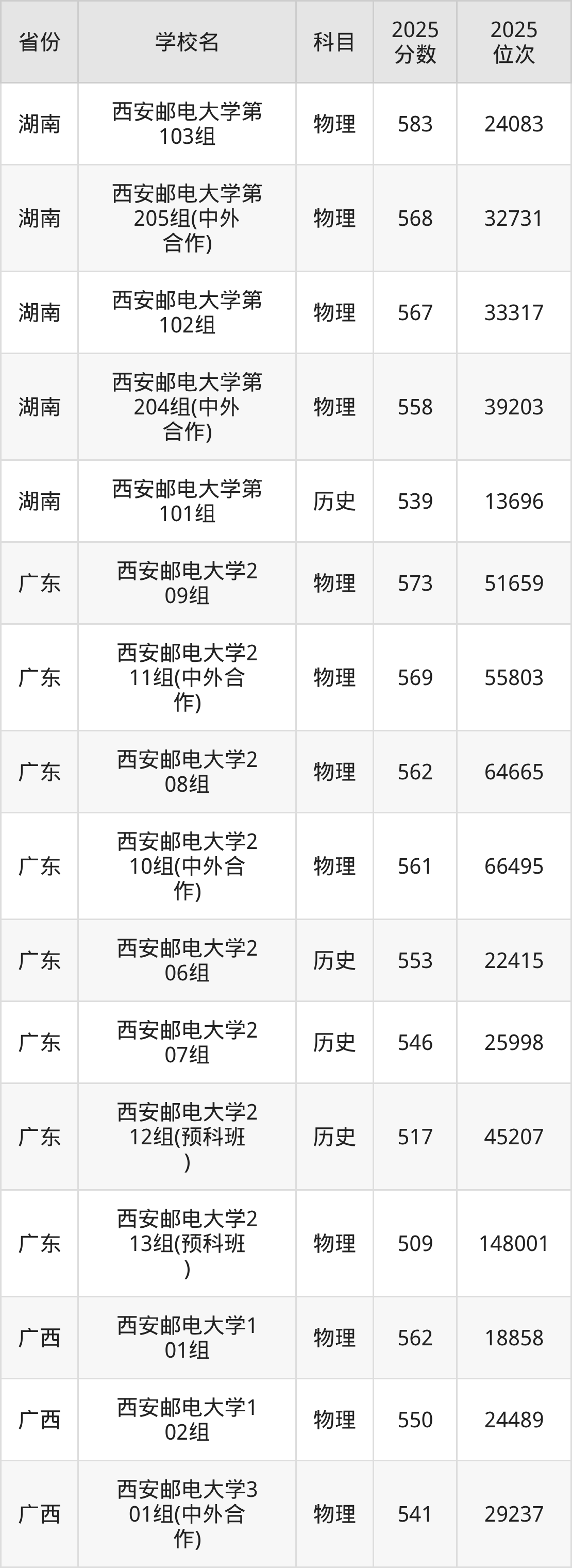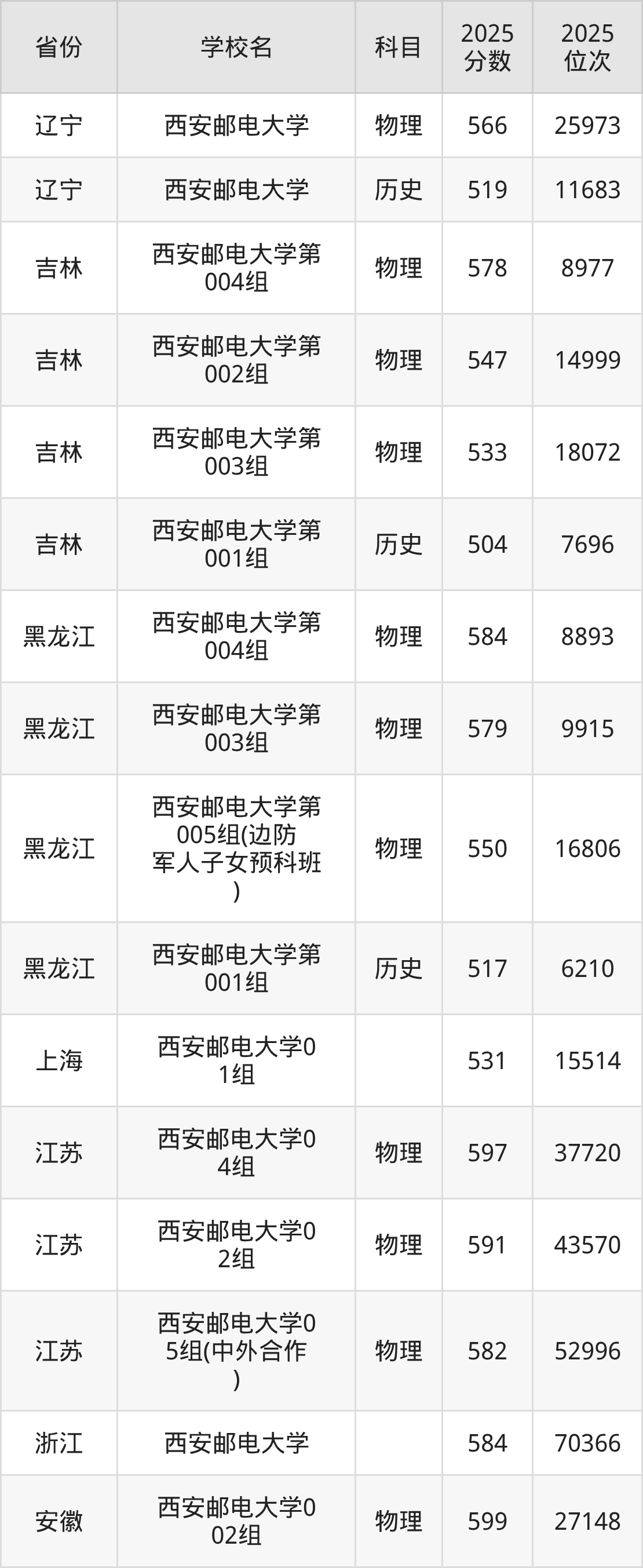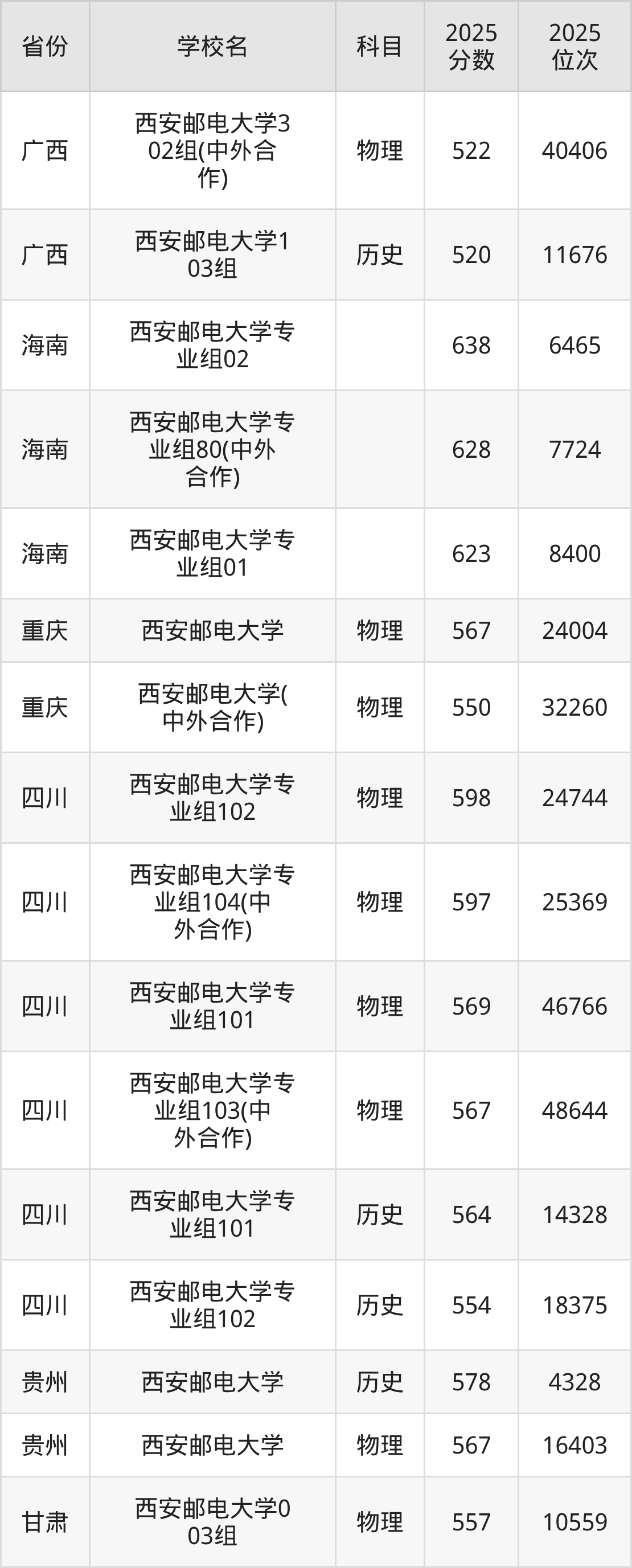 2025年西安邮电大学历史类最低分473分(12671名)、物理类最低分496分(30242名)。