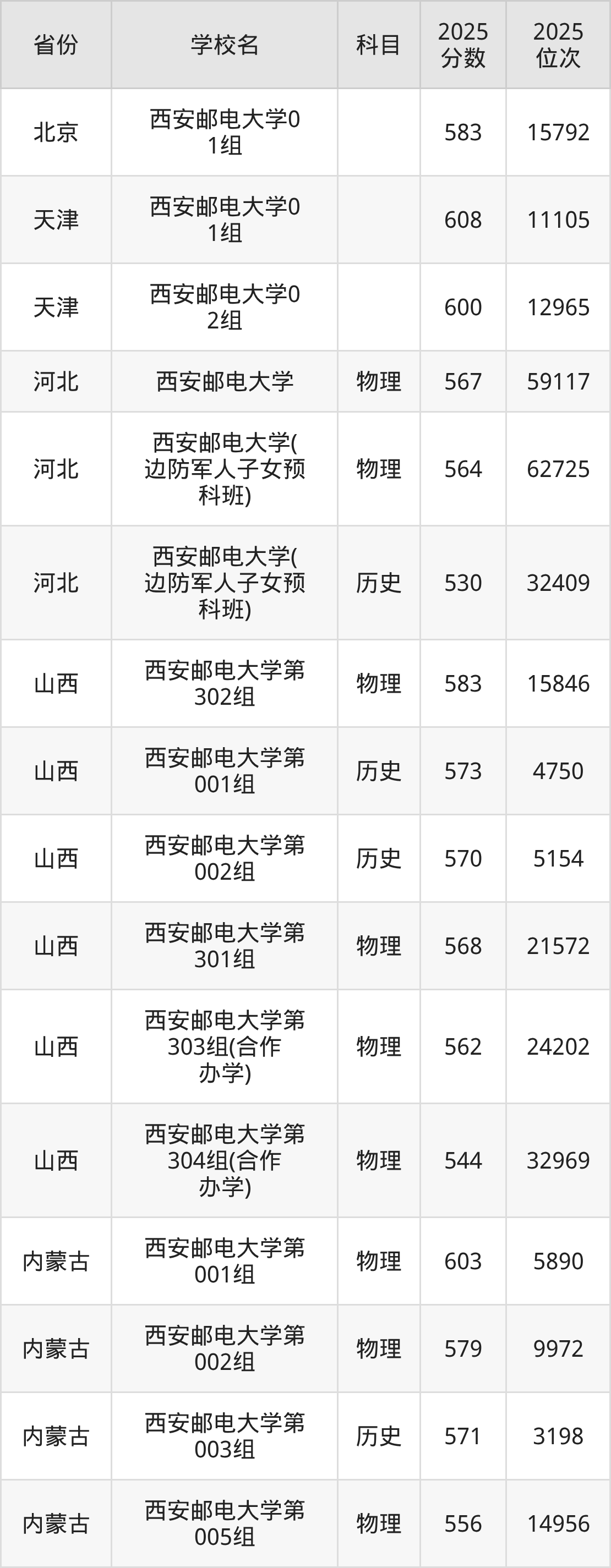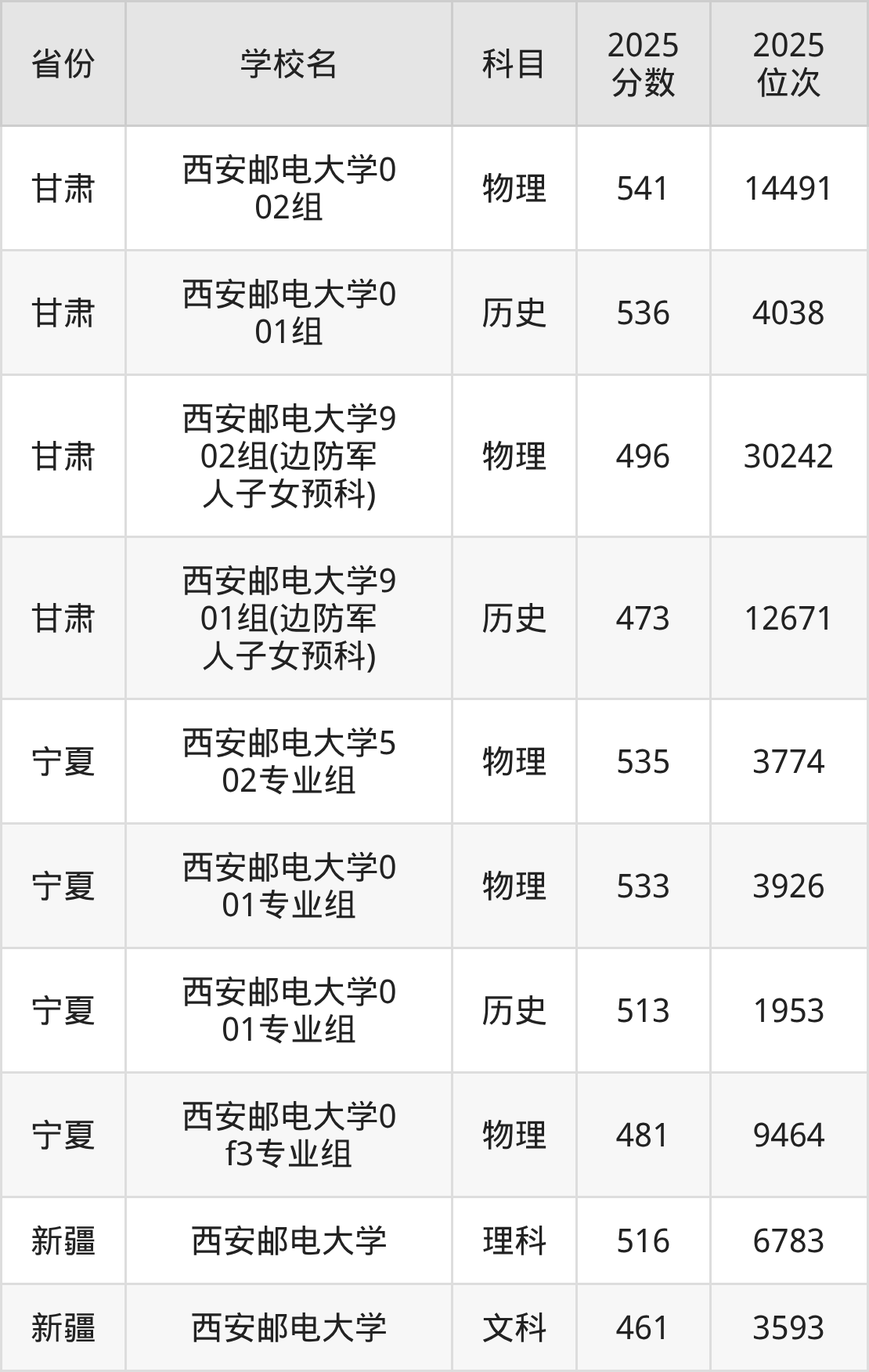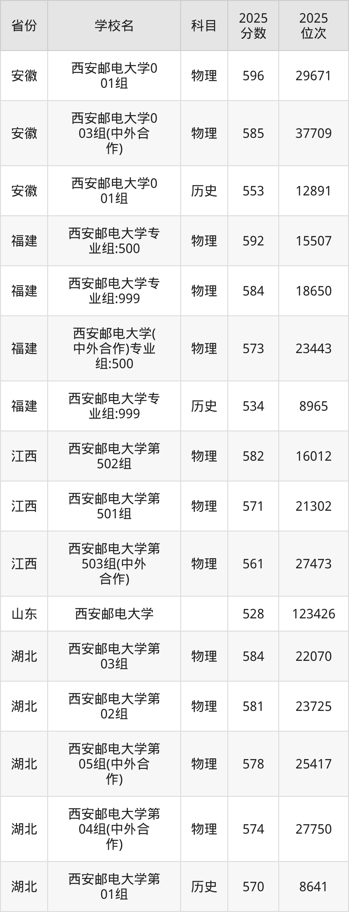 2025年西安邮电大学历史类最低分473分(12671名)、物理类最低分496分(30242名)。