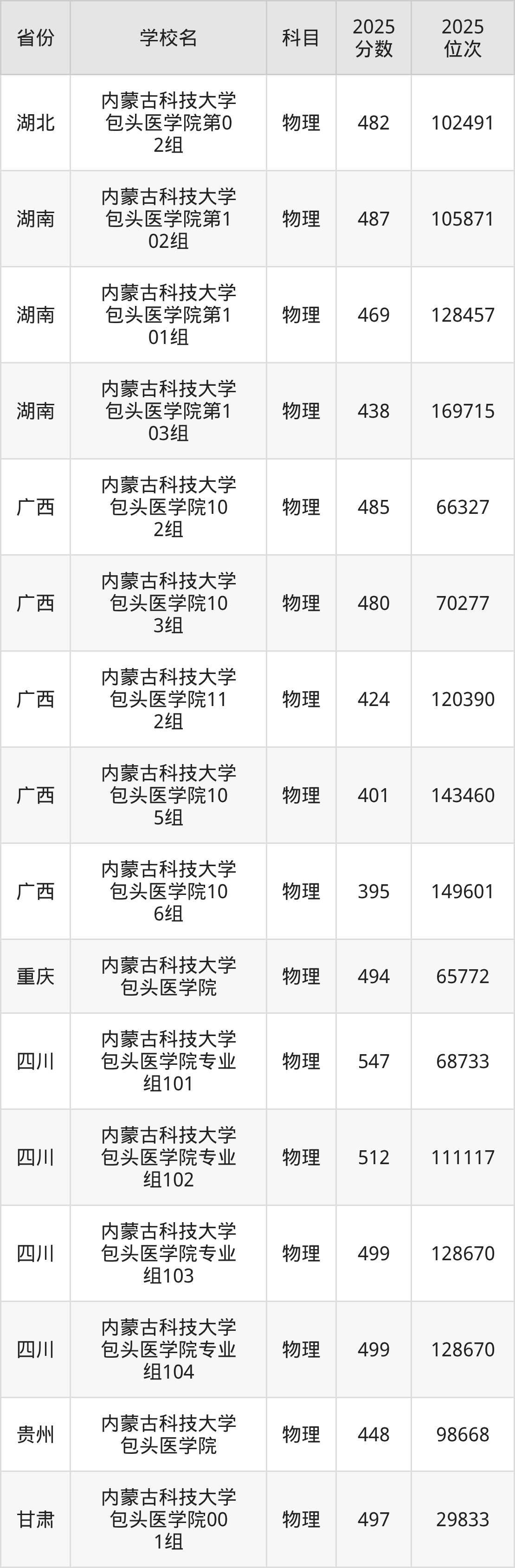 下面是内蒙古科技大学包头医学院2025年录取分数线各省汇总,一起来了解下吧。