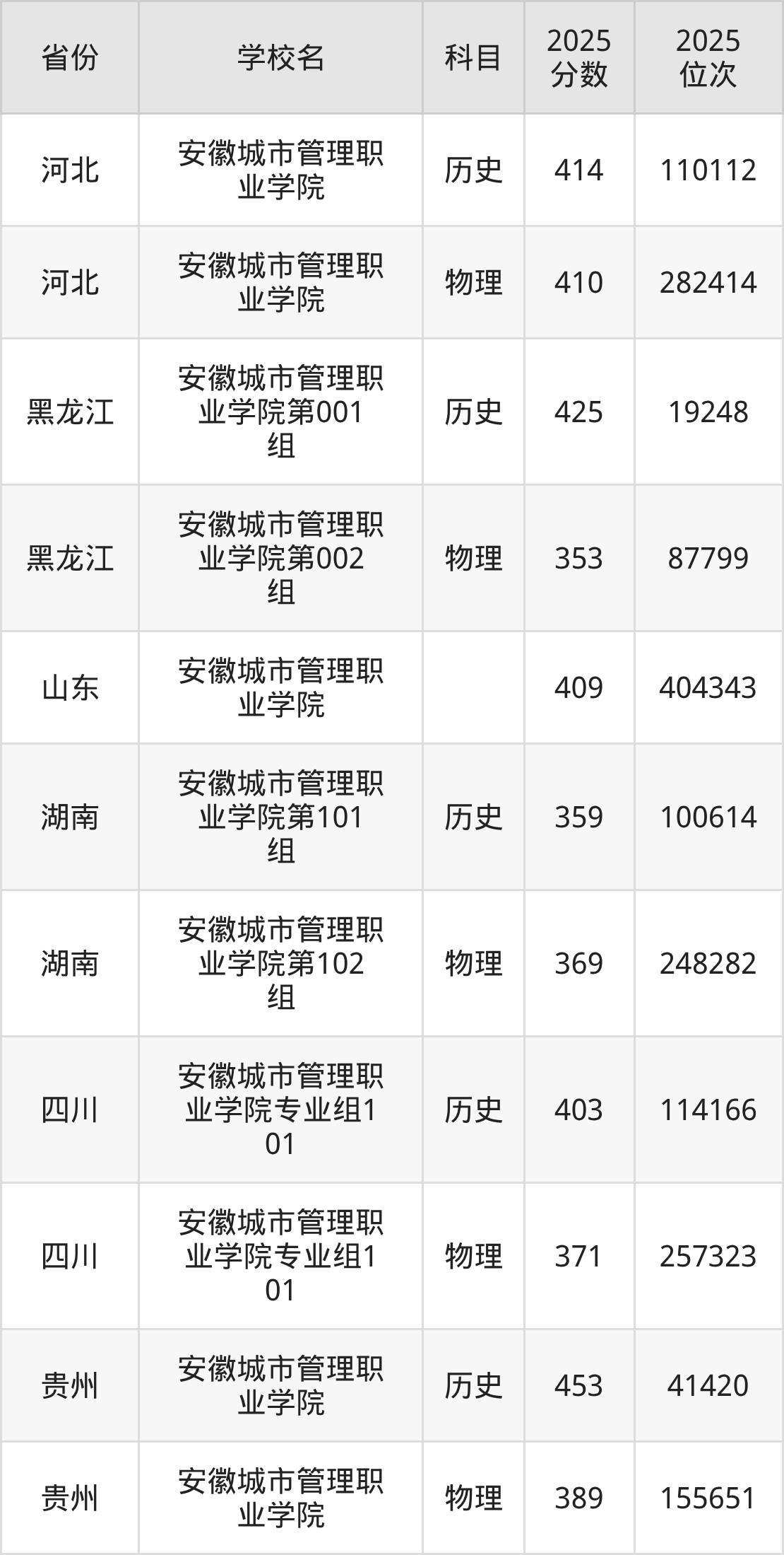 下面是安徽城市管理职业学院2025年录取分数线各省汇总,一起来了解下吧。