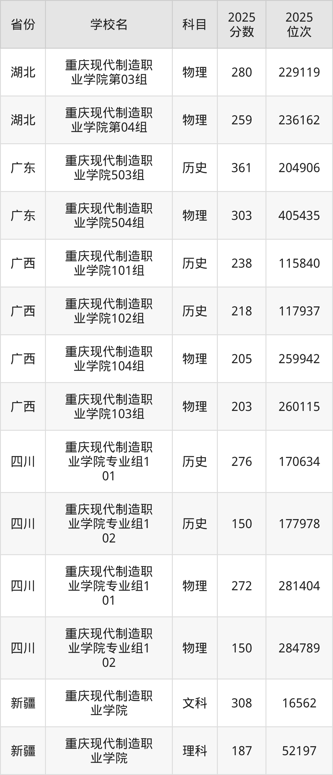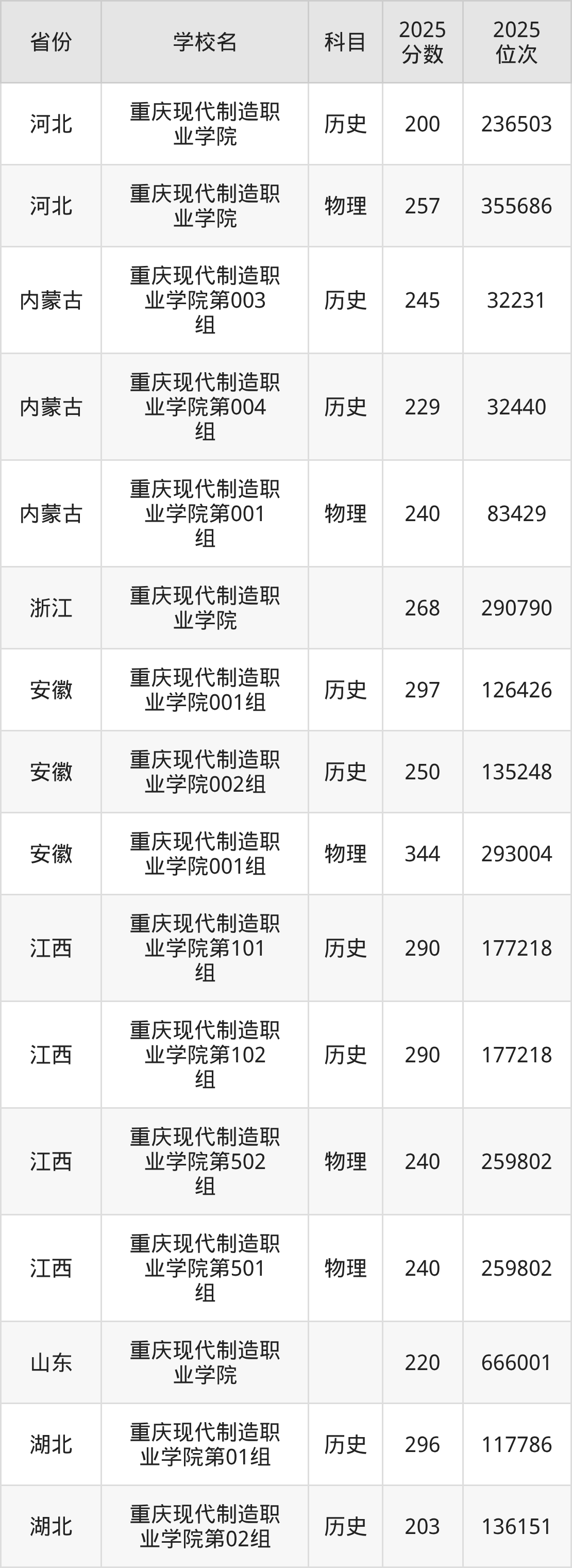 下面是重庆现代制造职业学院2025年录取分数线各省汇总,一起来了解下吧。