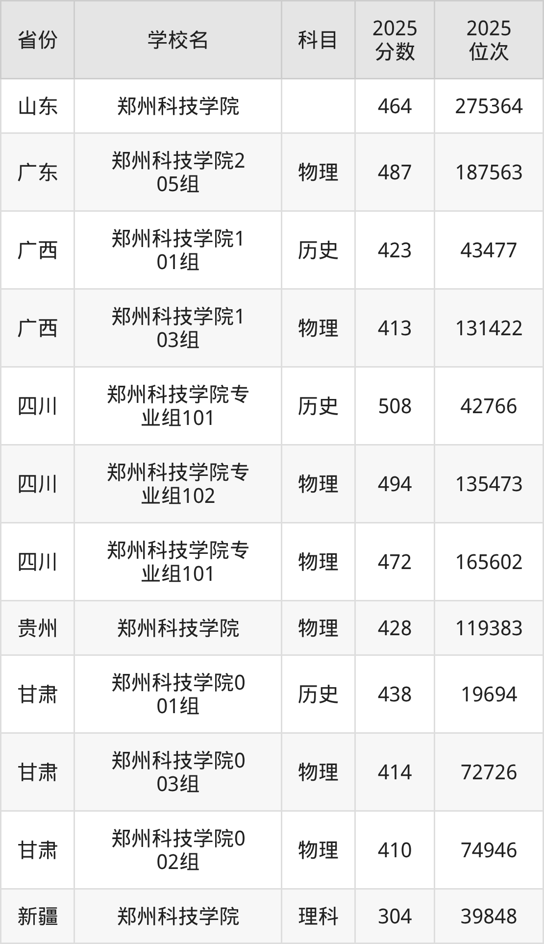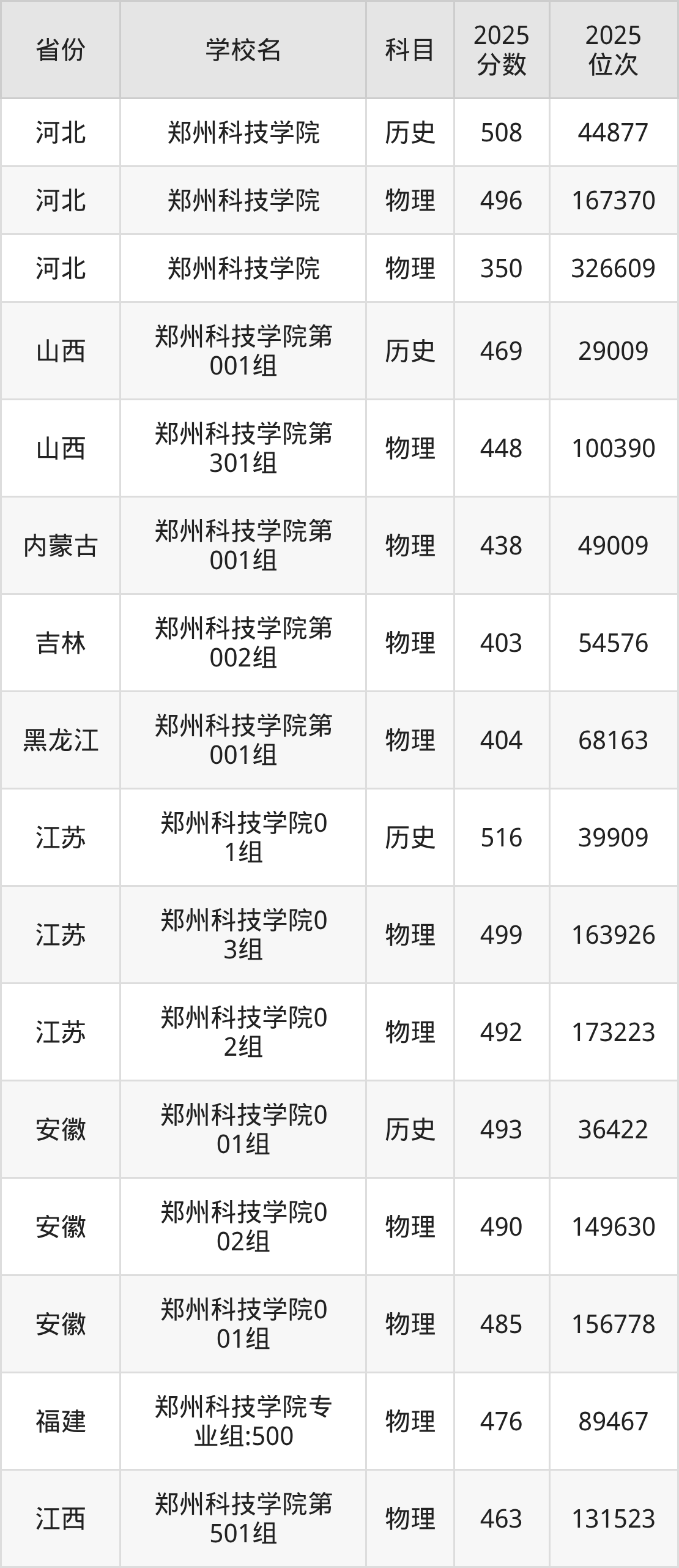 2025年郑州科技学院历史类最低分508分(44877名)、物理类最低分350分(326609名)。