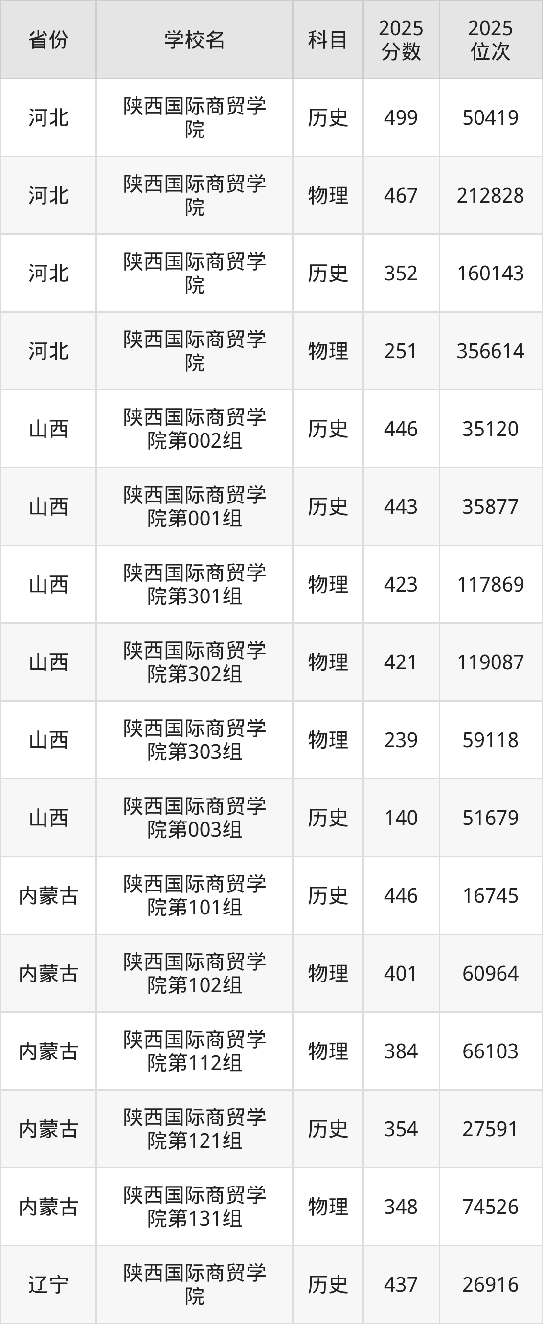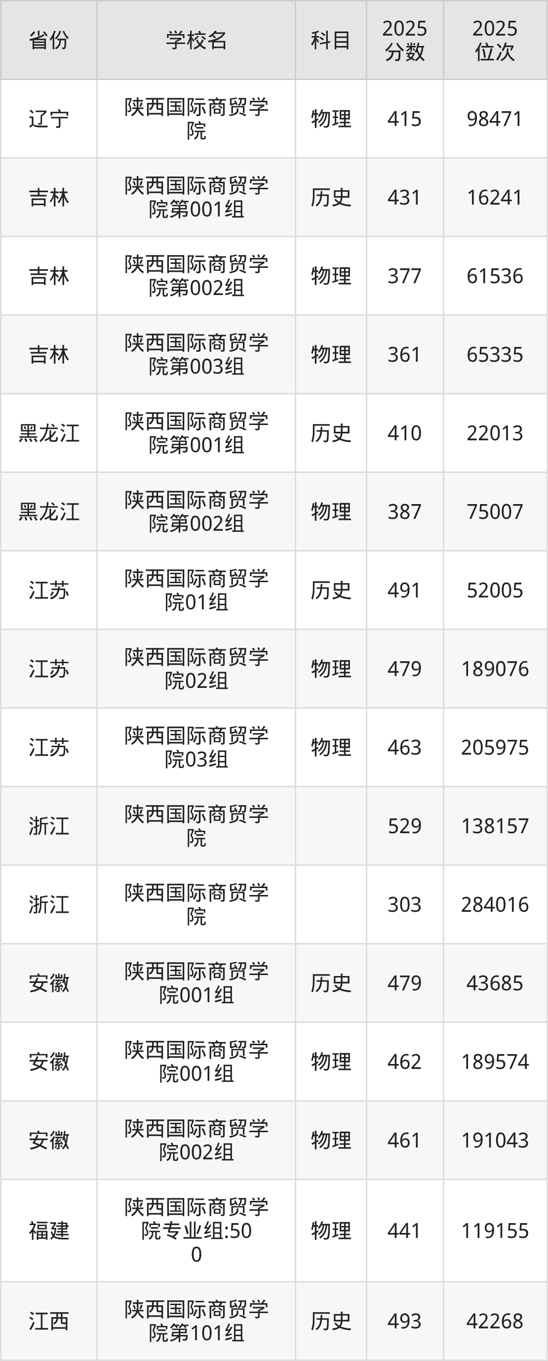 2025年陕西国际商贸学院历史类最低分479分(43685名)、物理类最低分461分(191043名)。