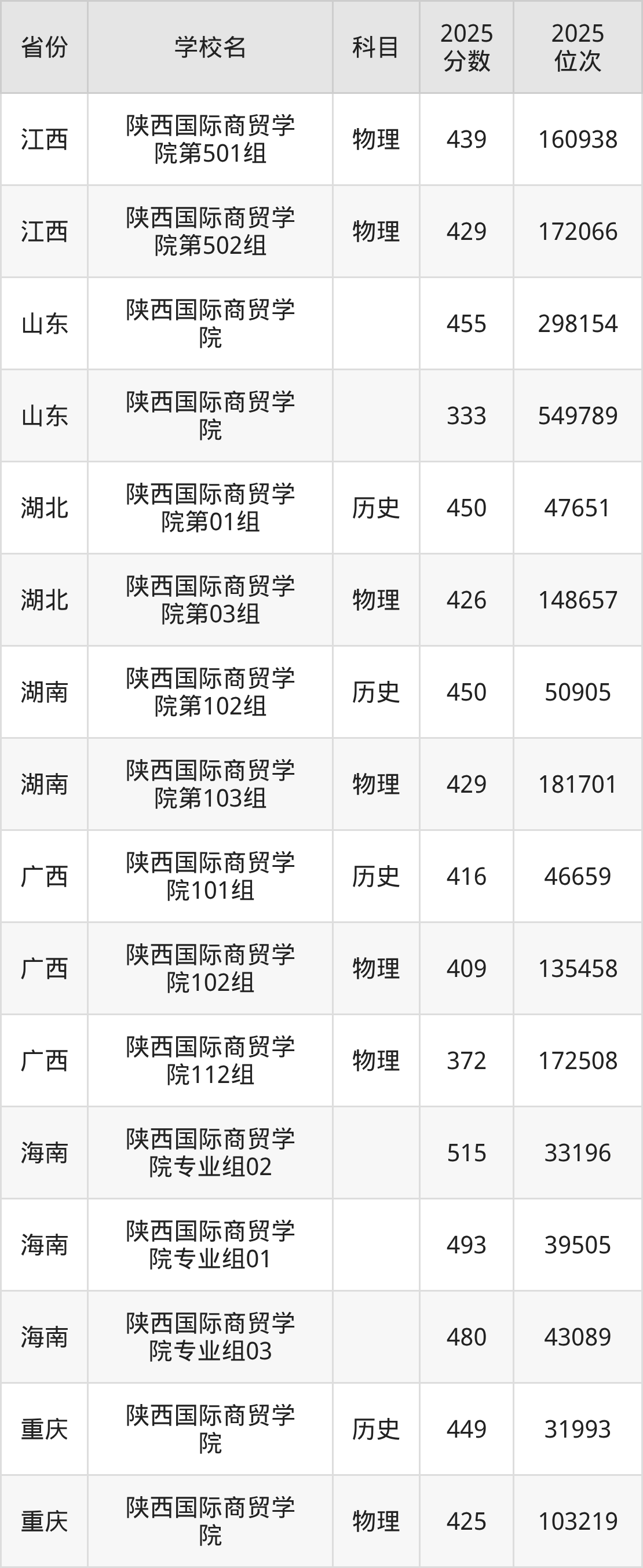 下面是陕西国际商贸学院2025年录取分数线各省汇总,一起来了解下吧。