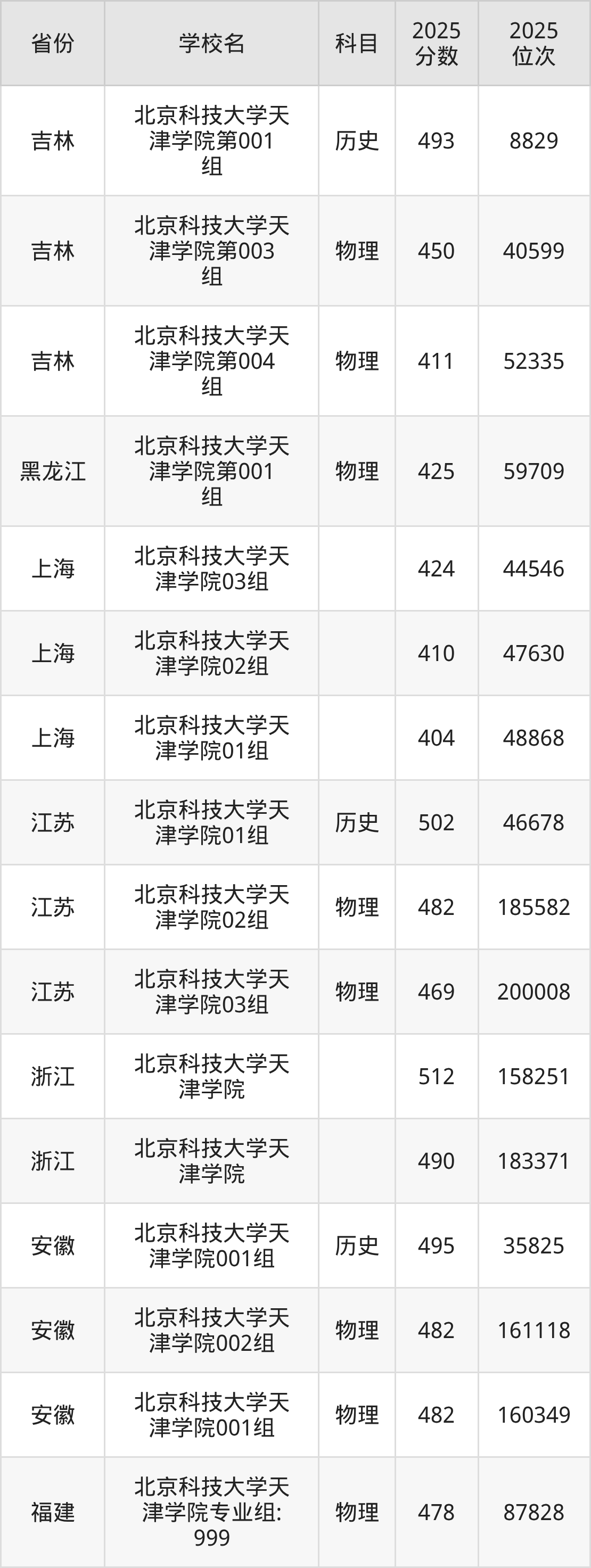 2025年北京科技大学天津学院最低分483分(45183名)。