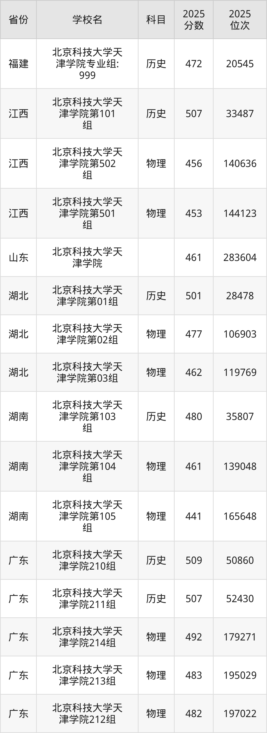下面是北京科技大学天津学院2025年录取分数线各省汇总,一起来了解下吧。