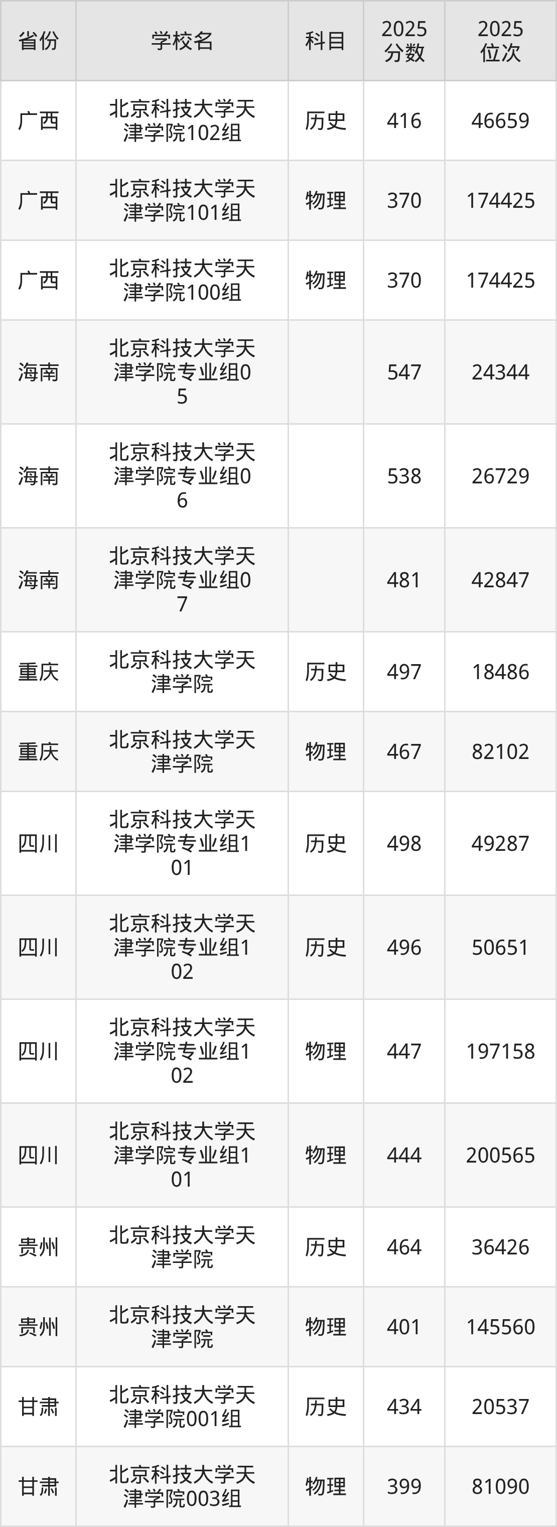 2026年北京科技大学天津学院录取分数线预计在450分及以上,在各省录取最低分存在一定差异,如:2025年北京科技大学天津学院在山东录取最低分是461分,在广东录取最低历史类507分、物理类482分,在重庆录取最低历史类497分、物理类467分。