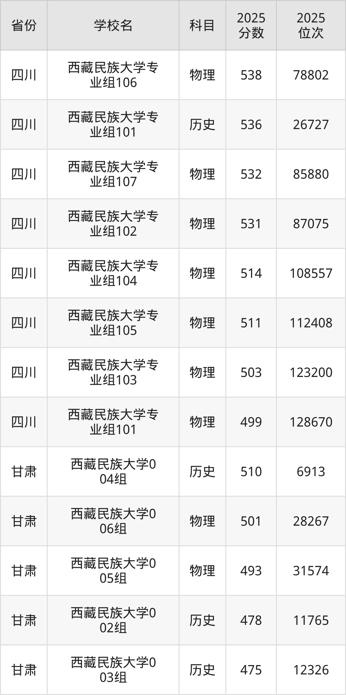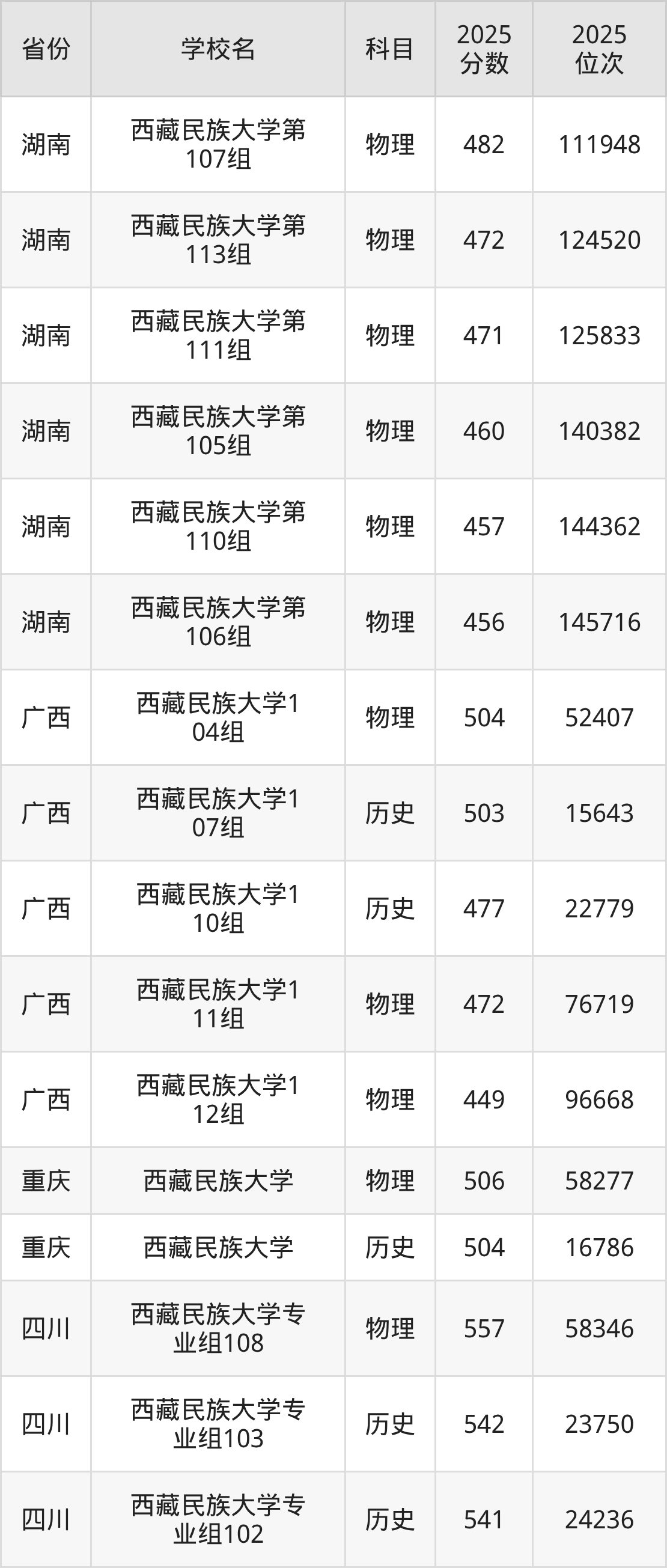 2025年西藏民族大学历史类最低分493分(30102名)、物理类最低分456分(145716名)。