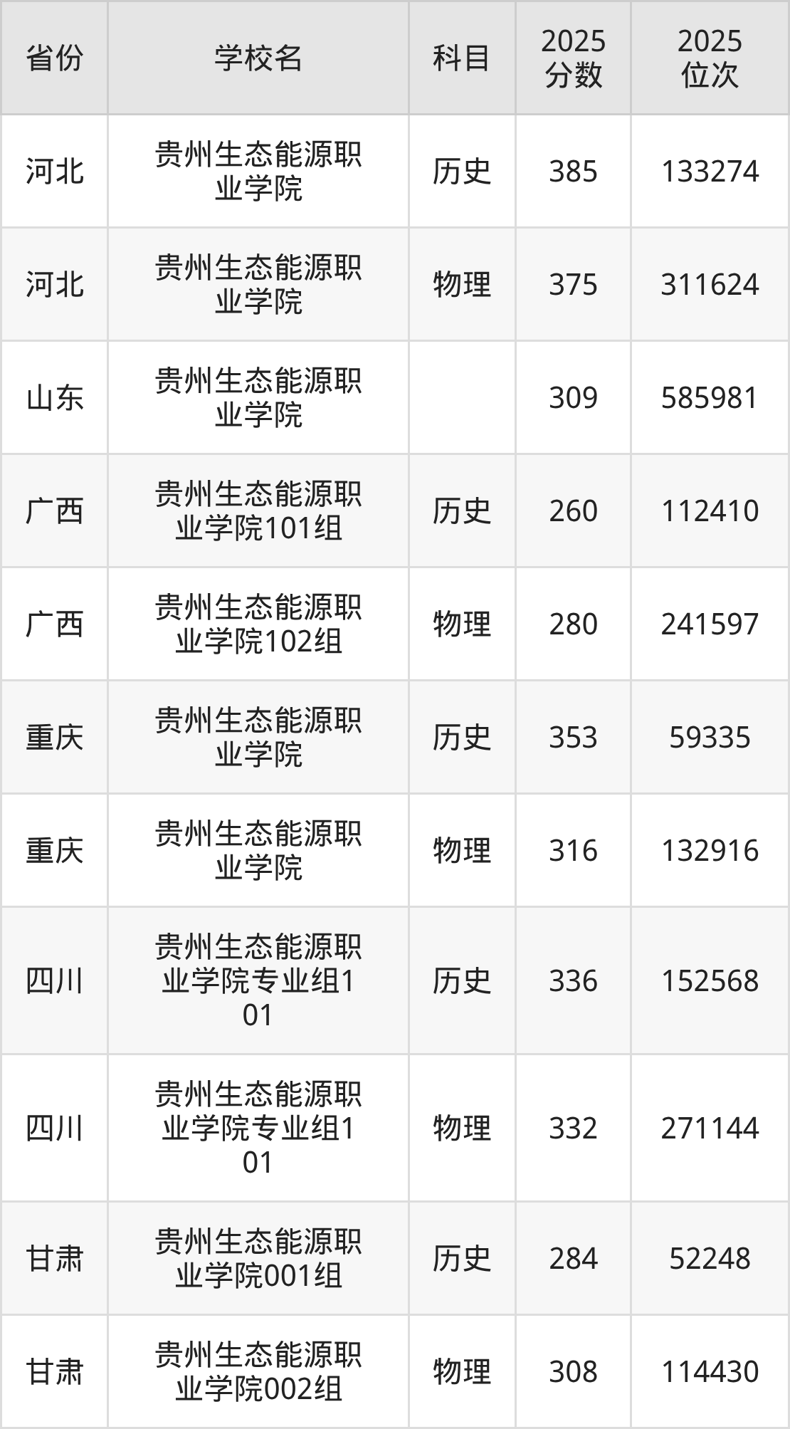 下面是贵州生态能源职业学院2025年录取分数线各省汇总,一起来了解下吧。