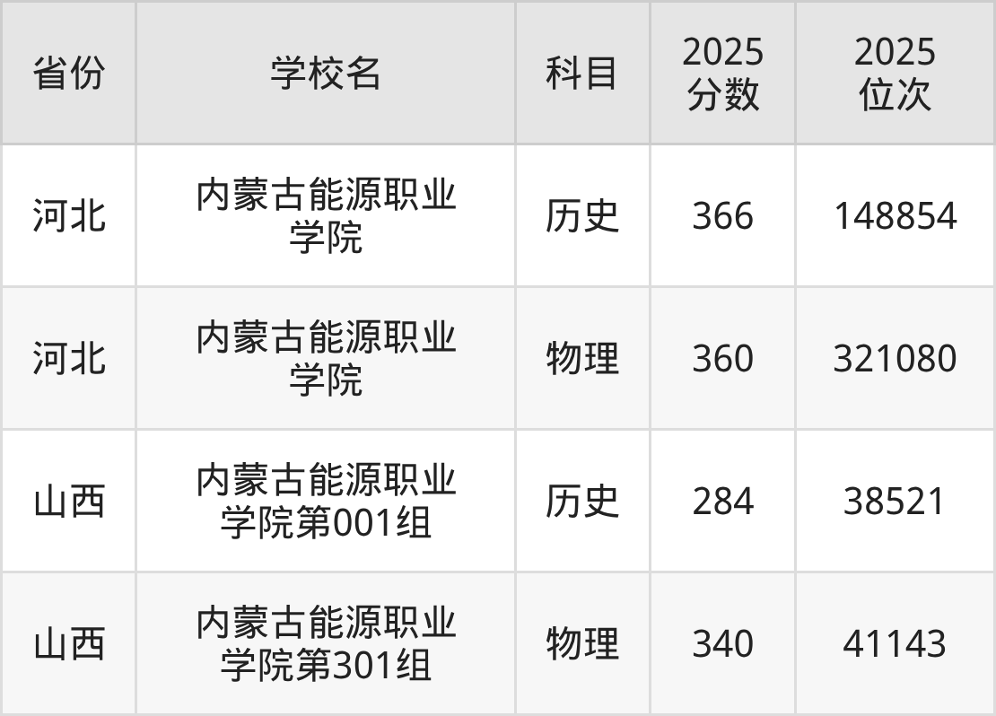 下面是内蒙古能源职业学院2025年录取分数线各省汇总,一起来了解下吧。