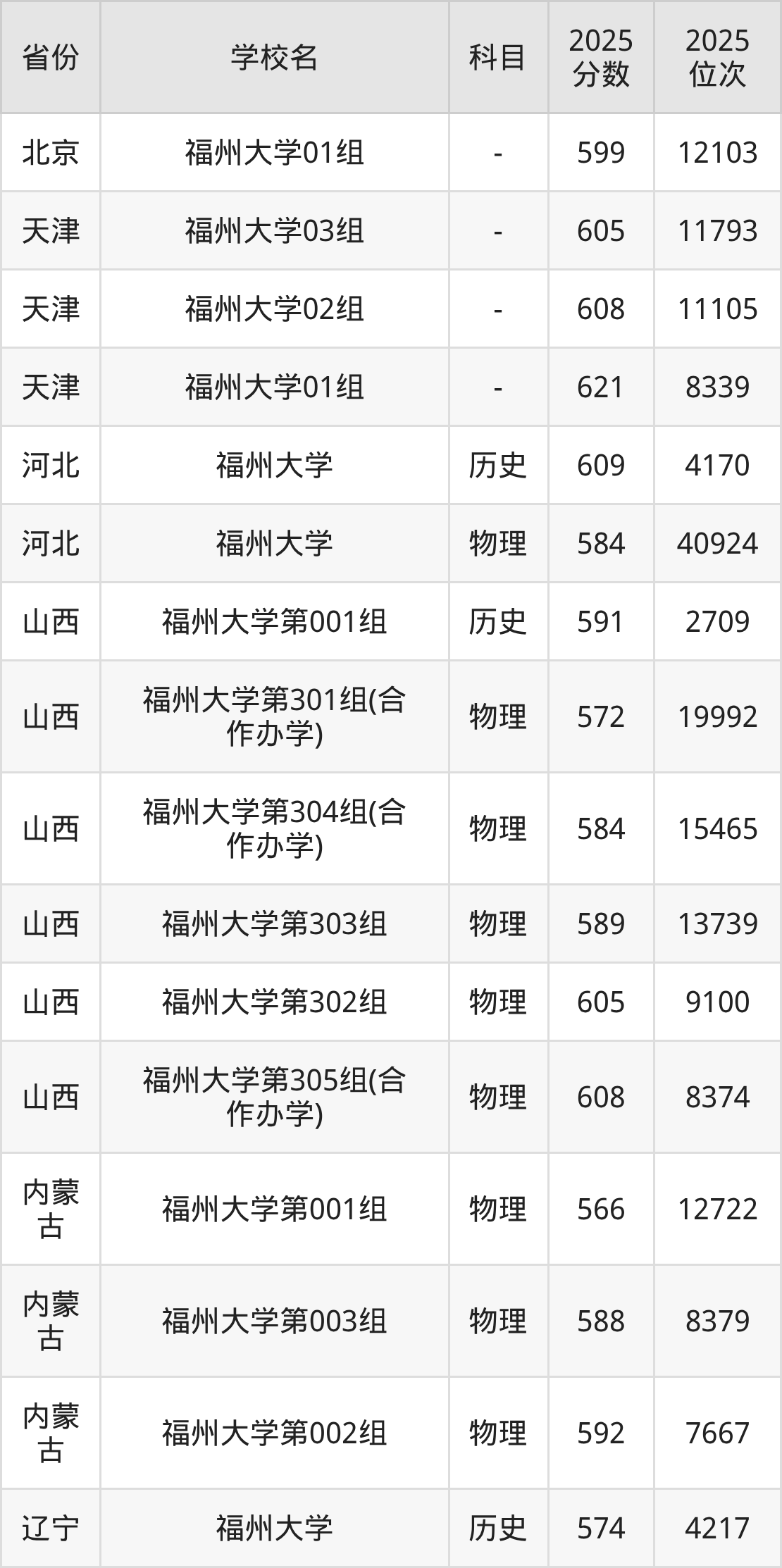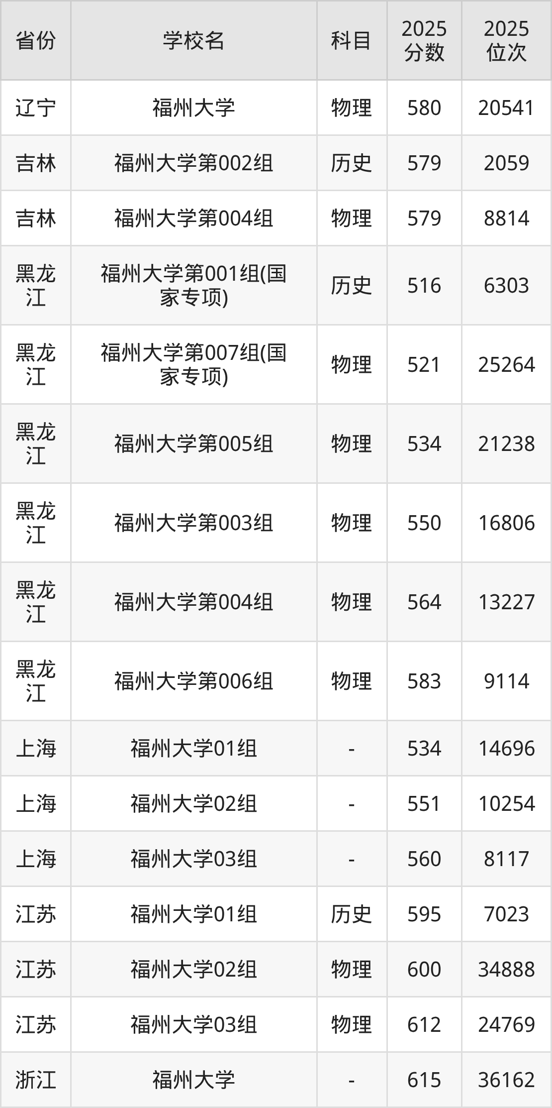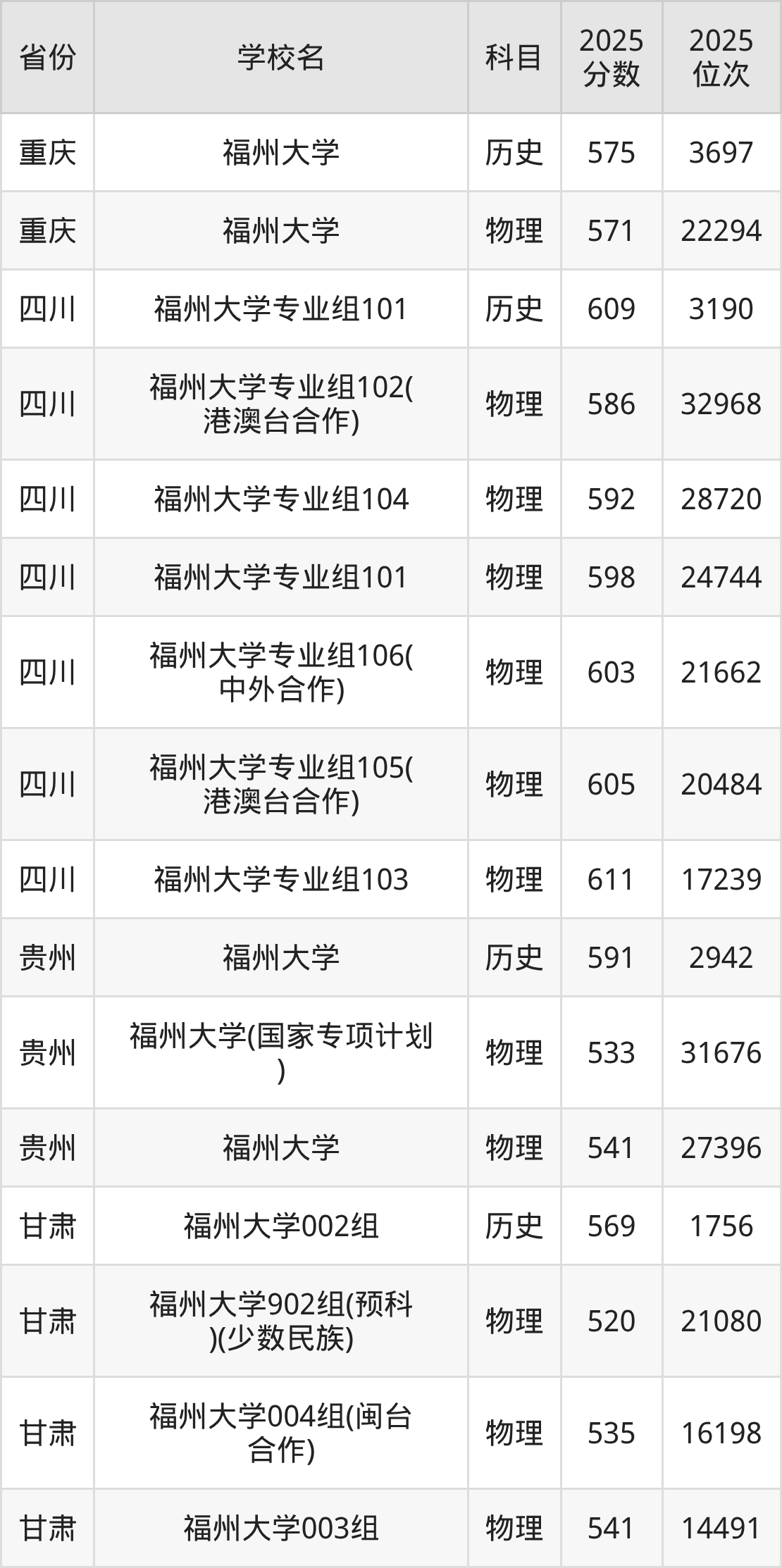 下面是福州大学2025年录取分数线各省汇总,一起来了解下吧。