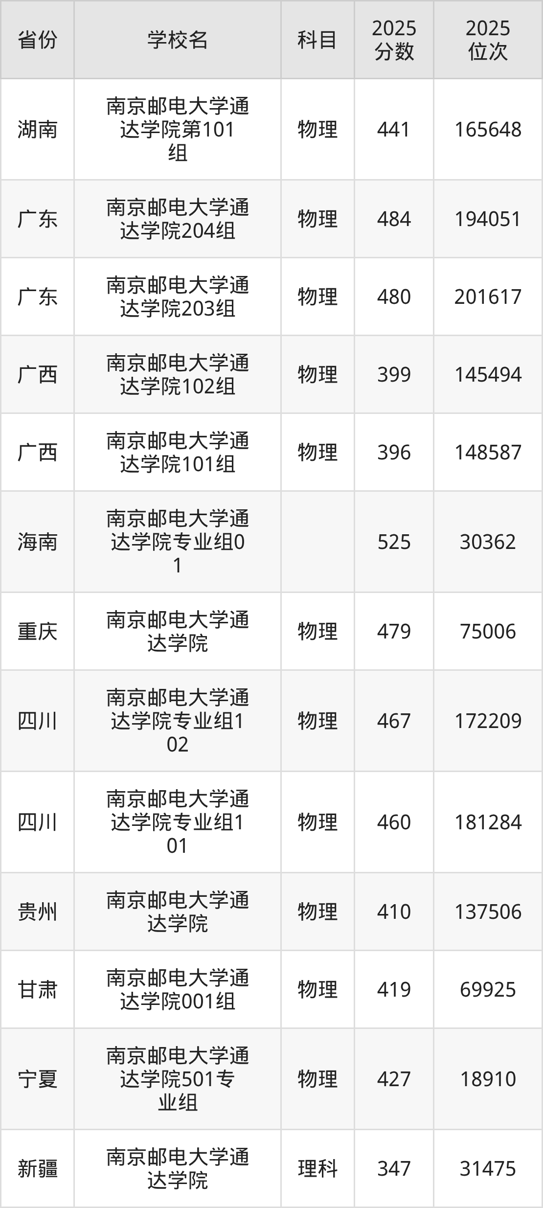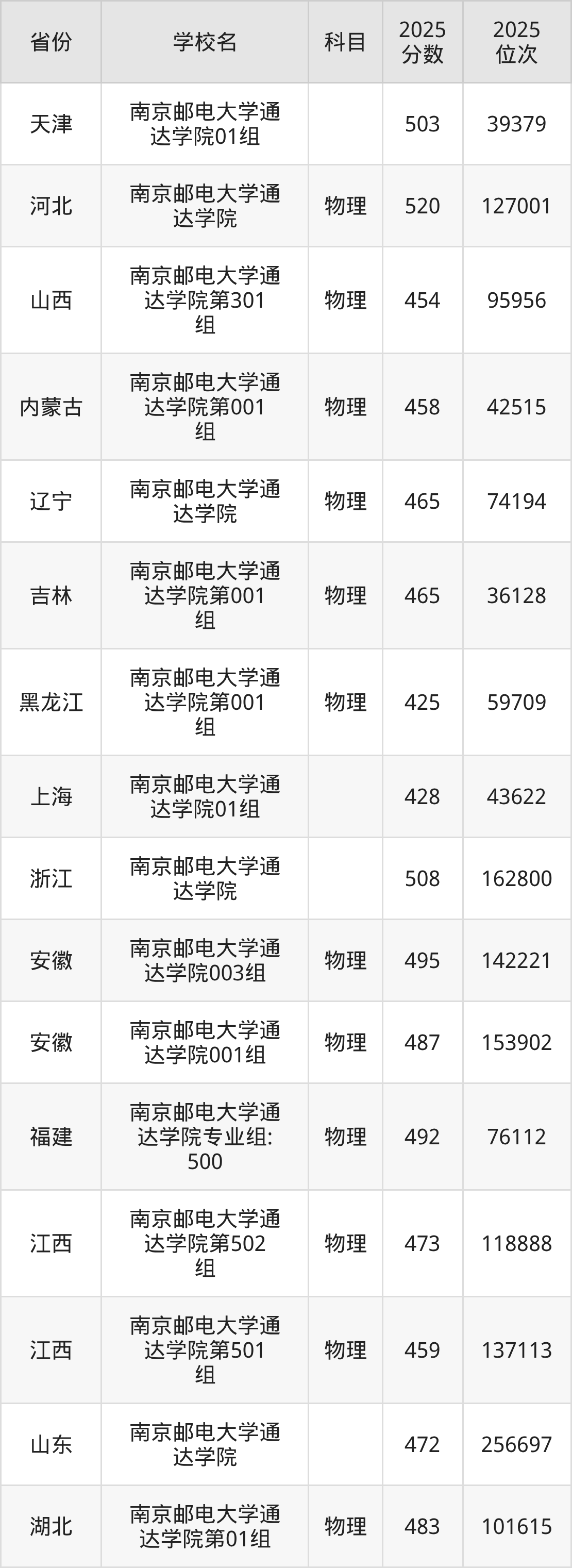 下面是南京邮电大学通达学院2025年录取分数线各省汇总,一起来了解下吧。