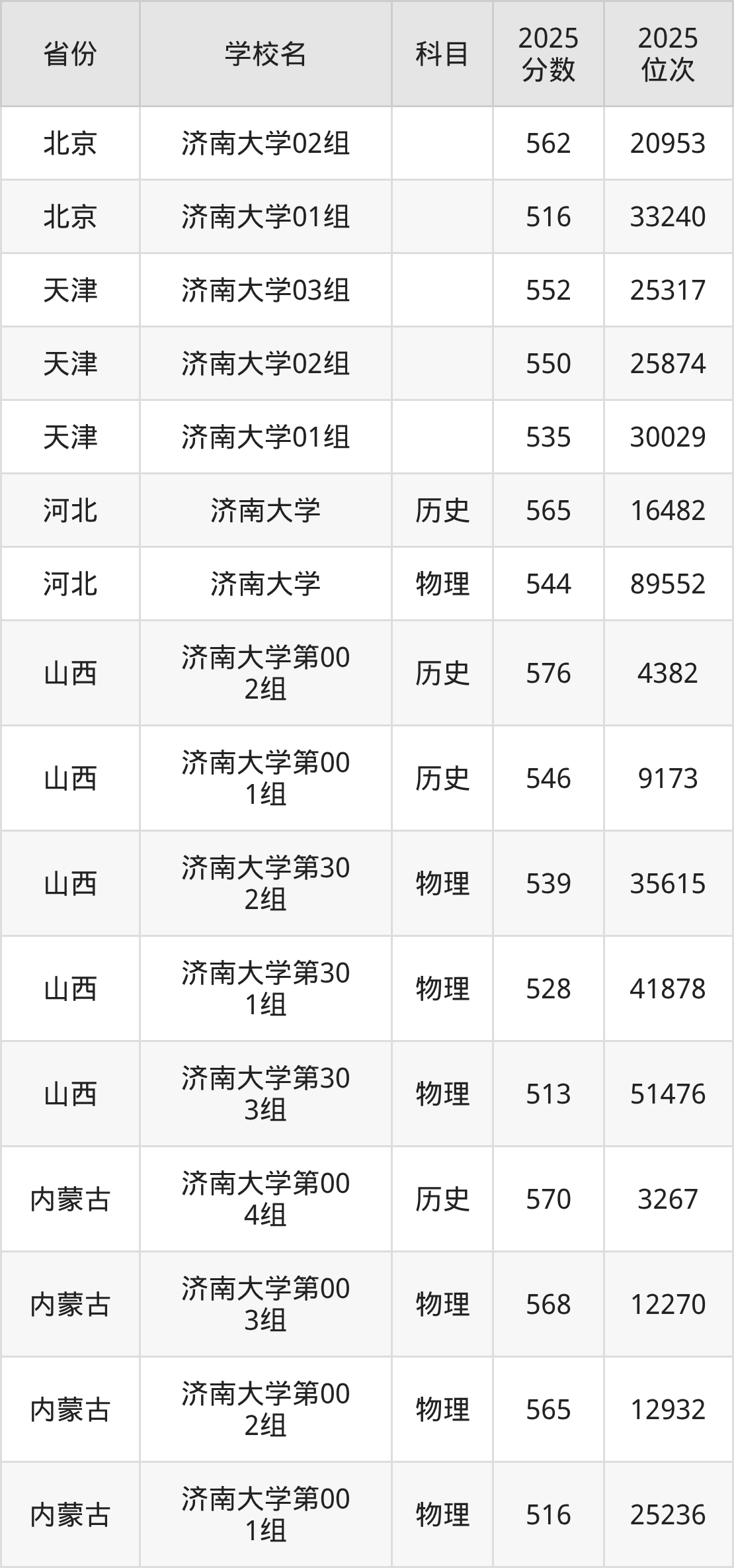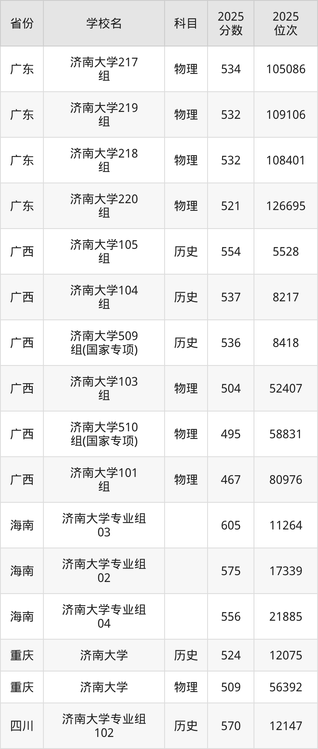 下面是济南大学2025年录取分数线各省汇总,一起来了解下吧。