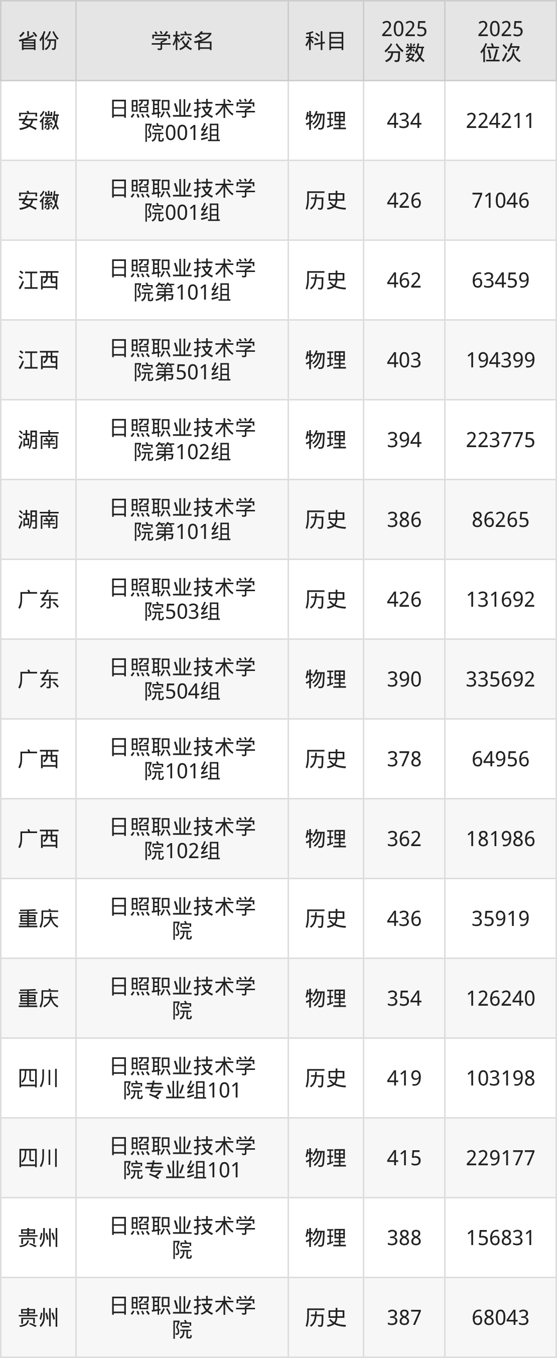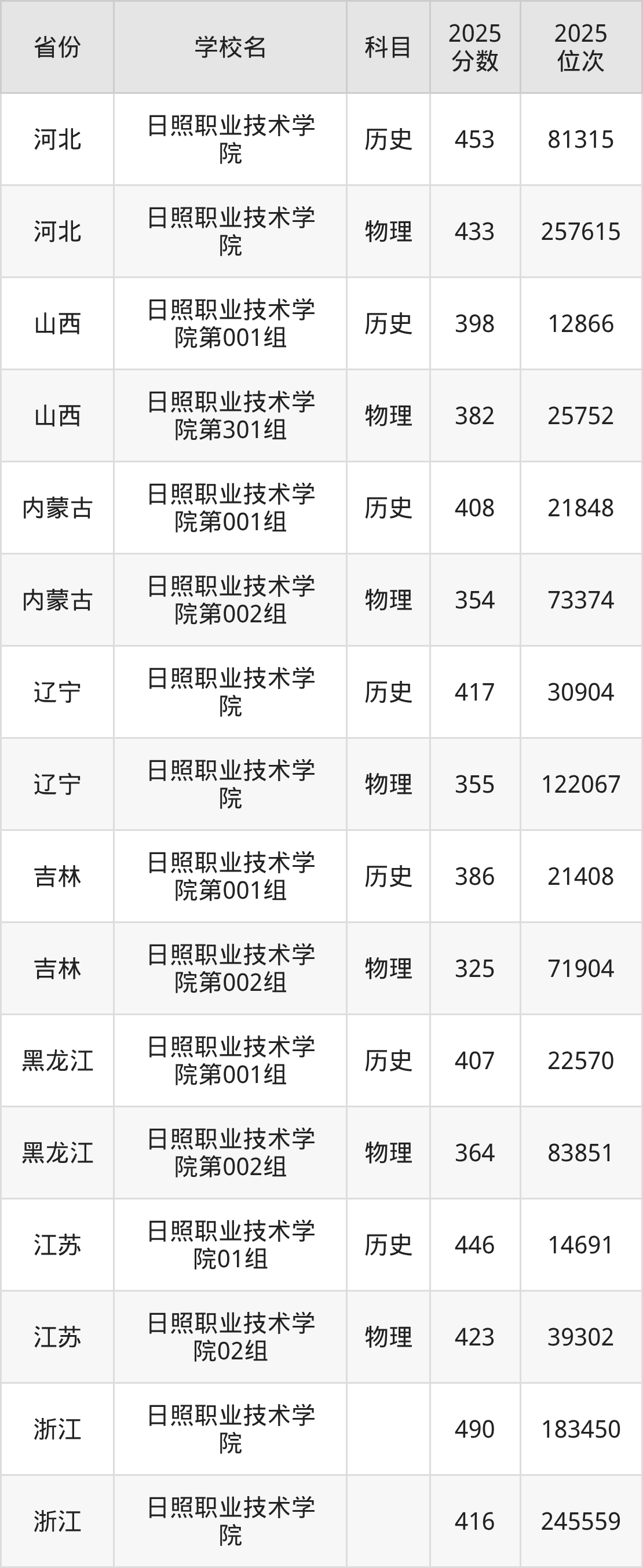 下面是日照职业技术学院2025年录取分数线各省汇总,一起来了解下吧。