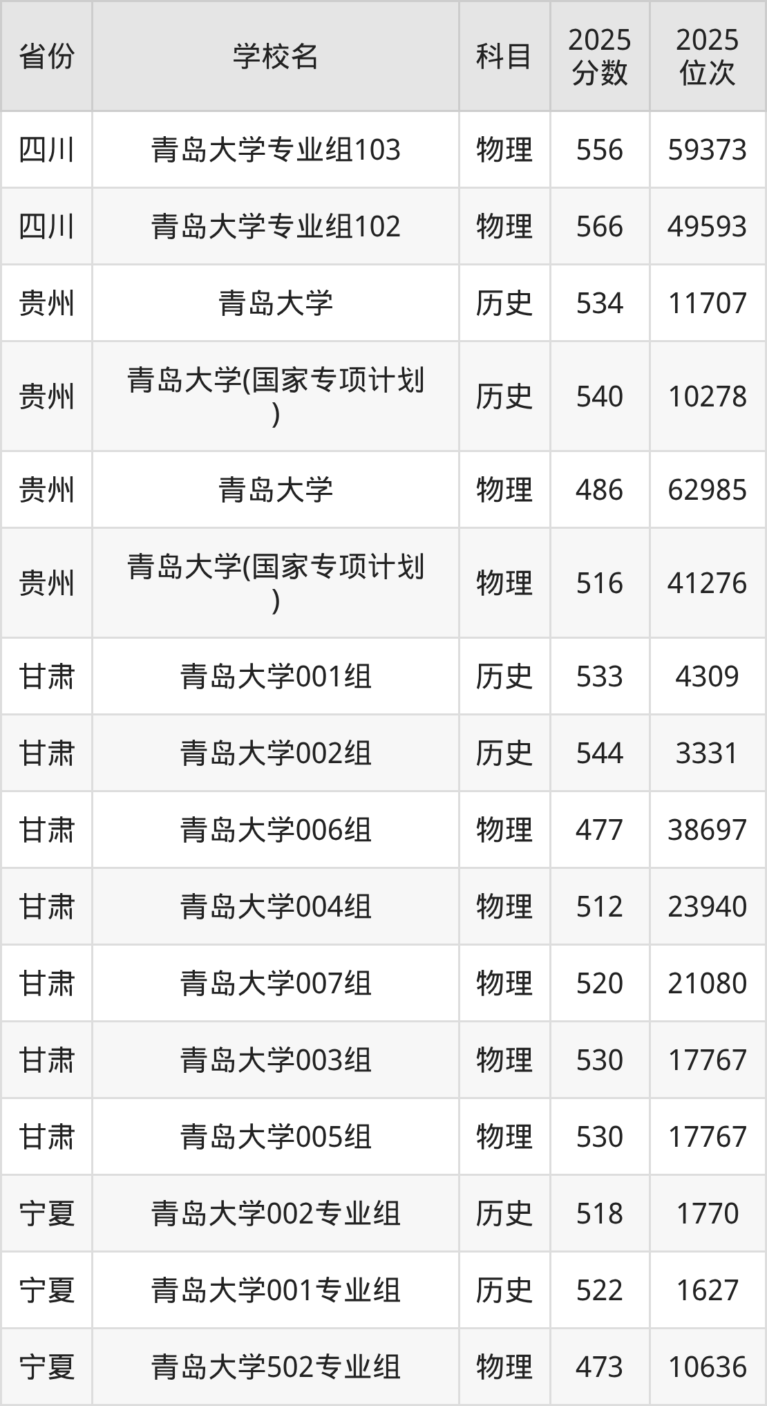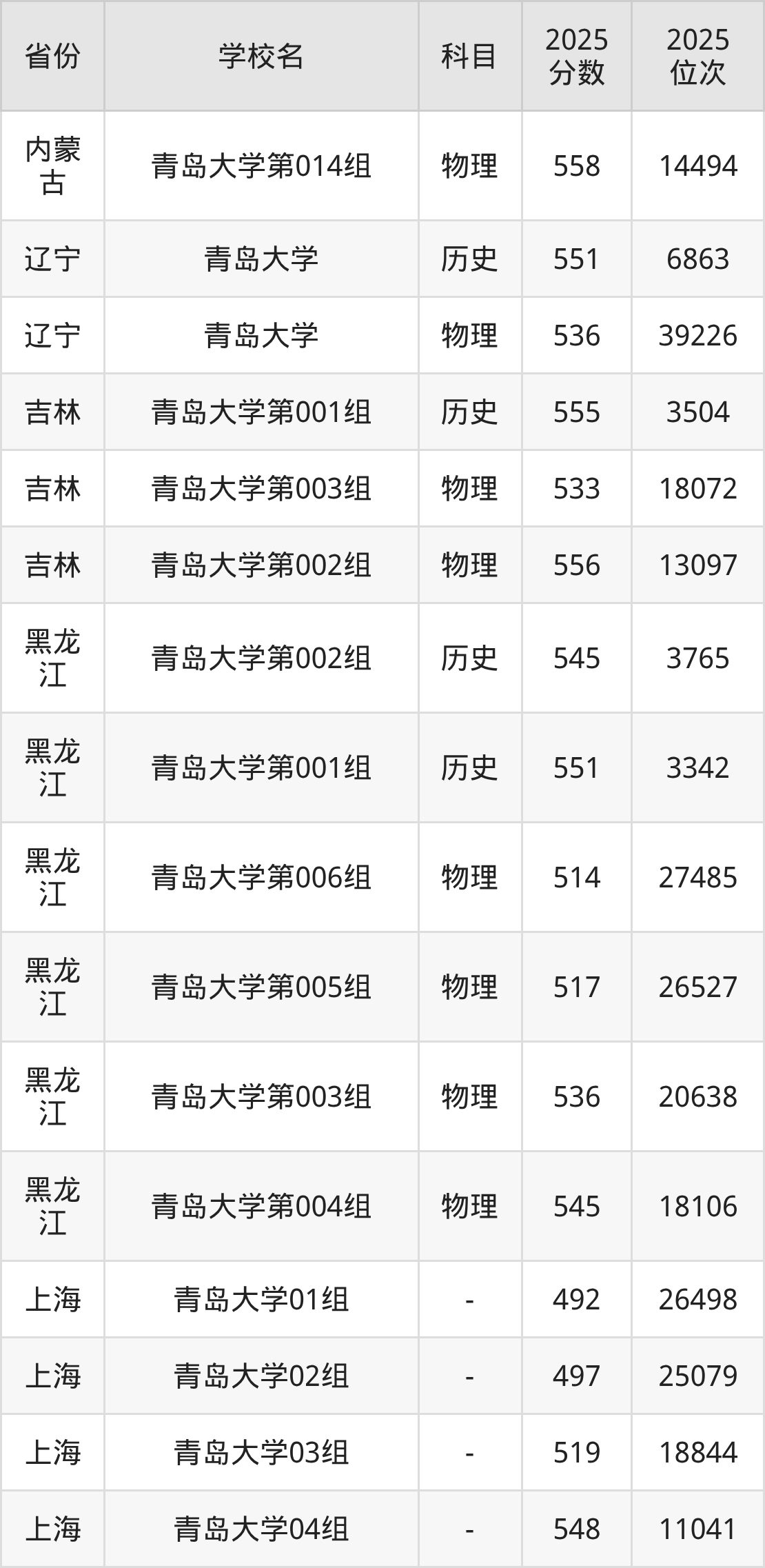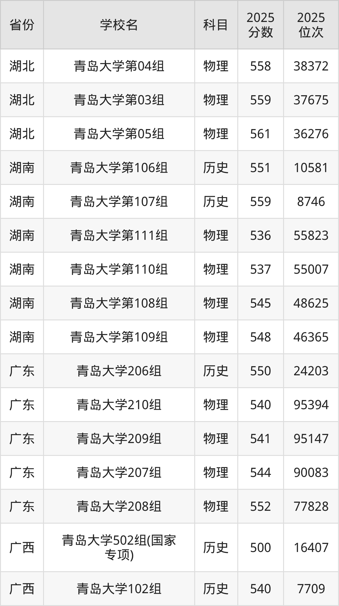 | 青岛大学(面向 青岛招生) | 504 | 176995 |