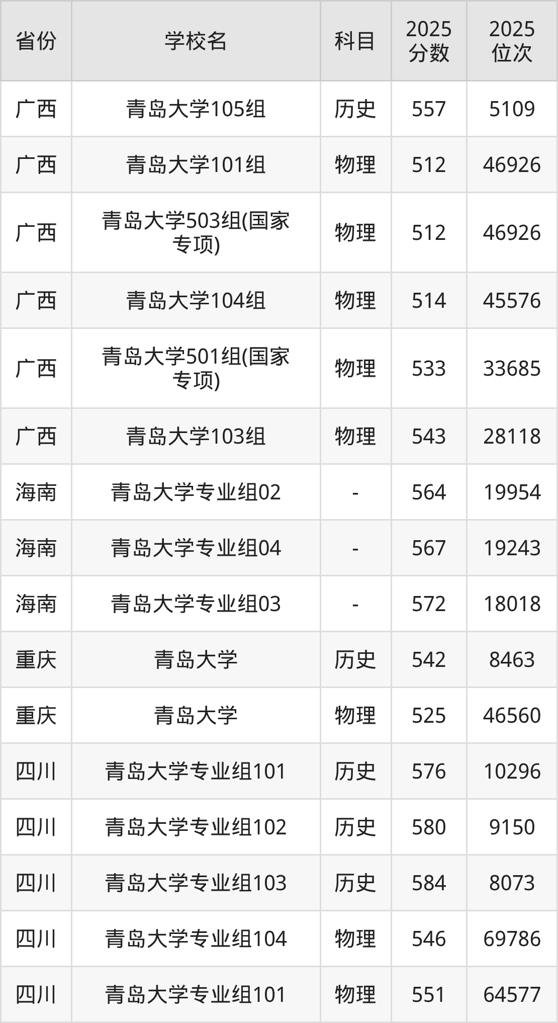 下面是青岛大学2025年录取分数线各省汇总,一起来了解下吧。