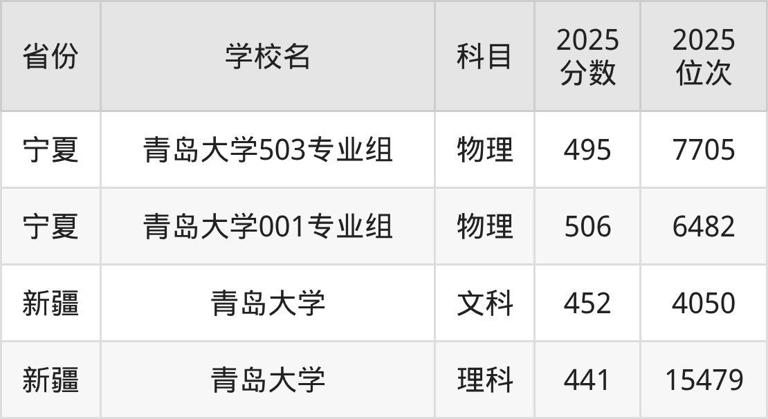 2025年青岛大学在省内,最低分是504分、对应位次是176995名。