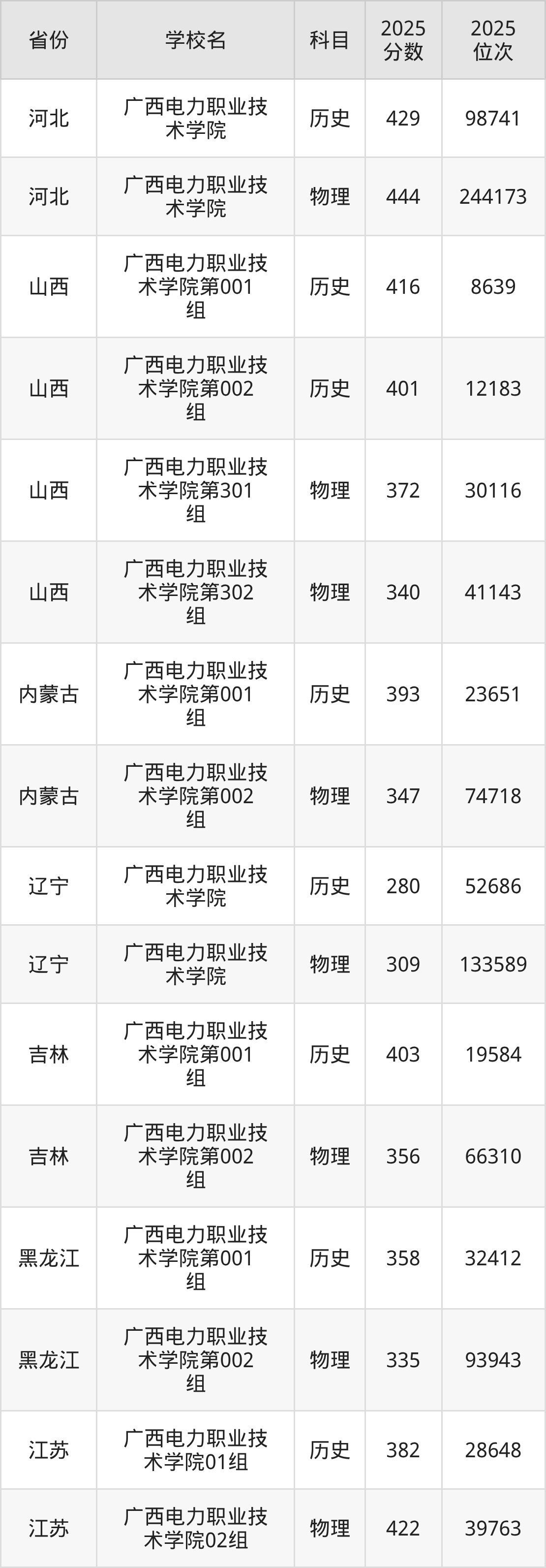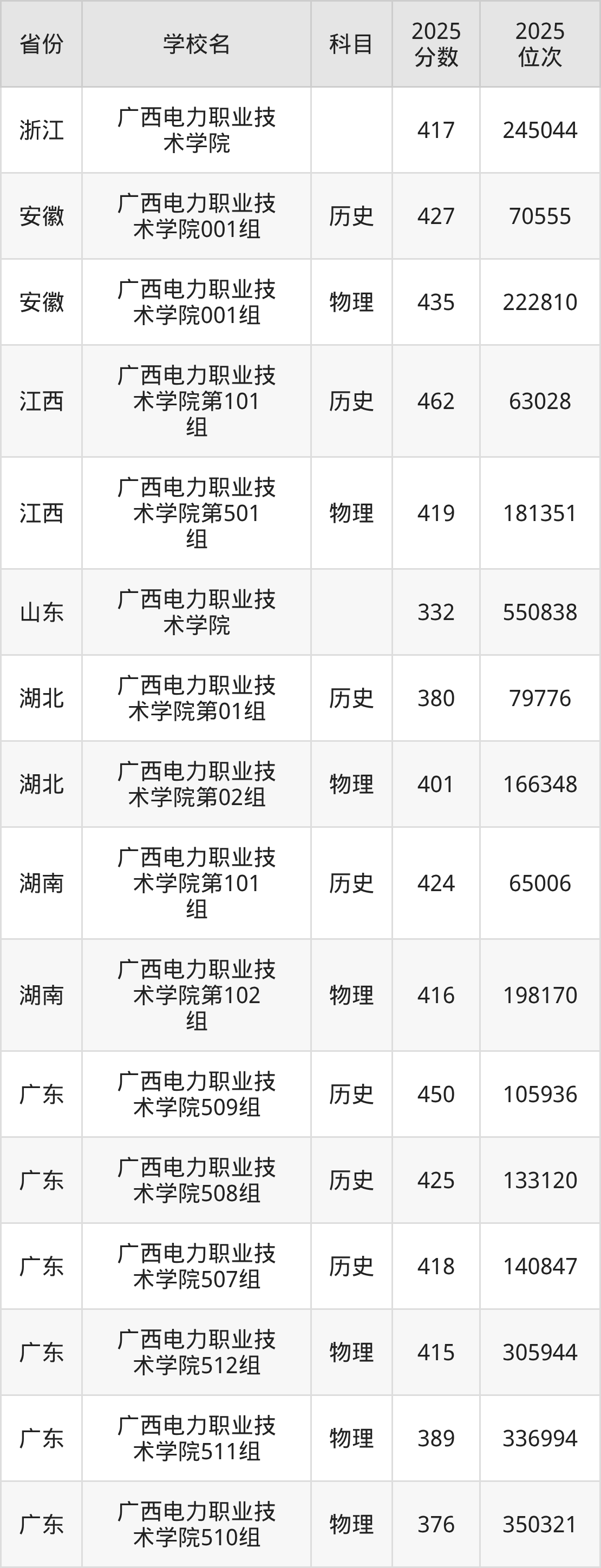 下面是广西电力职业技术学院2025年录取分数线各省汇总,一起来了解下吧。