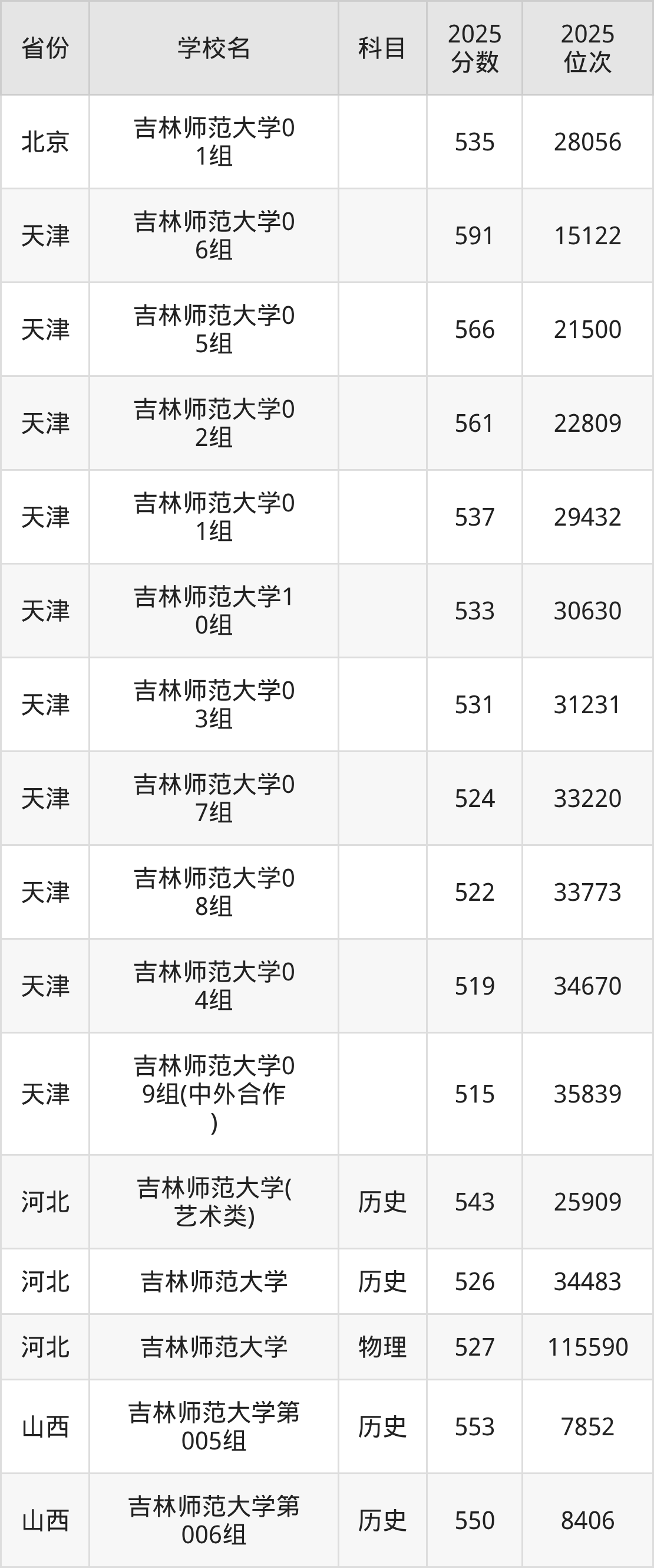 下面是吉林师范大学2025年录取分数线各省汇总,一起来了解下吧。
