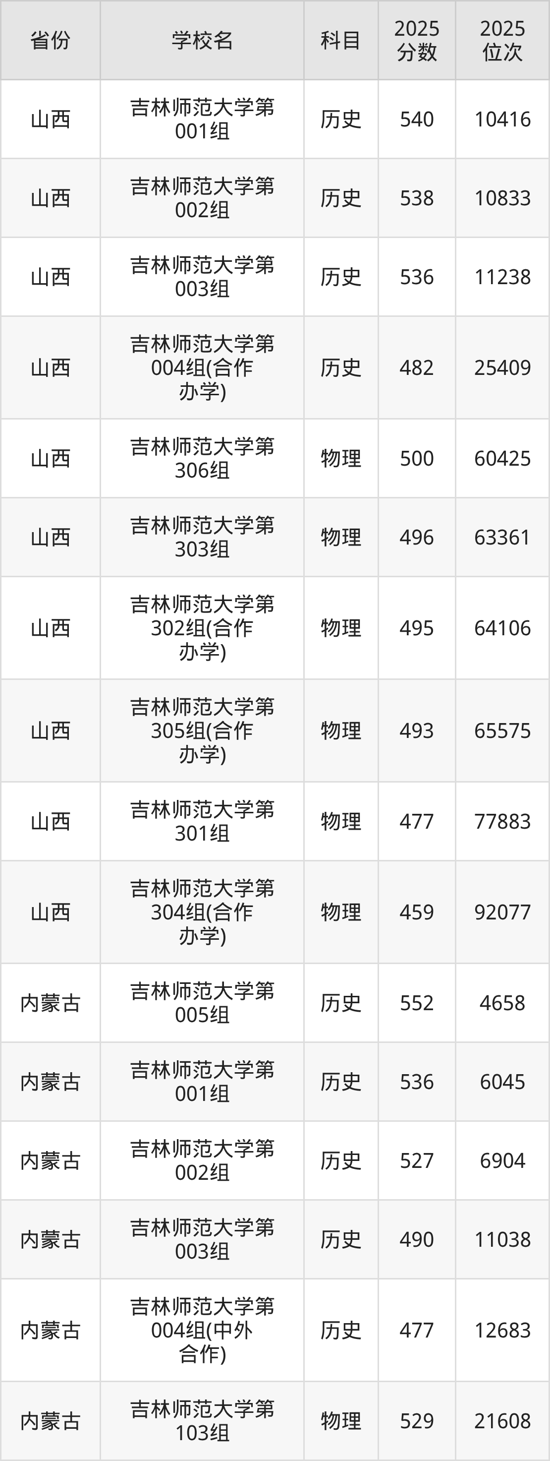 2025年吉林师范大学在省内分历史物理科目类录取,其中历史类最低分是360分、对应位次是23879名;物理类最低分是227分,对应位次是78569名。