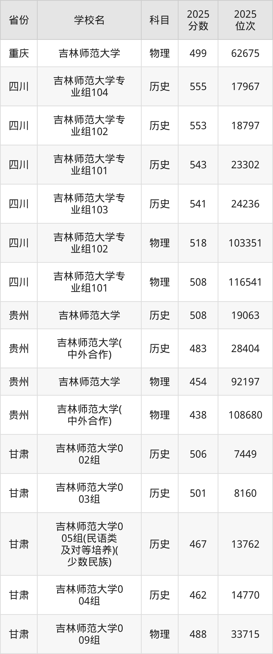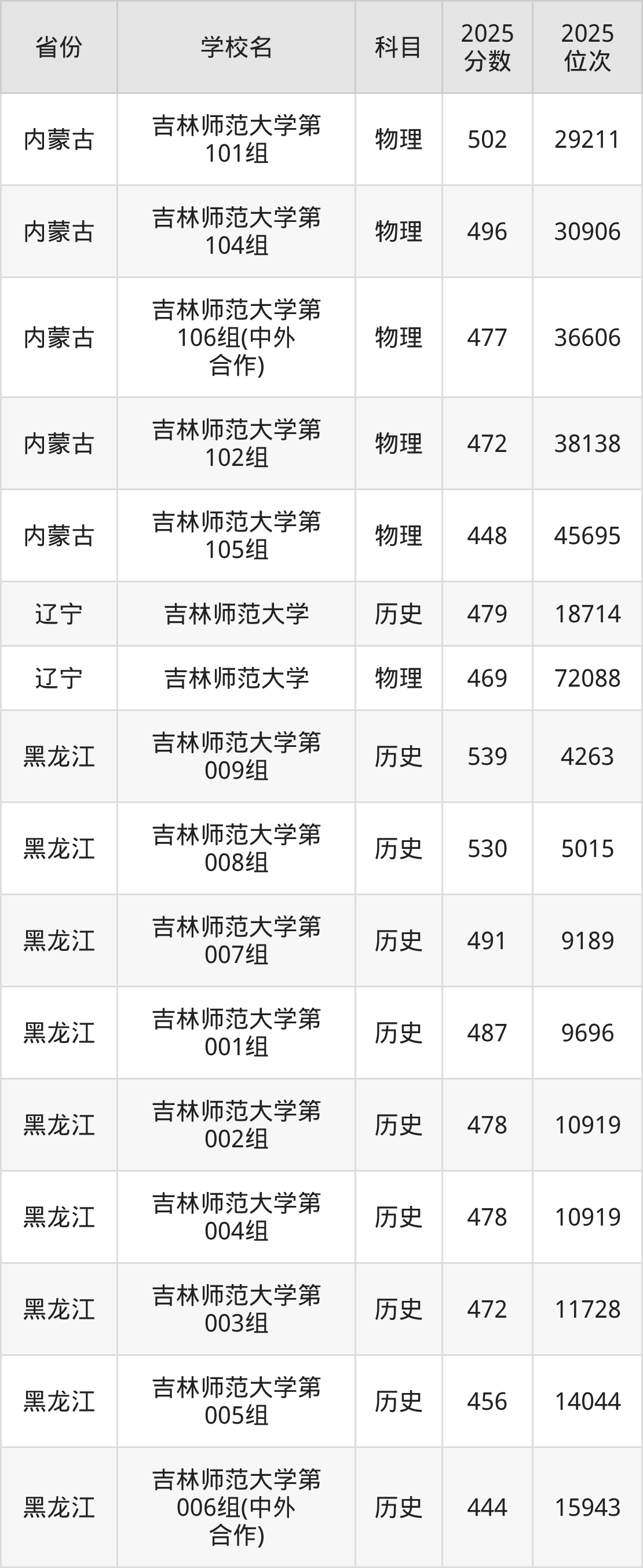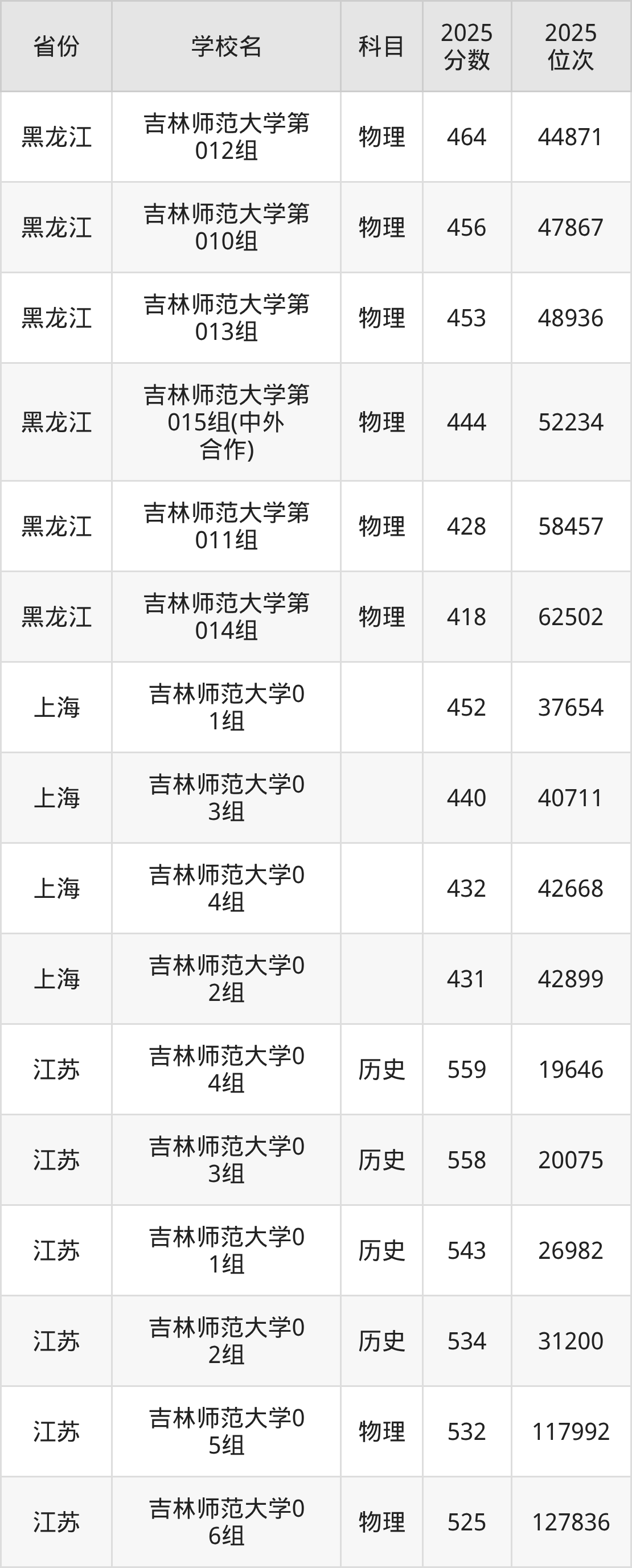| 吉林师范大学第 012组(地方 专项) | 历史 | 543 | 4337 |
