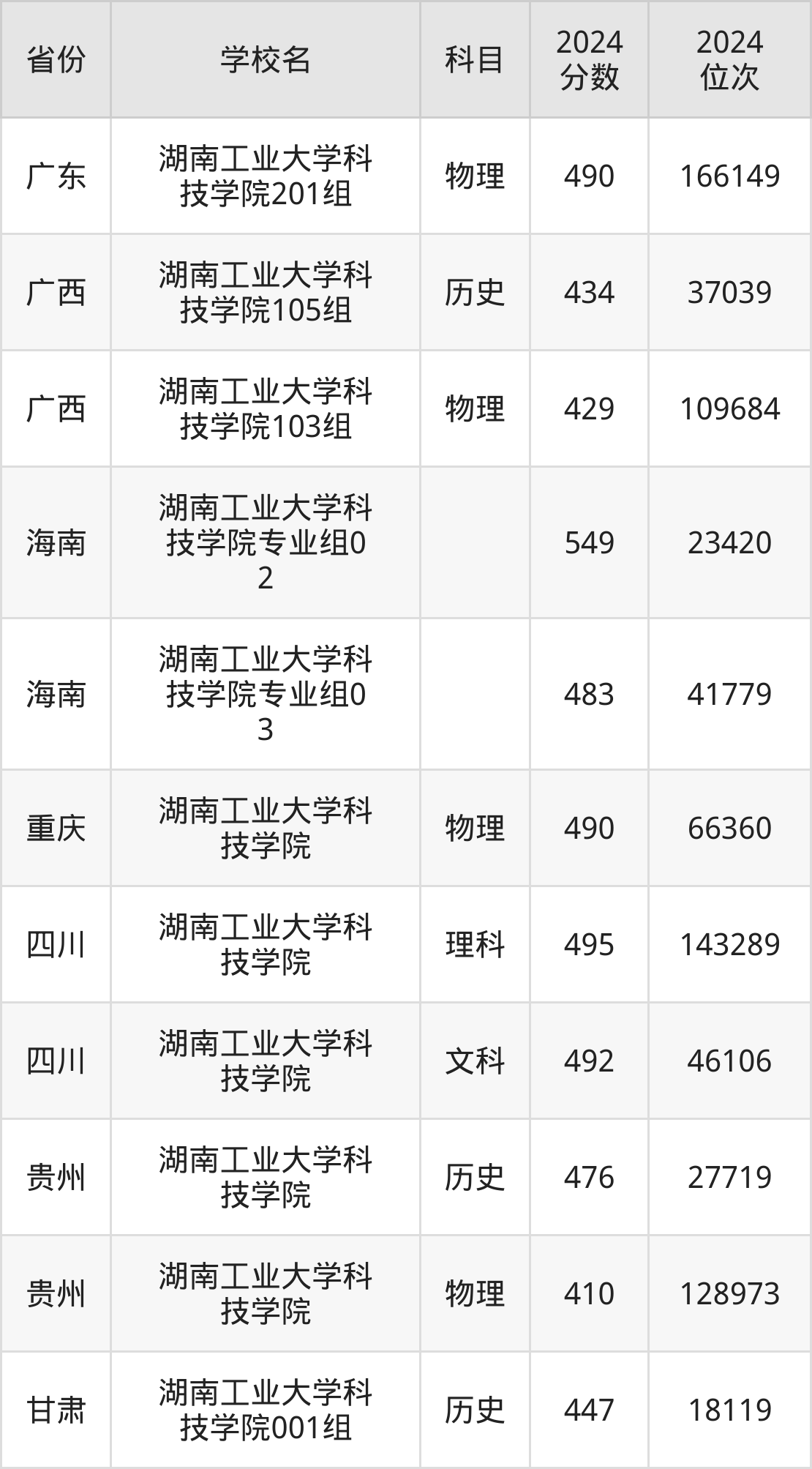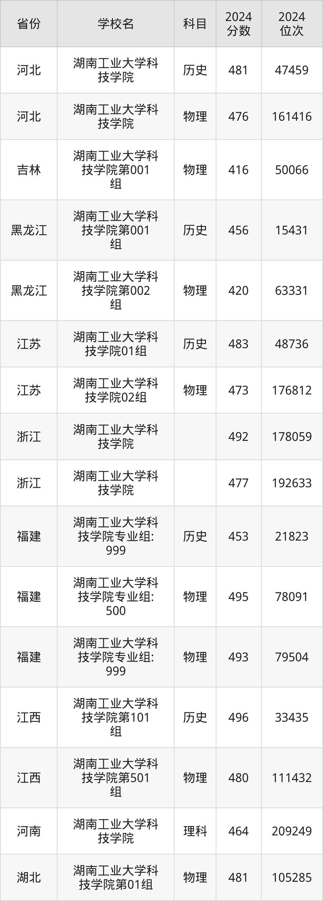 2025年湖南工业大学科技学院录取分数线预计在460分及以上,在各省录取最低分存在一定差异,如:2024年湖南工业大学科技学院在江苏录取最低历史类483分、物理类473分,在广东录取最低物理类490分,在广西录取最低历史类434分、物理类429分。