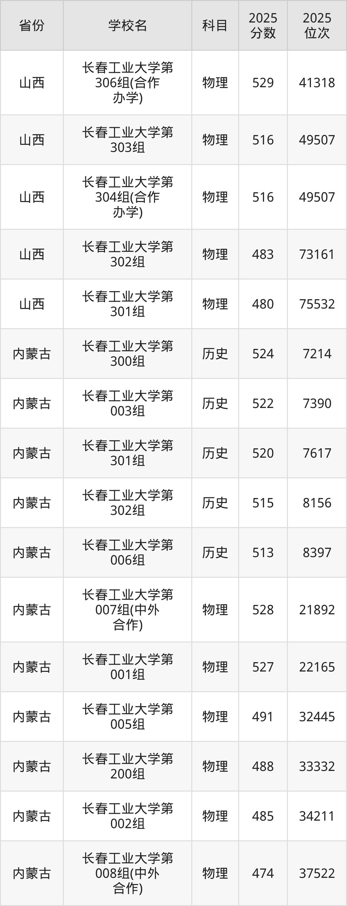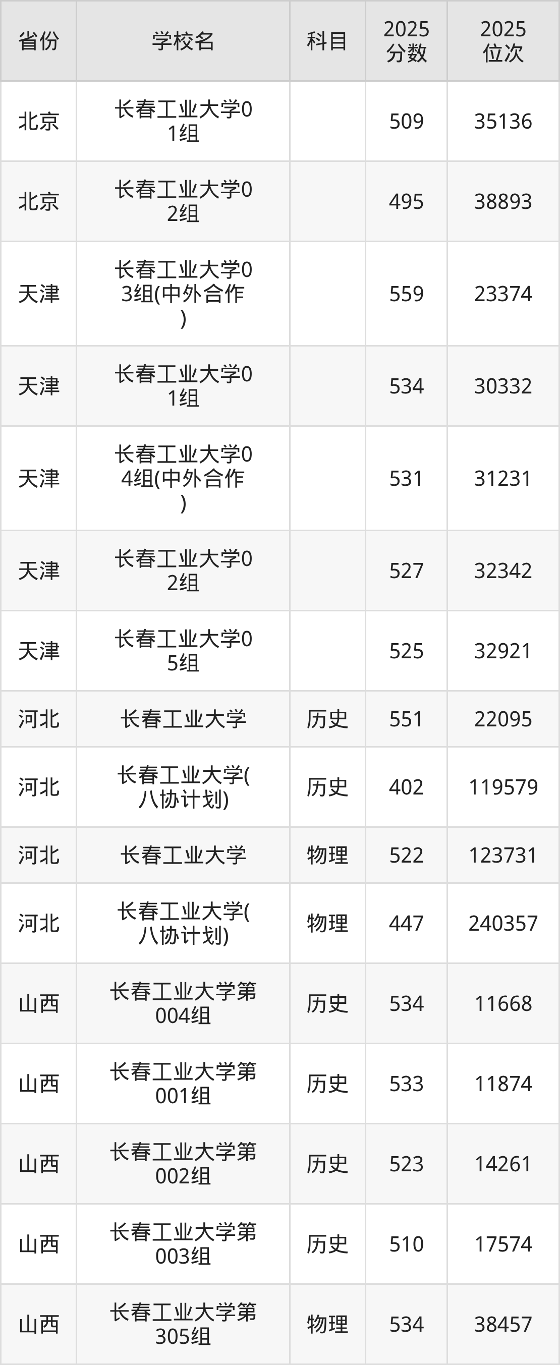 下面是长春工业大学2025年录取分数线各省汇总,一起来了解下吧。