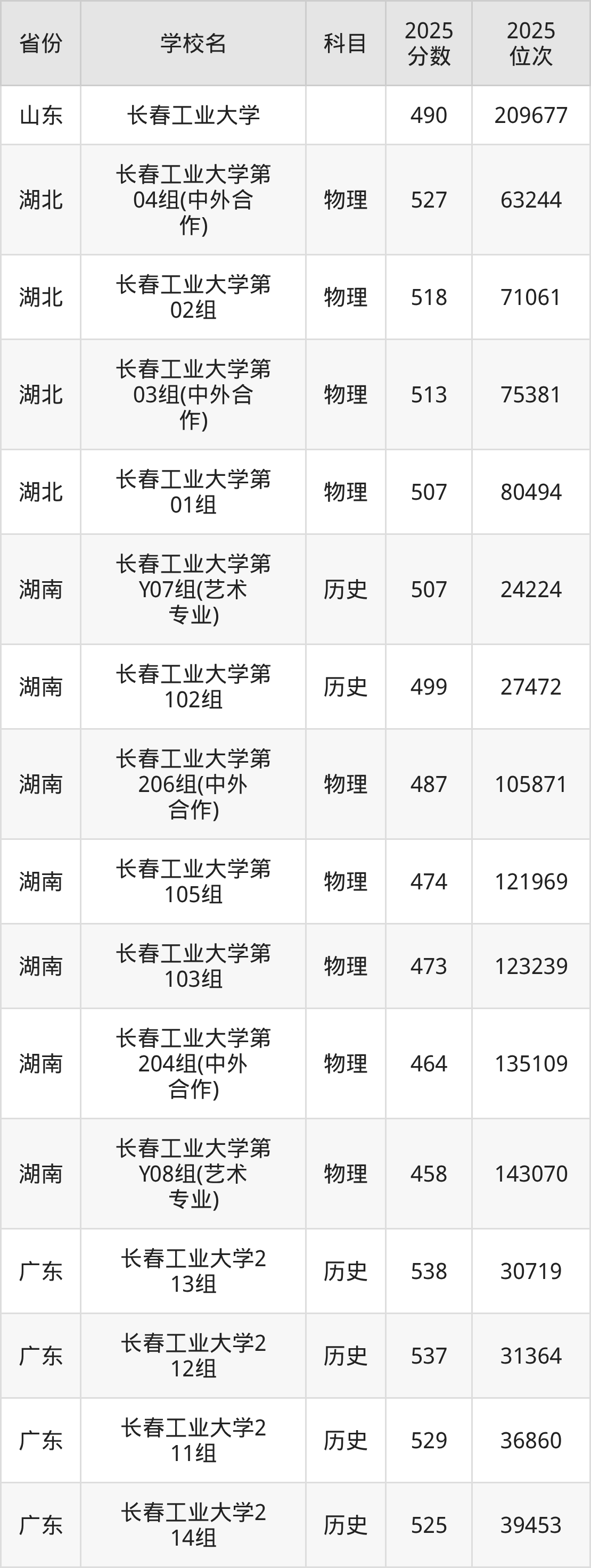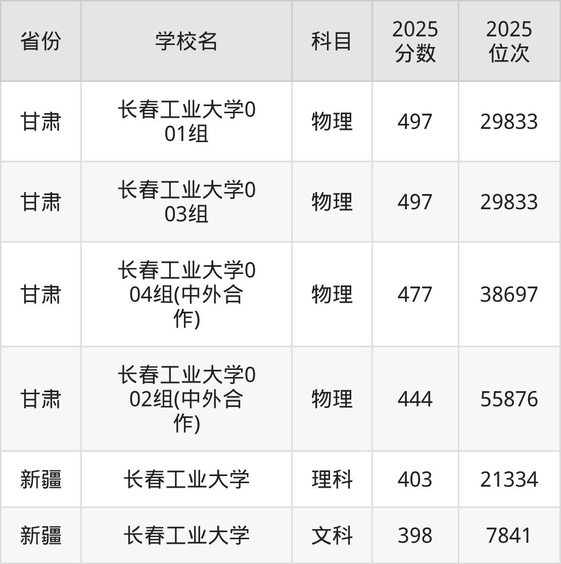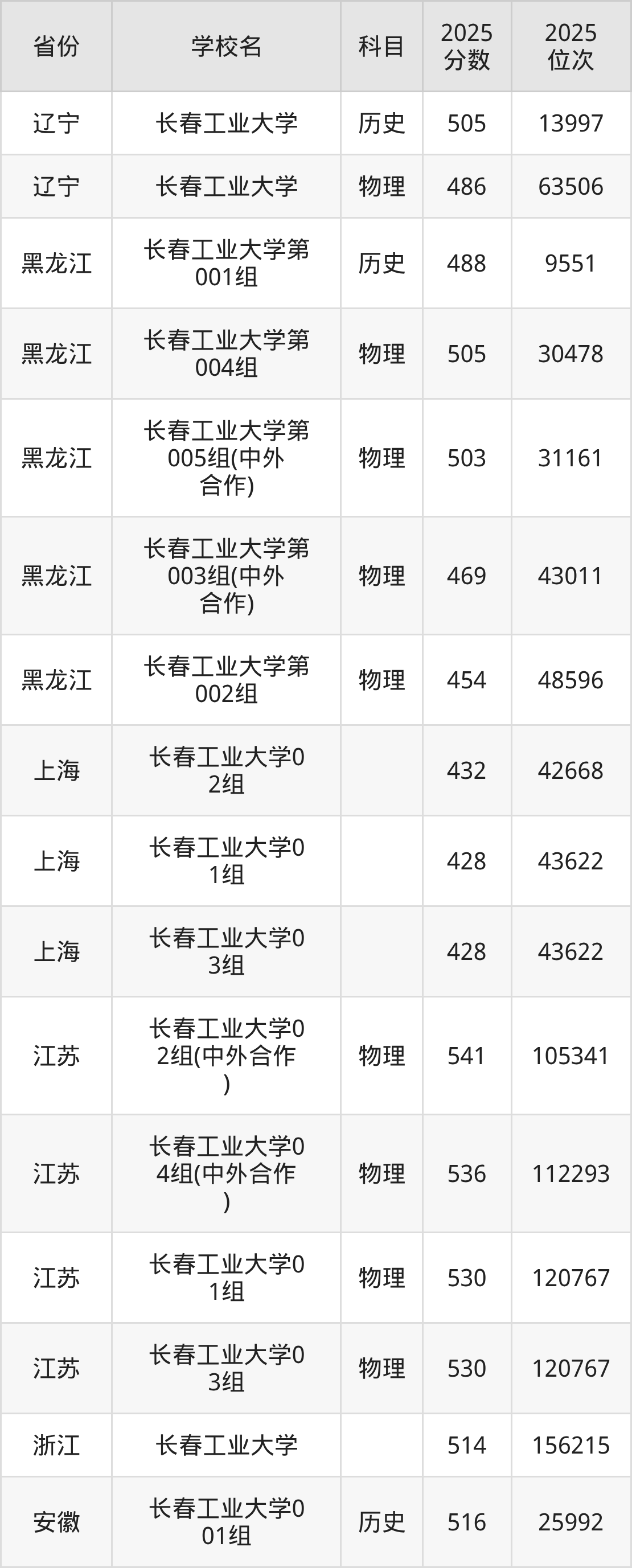 2025年长春工业大学历史类最低分466分(12015名)、物理类最低分434分(45451名)。